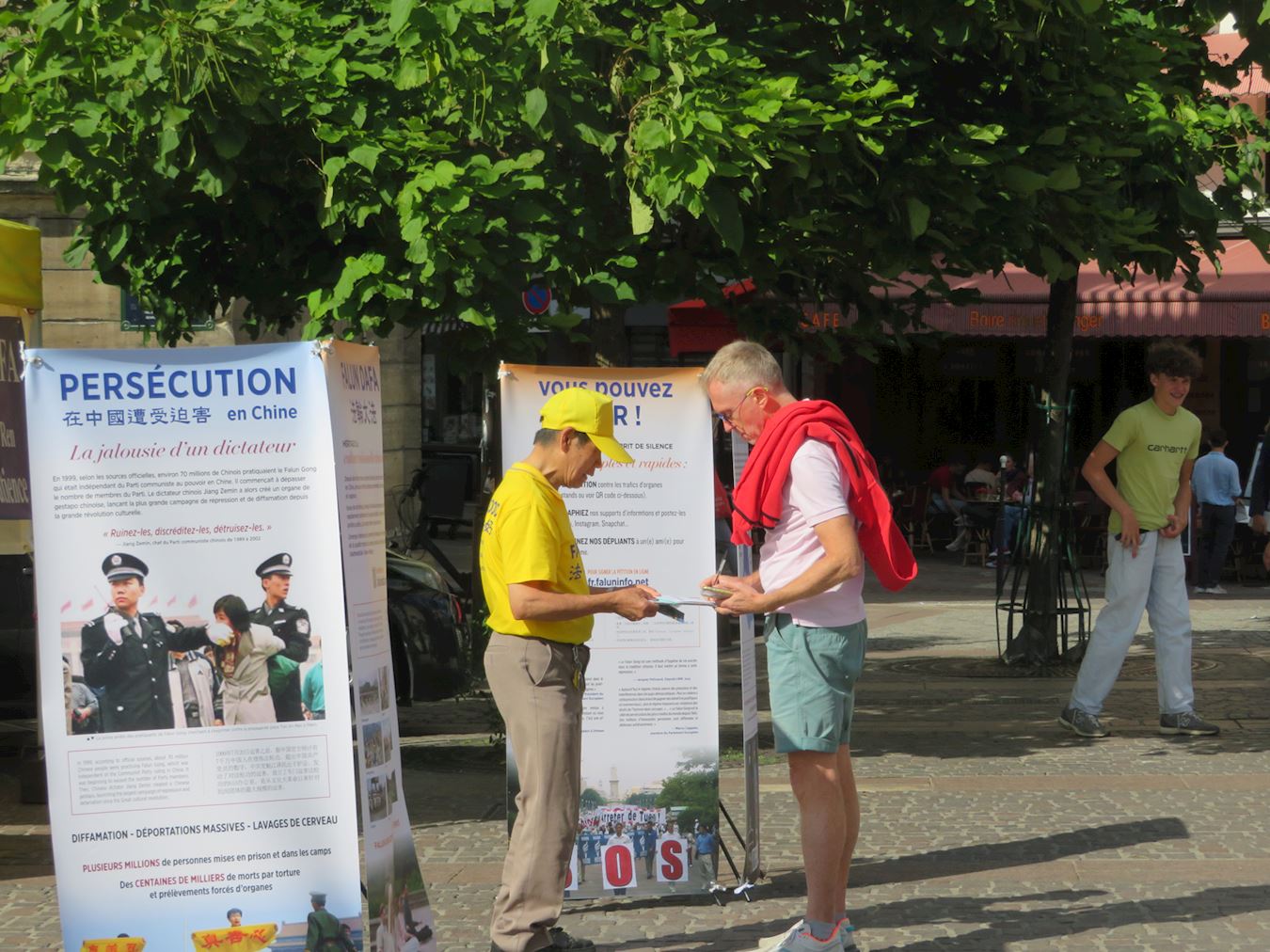 【明慧网二零二四年八月二十八日】(明慧记者周文英巴黎报道)二零二四年八月二十五日星期日下午,在巴黎市中心的夏特蕾(Châtelet)街区,法轮功学员进行了炼功、讲真相和征集签名的活动。
