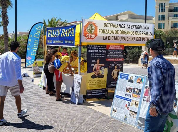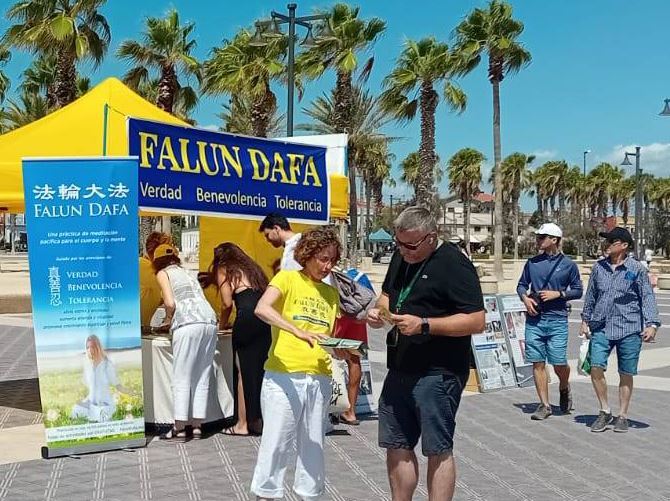 居住在瓦伦西亚的希拉(Sheila)女士偕同丈夫和两个孩子在附近散步,被法轮功信息展台揭露中共对法轮功信仰团体迫害的横幅所吸引。她表示自己读过《圣经》,所以当了解到当前仍在发生对信仰神的信徒的迫害,她和丈夫都在反迫害表格上签名。她表示:“中共具有魔鬼本质,代表了这个星球上的邪恶”。
