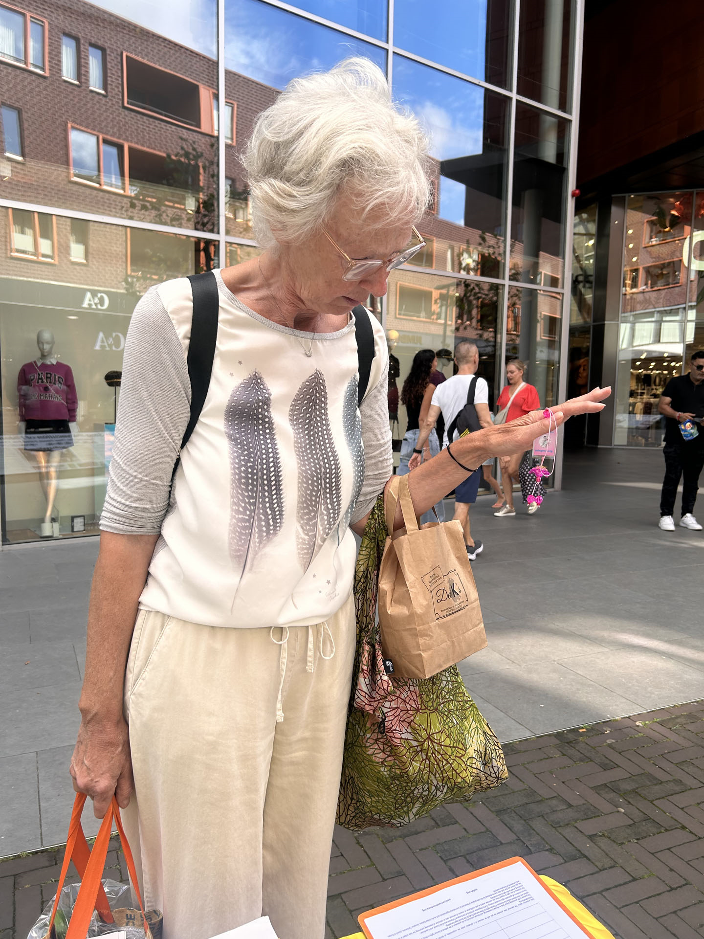 学员告诉她们,中共对法轮功修炼者的迫害已经长达二十五年,由于信息的封锁,展板上揭露出来的迫害案例只是冰山一角,两位荷兰女士毫不犹豫地在反对迫害的征签表上签名,并不断感谢学员:“这些信息非常重要,感谢你们做的这些事,感谢你们让我们知道这些!”