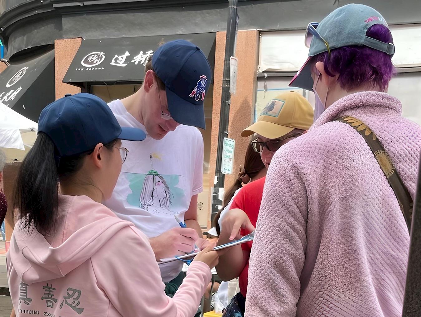 ![]() 图2:人们签名支持《法轮功保护法案》。 |