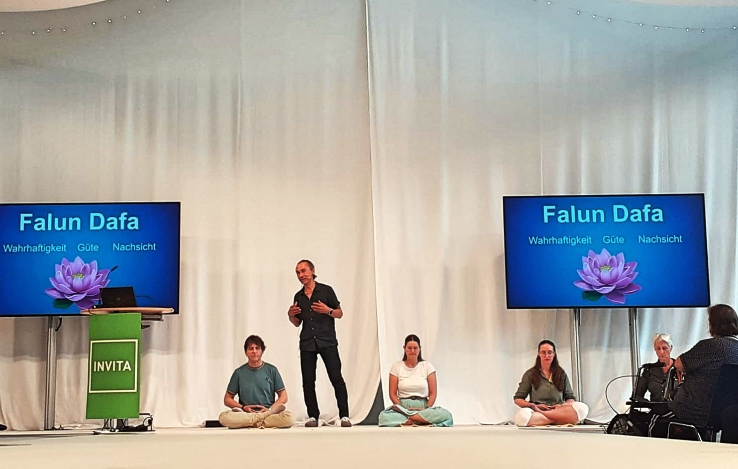 【明慧网二零二四年九月十四日】“生命在于运动”——是德国不来梅举办的银发族健康展会(In Vita)的主题。在二零二四年九月四日至五日两天的展会上,多个与健康、生活相关的主题吸引了大量观众参与。今年,不来梅展会再次邀请了法轮功学员参加,并在主舞台上演示功法。