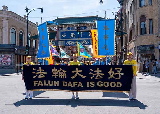 九月十四日,来自美国中部十多个州的部分法轮功学员们,齐聚在美国第三大城市芝加哥,在中国城举行大游行,向人们展示法轮大法的美好。