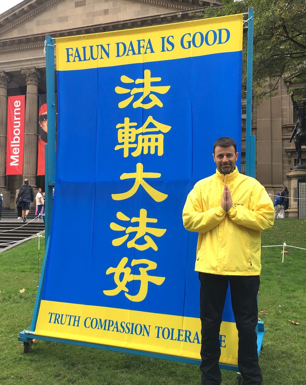 ![]() 图1:在科技巨头澳洲分公司担任系统工程师迈克尔・莫尔纳(Michael Molnar)感谢师父的慈悲救度。 |