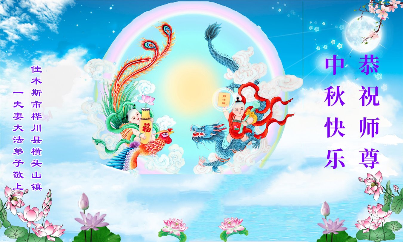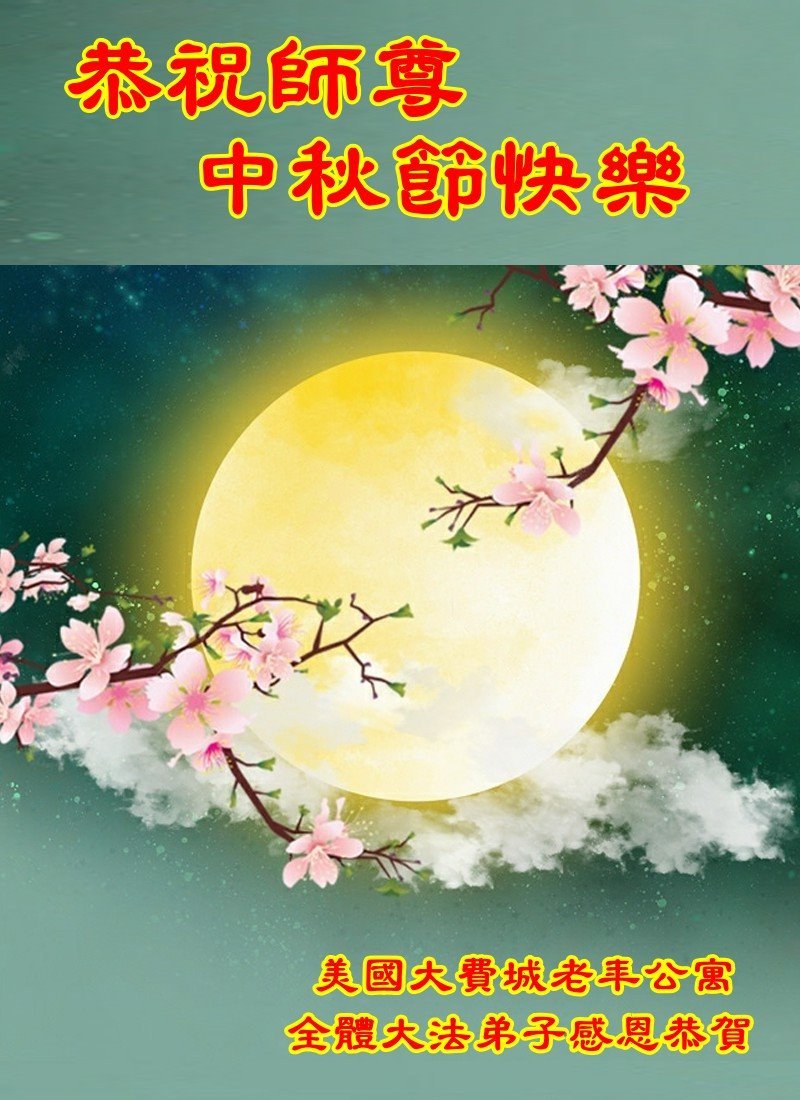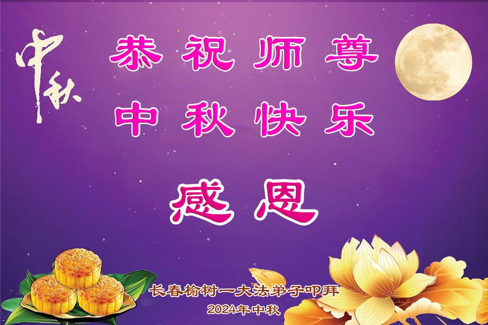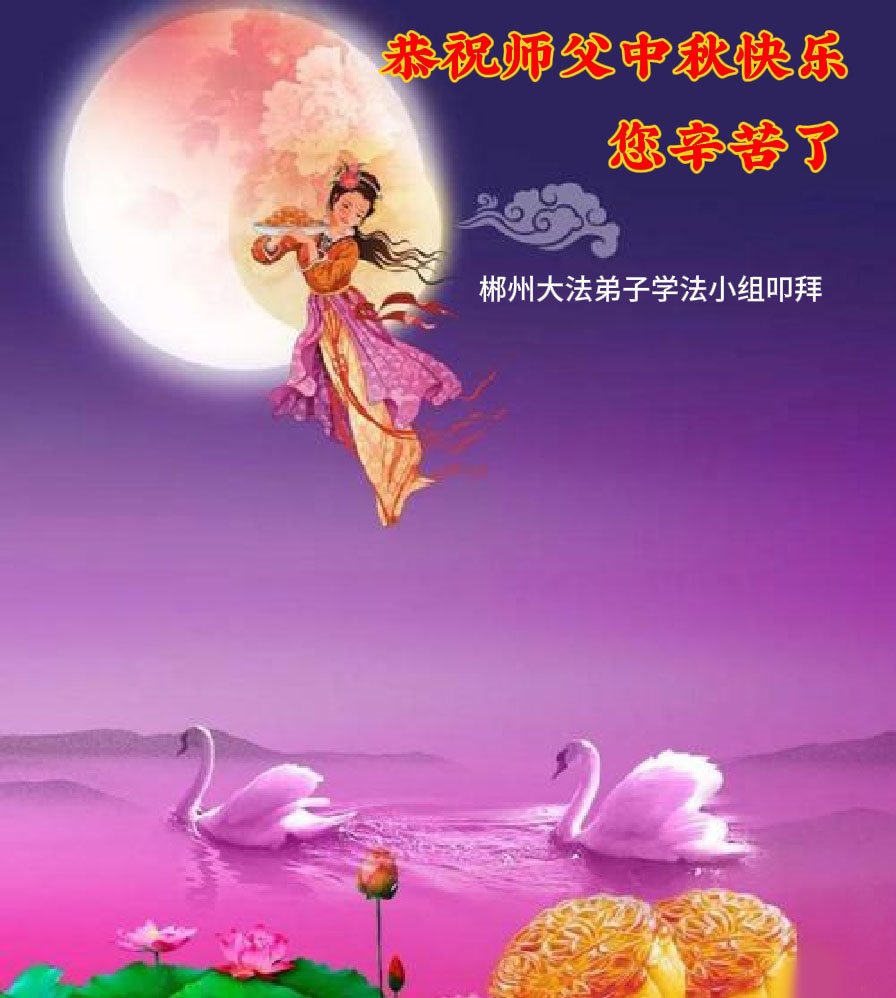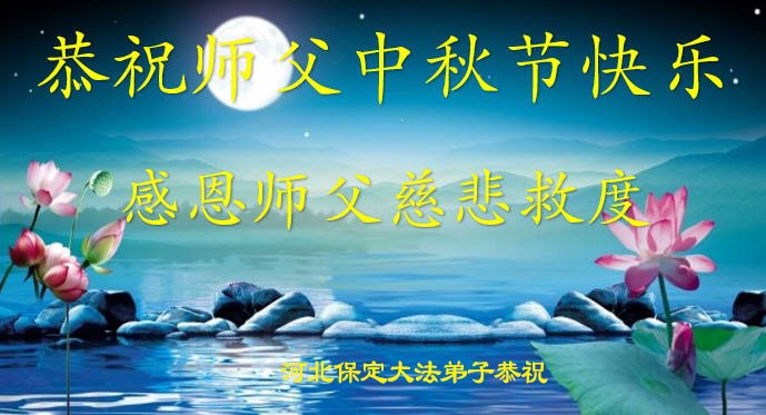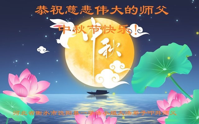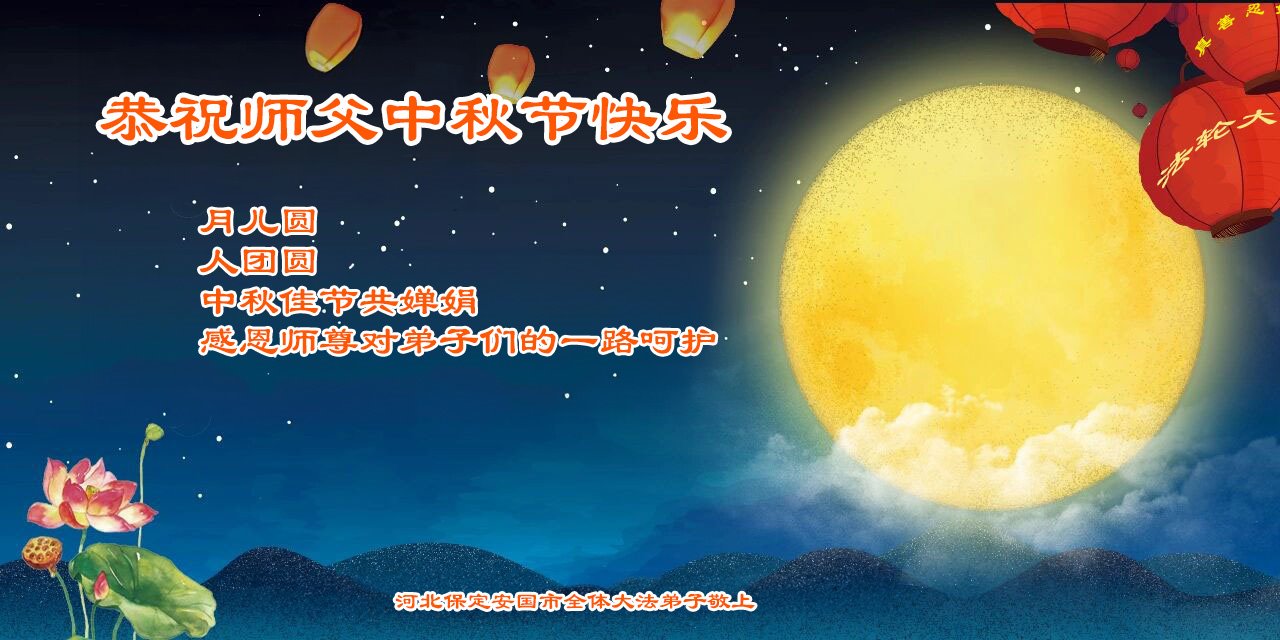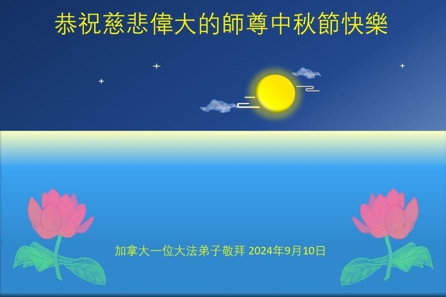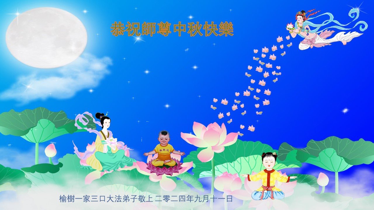 弟子和家人同修恭祝师父中秋节快乐!感恩师父对弟子和家人同修的一路慈悲看护!弟子也感恩师父对弟子的一切慈悲安排!弟子一定努力多学法炼功,用心做好救人的事情,修去妒嫉心,怨恨心,及人心,人念,人情,努力做好师父让弟子做的救人的事,跟随师父回家!