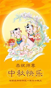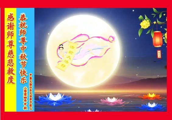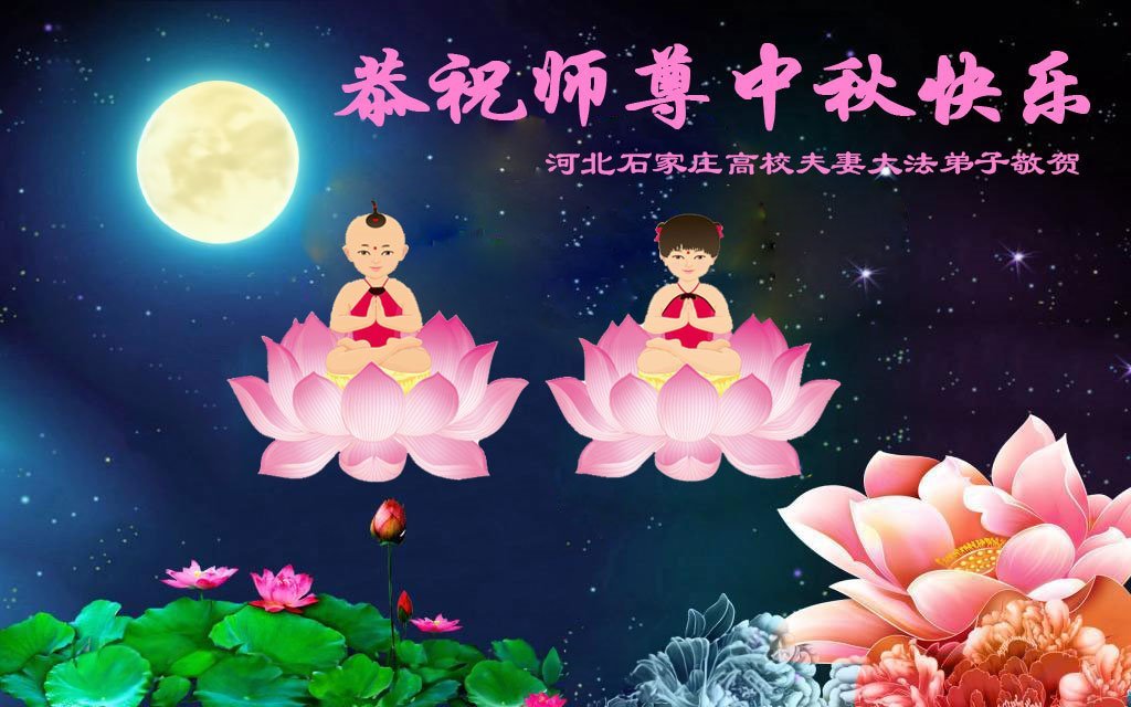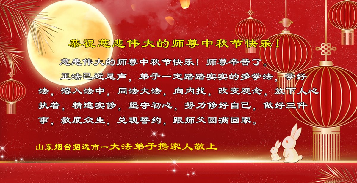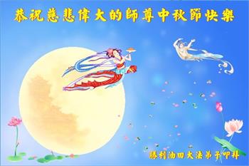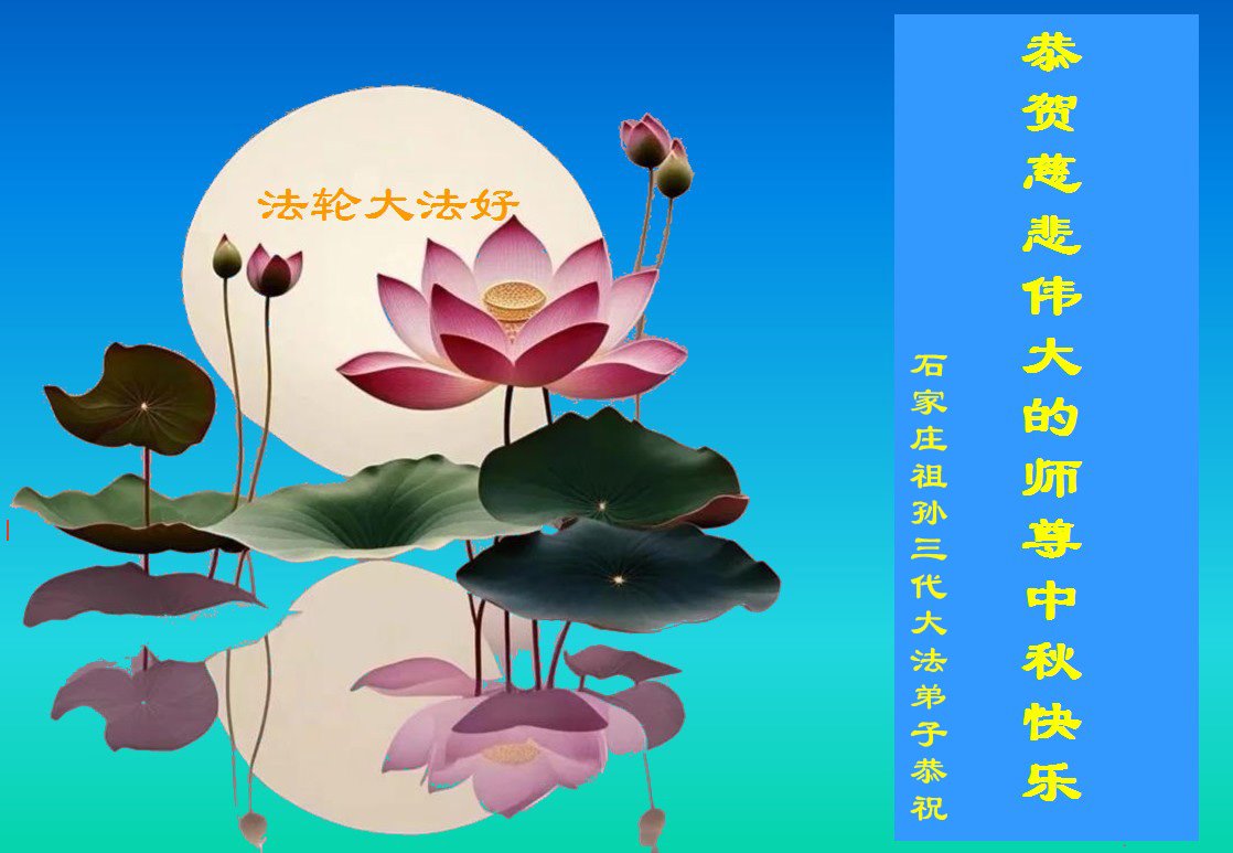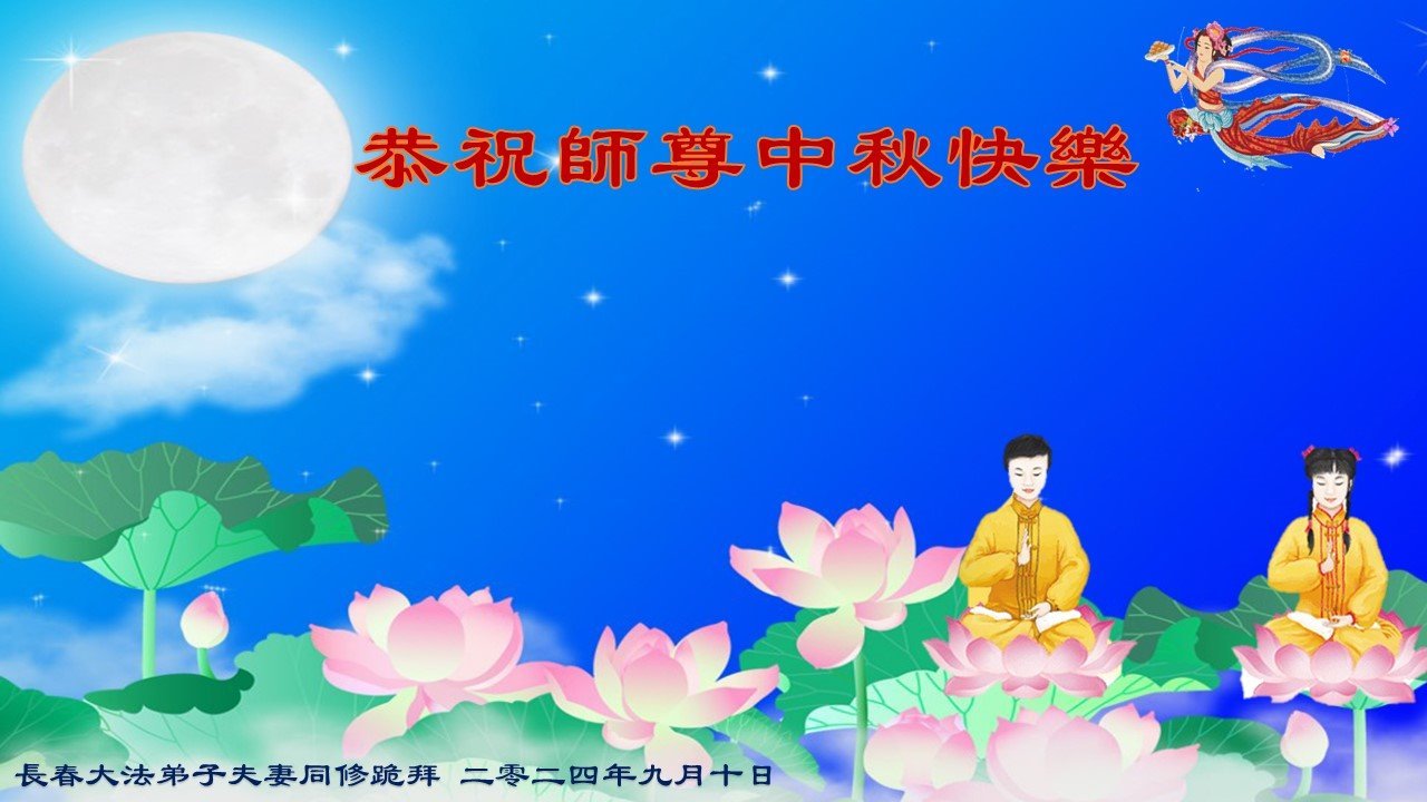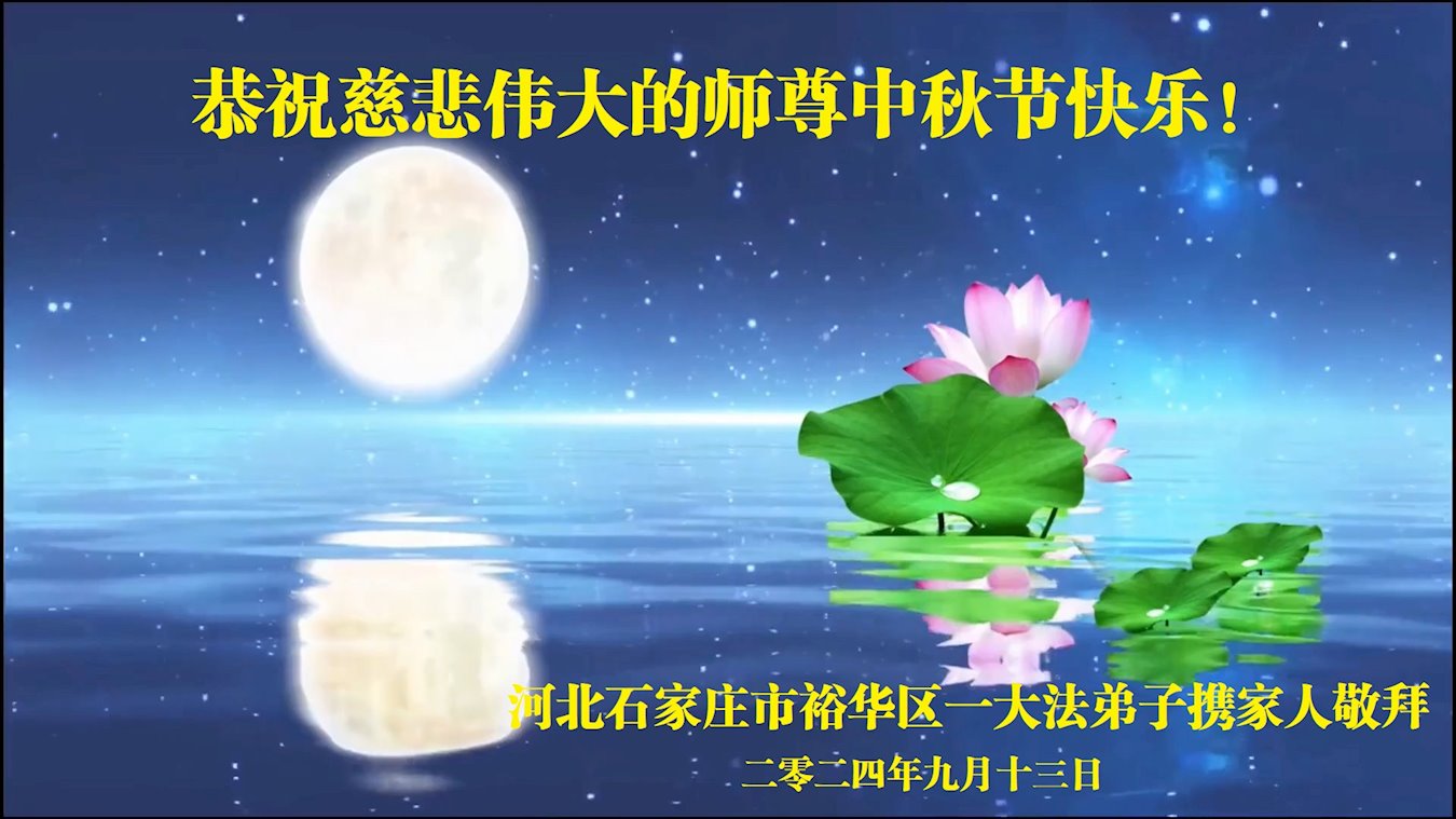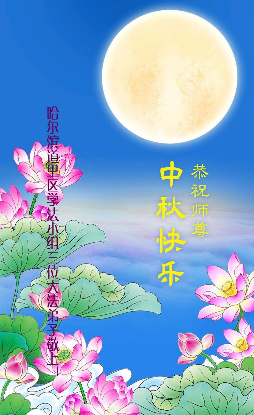 弟子和家人同修恭祝师父中秋节快乐!感恩师父对弟子和家人同修的一路慈悲看护!弟子也感恩师父对弟子的一切慈悲安排!弟子一定努力多学法炼功,用心做好救人的事情,修去妒嫉心,怨恨心,及人心,人念,人情,努力做好师父让弟子做的救人的事,跟随师父回家!