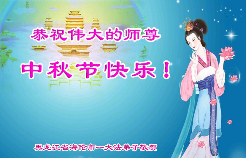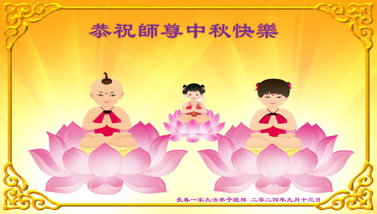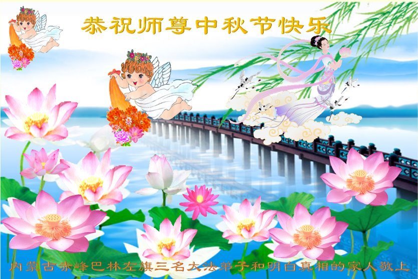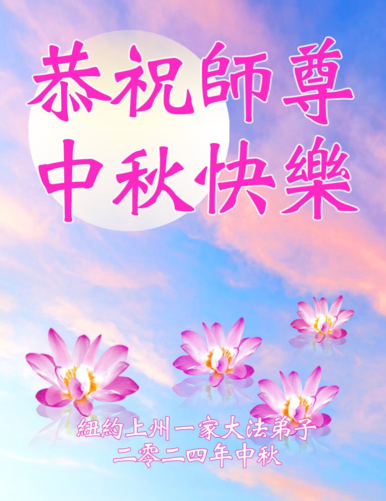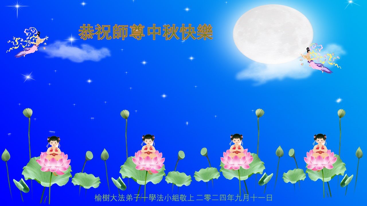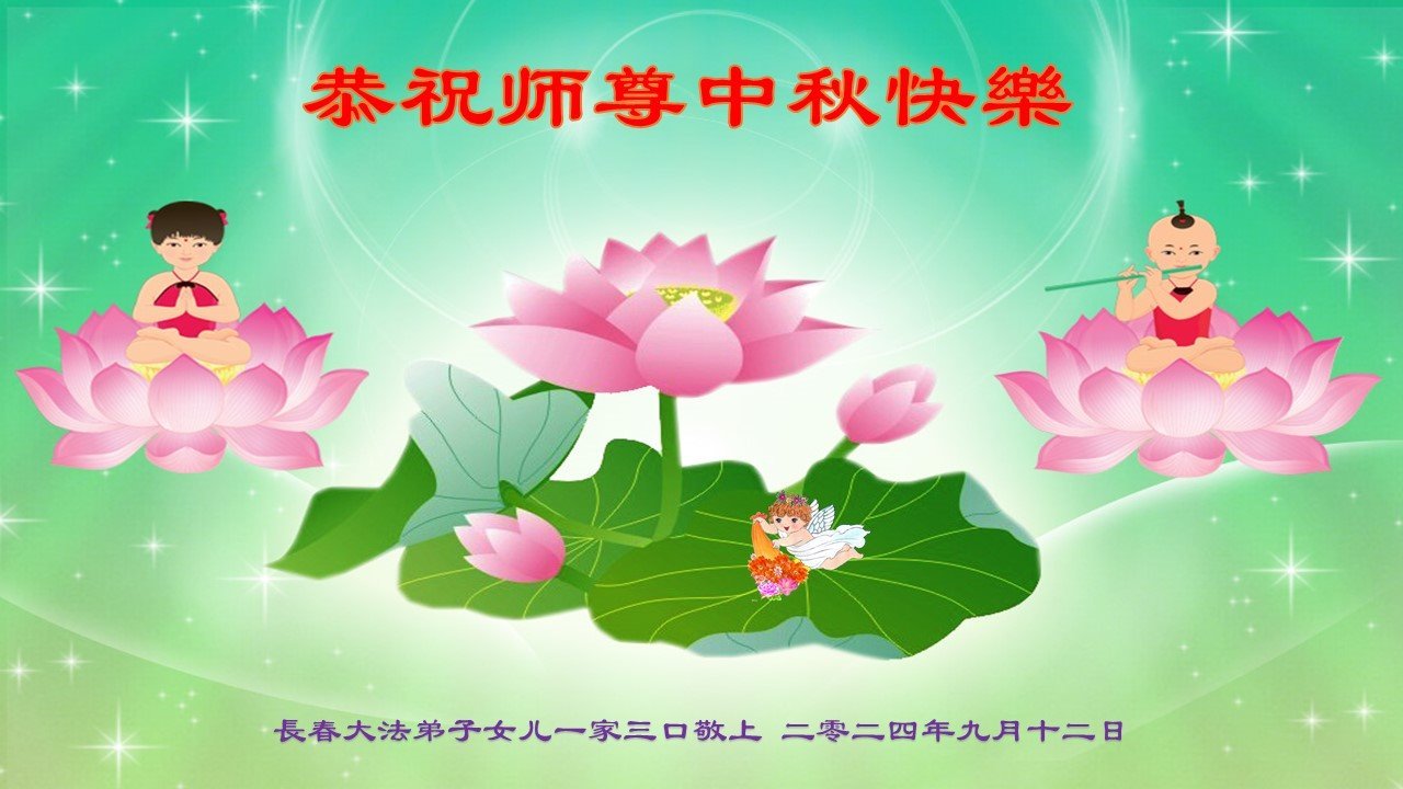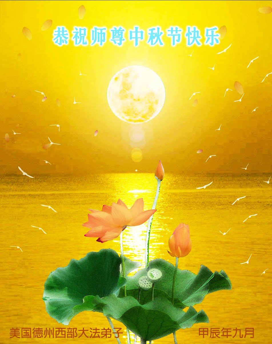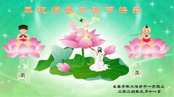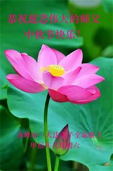 弟子和家人同修恭祝师父中秋节快乐!感恩师父对弟子和家人同修的一路慈悲看护!弟子也感恩师父对弟子的一切慈悲安排!弟子一定努力多学法炼功,用心做好救人的事情,修去妒嫉心,怨恨心,及人心,人念,人情,努力做好师父让弟子做的救人的事,跟随师父回家!