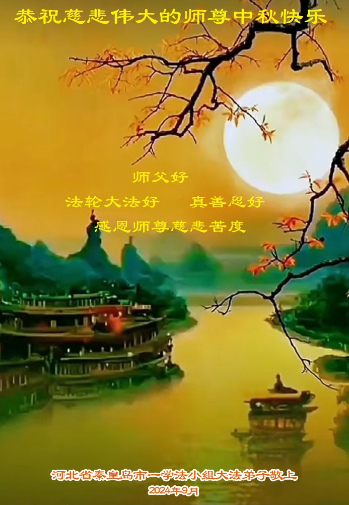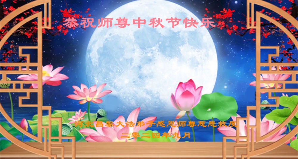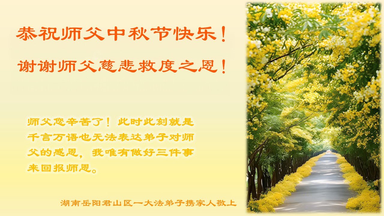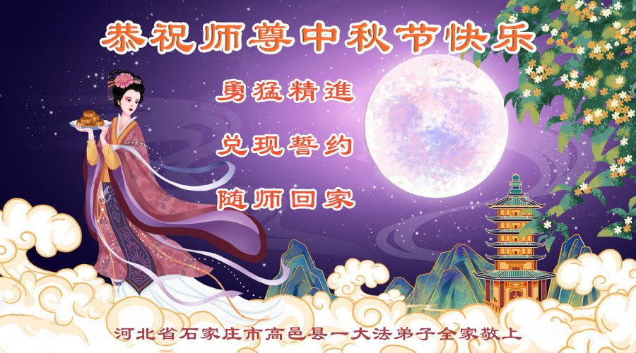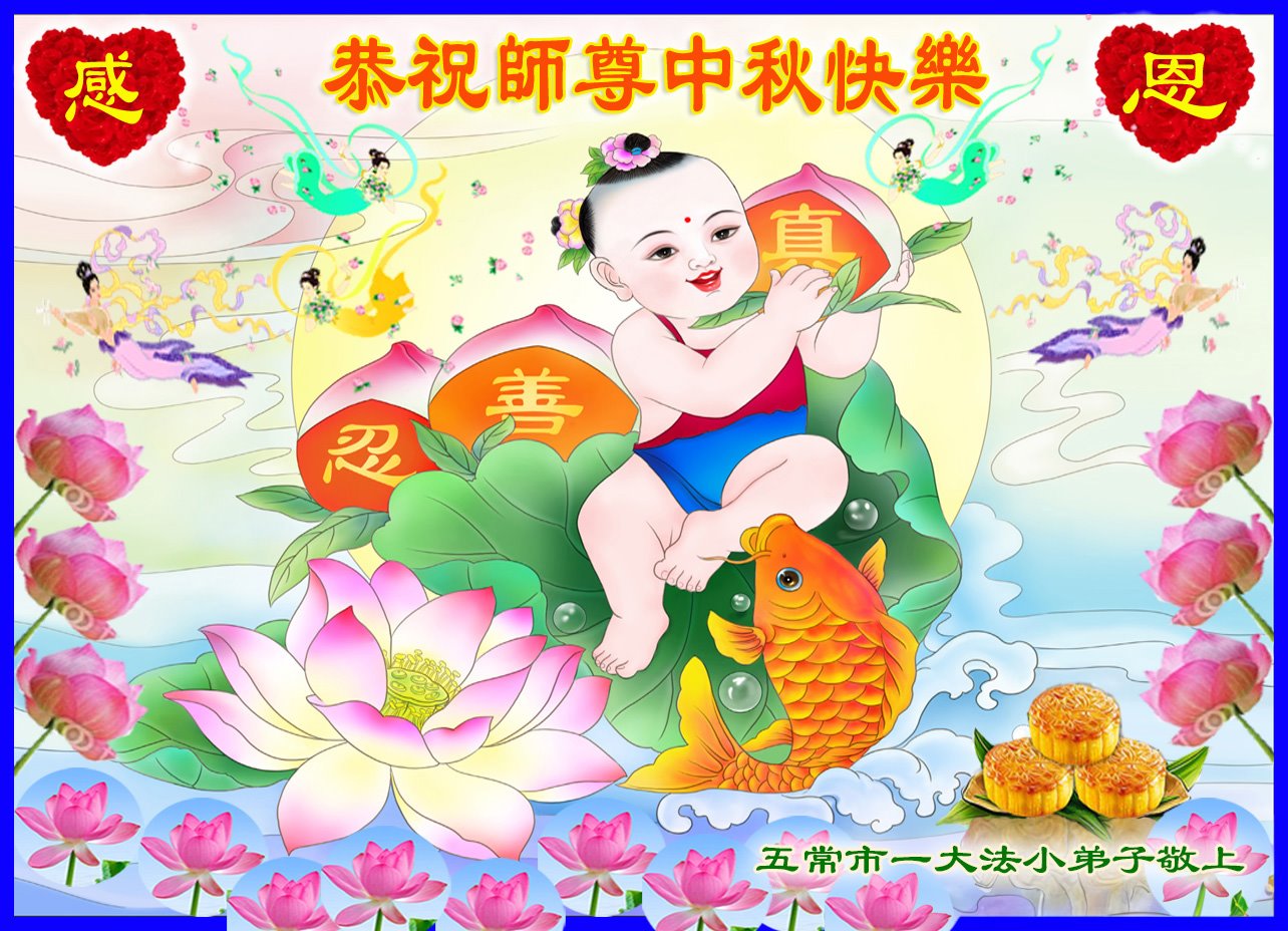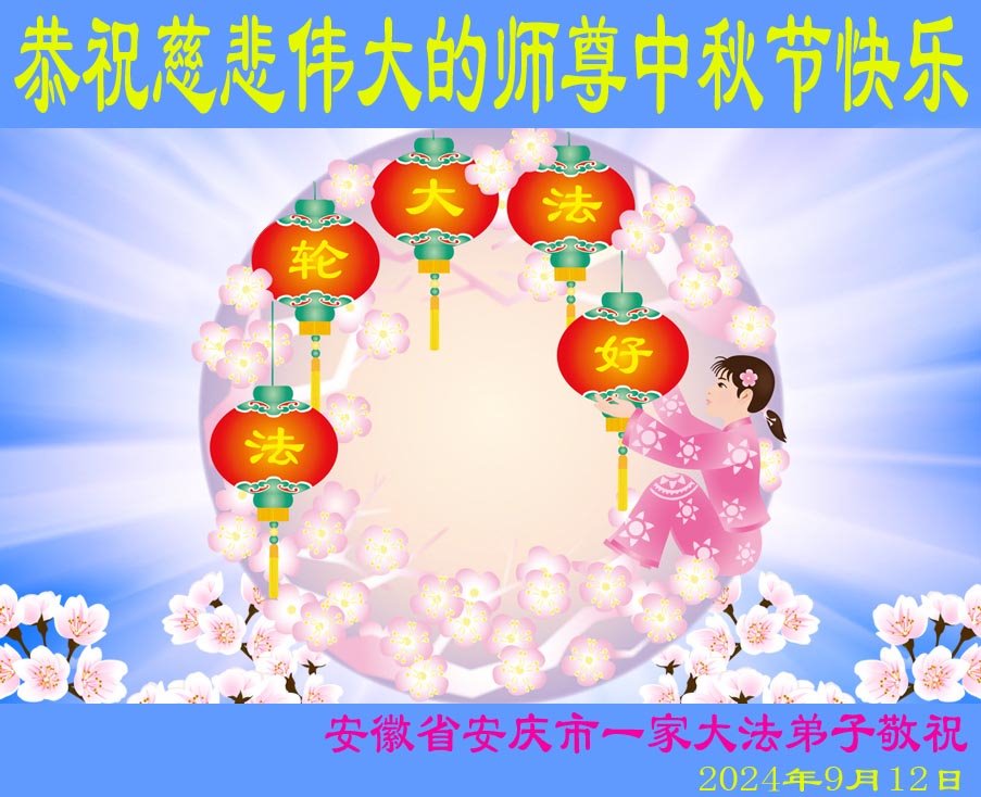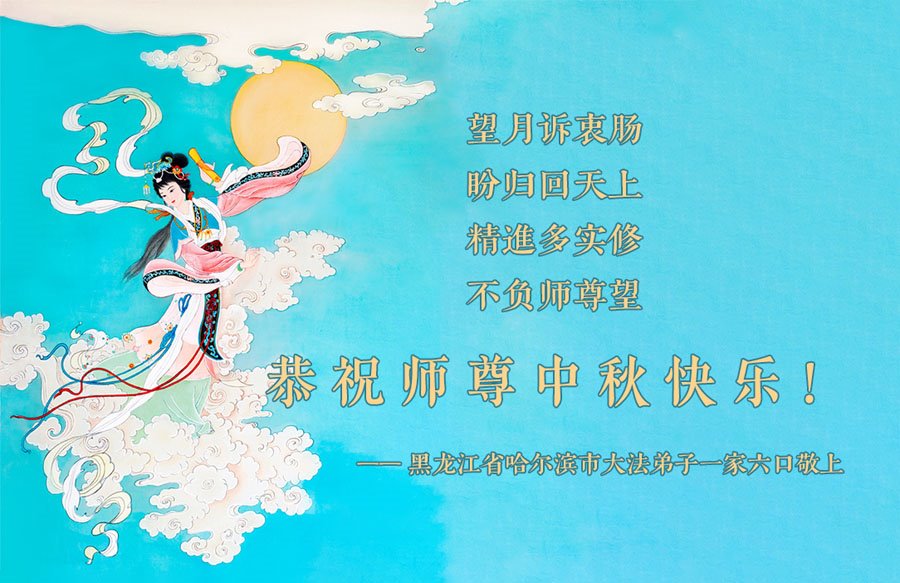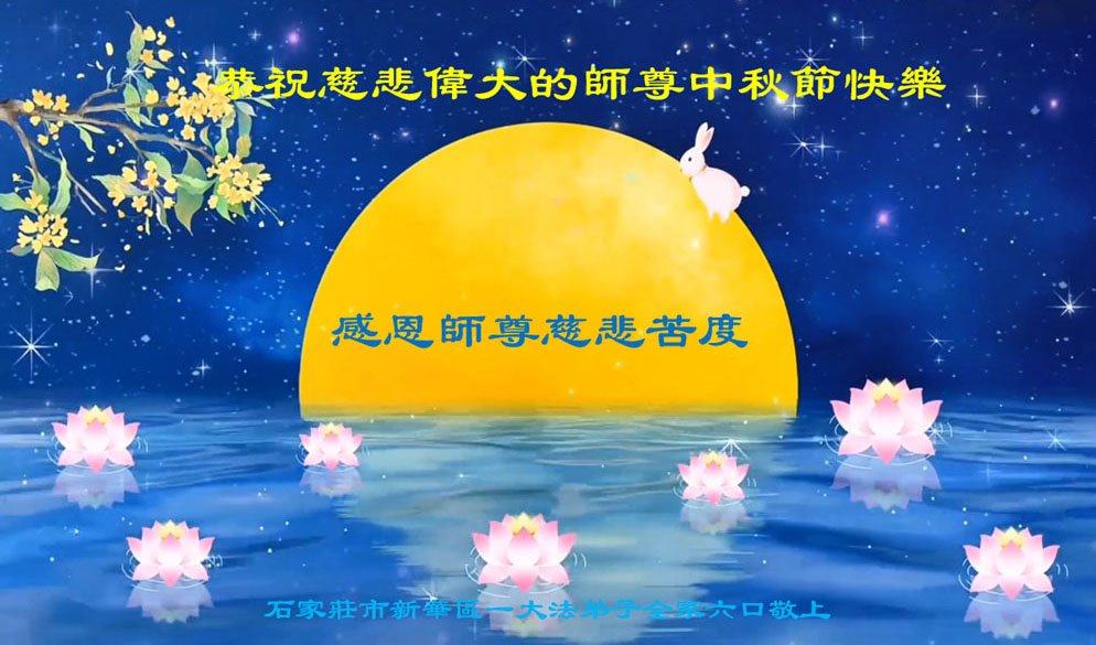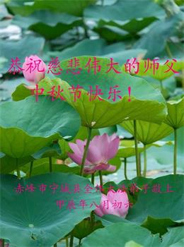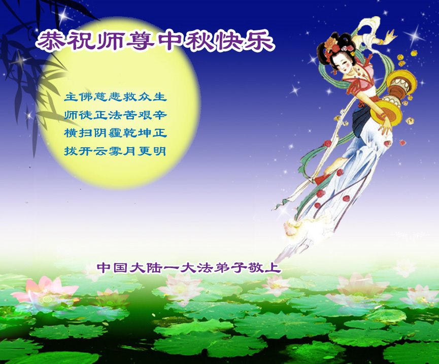 弟子和家人同修恭祝师父中秋节快乐!感恩师父对弟子和家人同修的一路慈悲看护!弟子也感恩师父对弟子的一切慈悲安排!弟子一定努力多学法炼功,用心做好救人的事情,修去妒嫉心,怨恨心,及人心,人念,人情,努力做好师父让弟子做的救人的事,跟随师父回家!