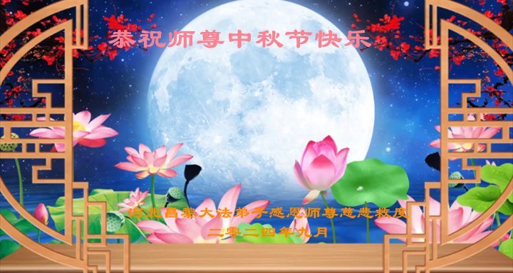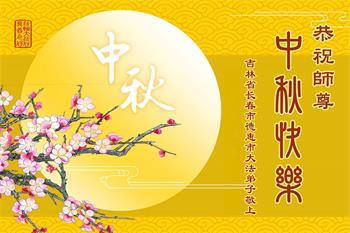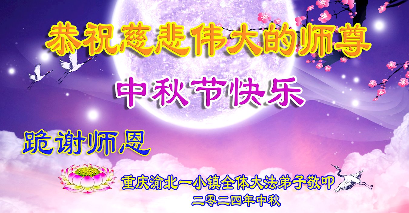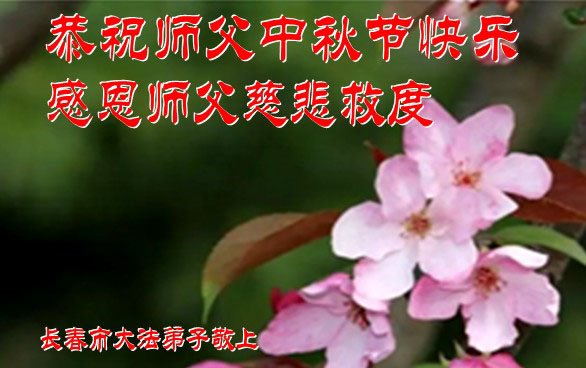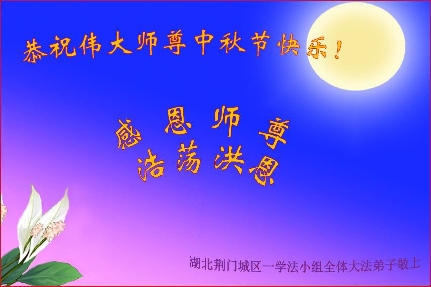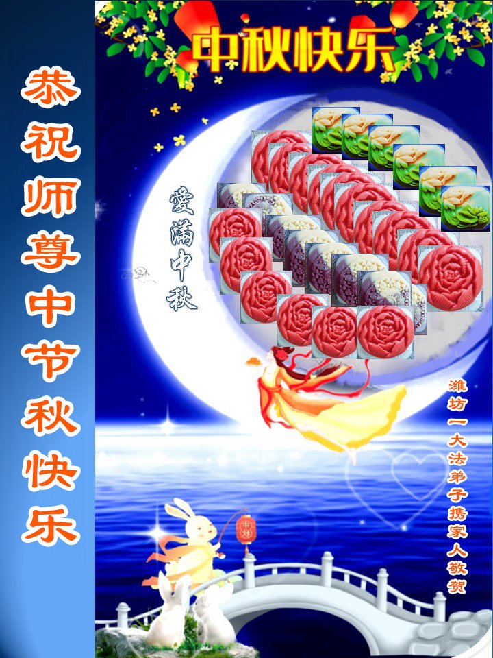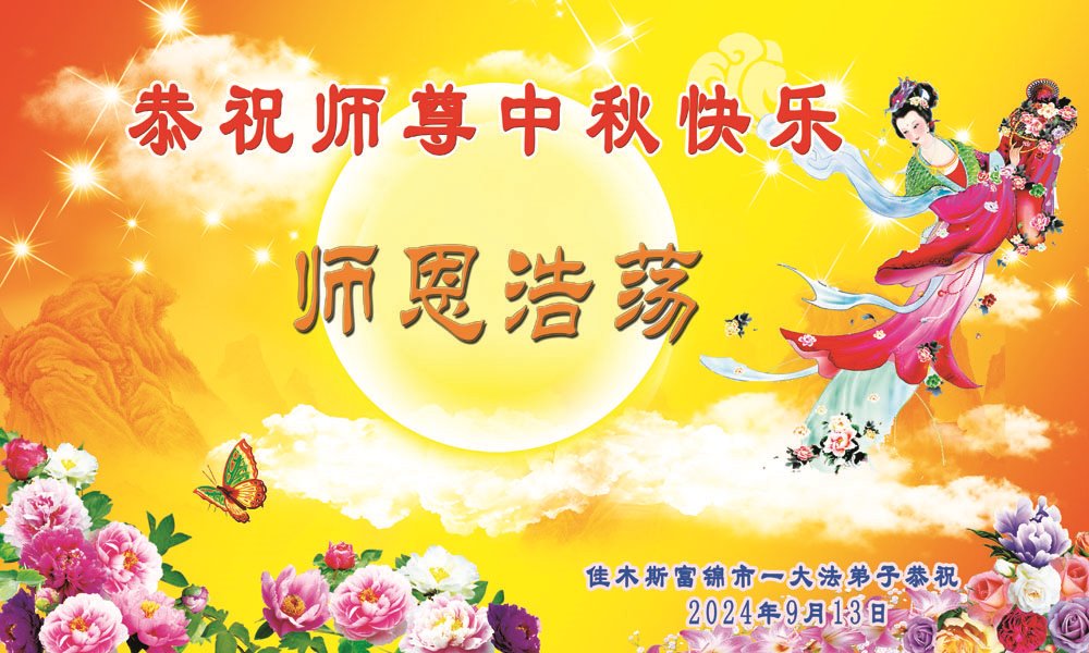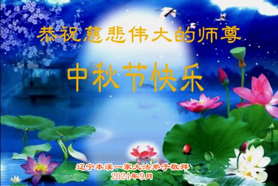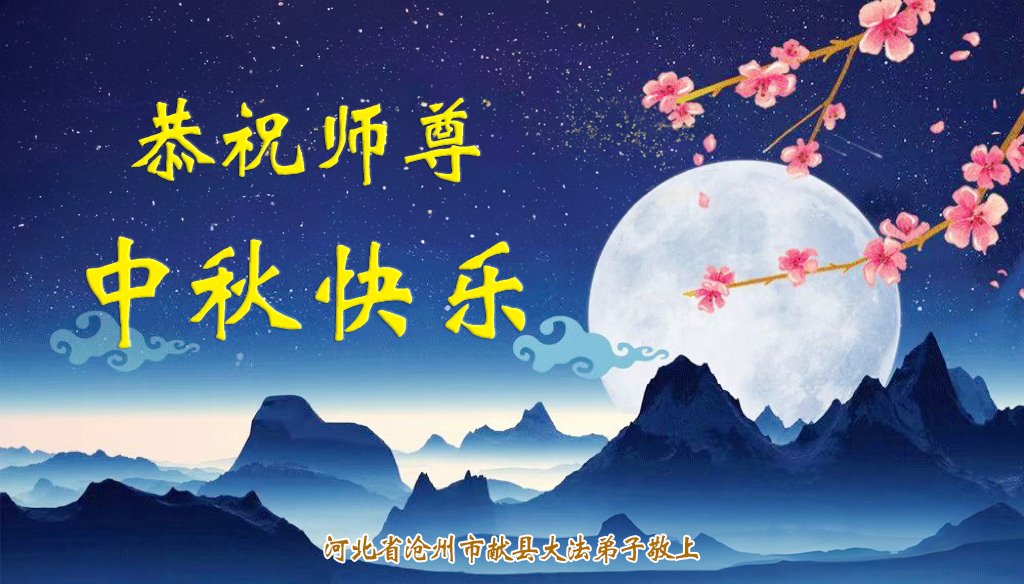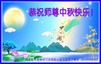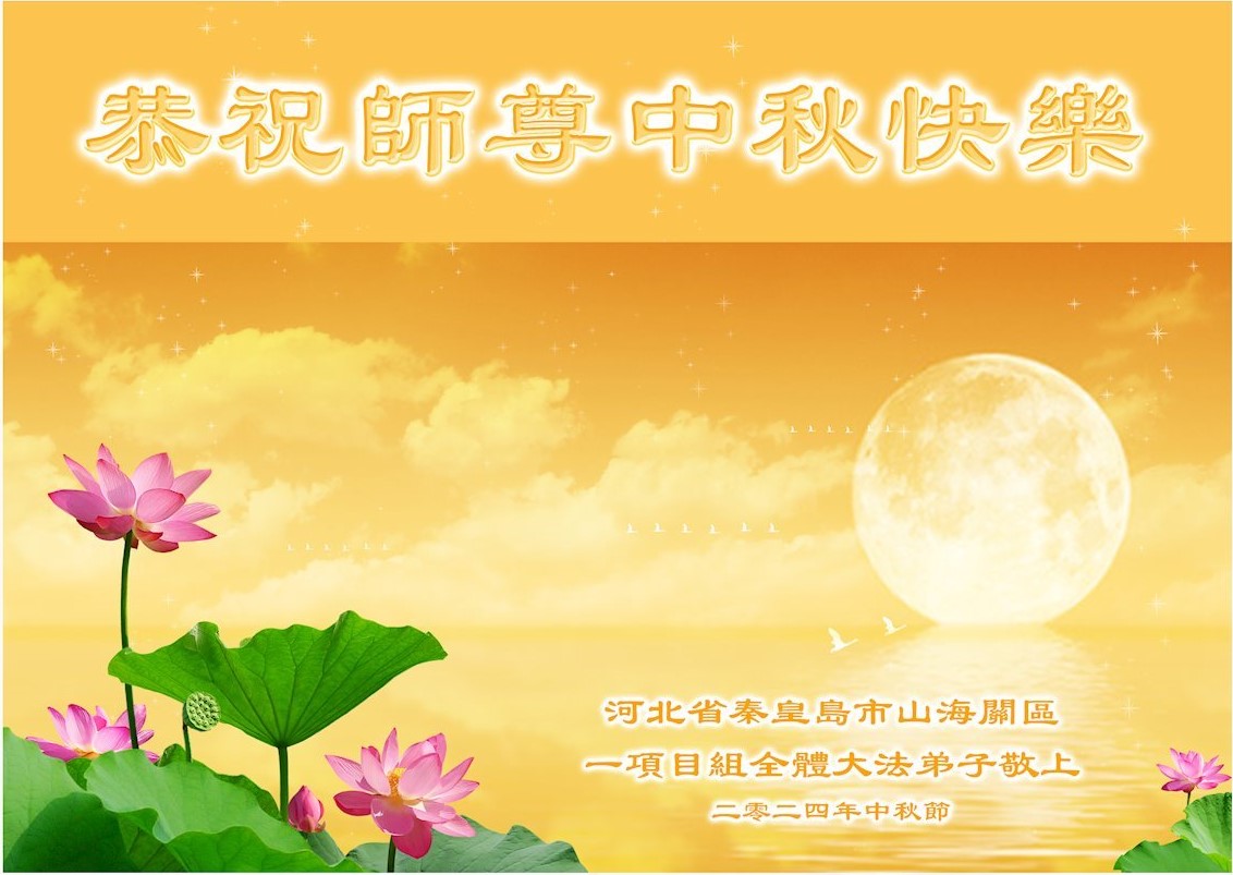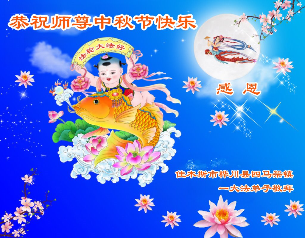 弟子和家人同修恭祝师父中秋节快乐!感恩师父对弟子和家人同修的一路慈悲看护!弟子也感恩师父对弟子的一切慈悲安排!弟子一定努力多学法炼功,用心做好救人的事情,修去妒嫉心,怨恨心,及人心,人念,人情,努力做好师父让弟子做的救人的事,跟随师父回家!