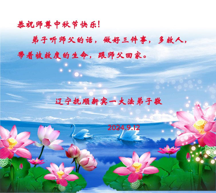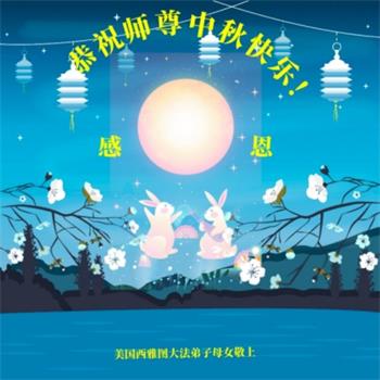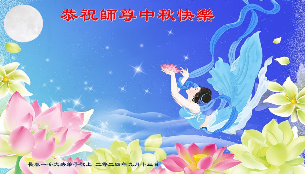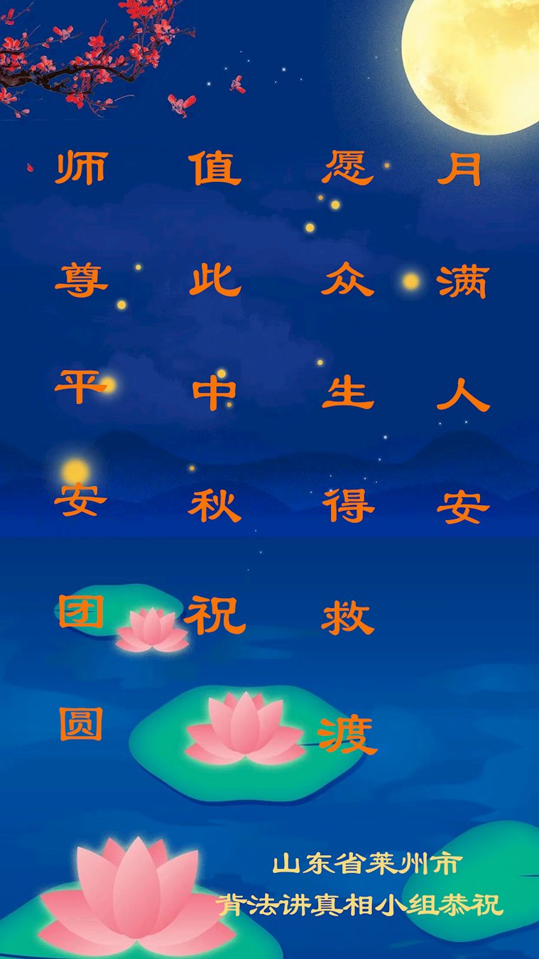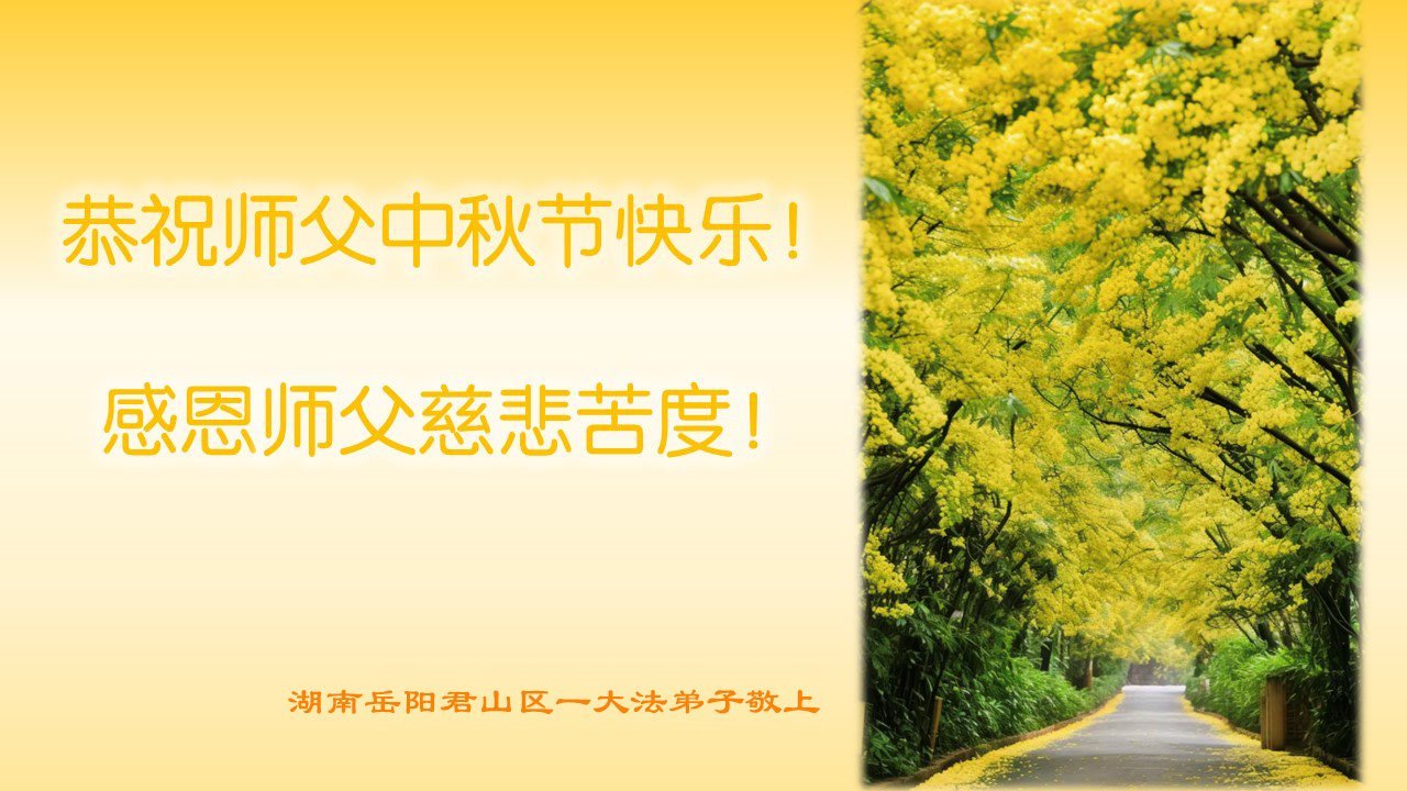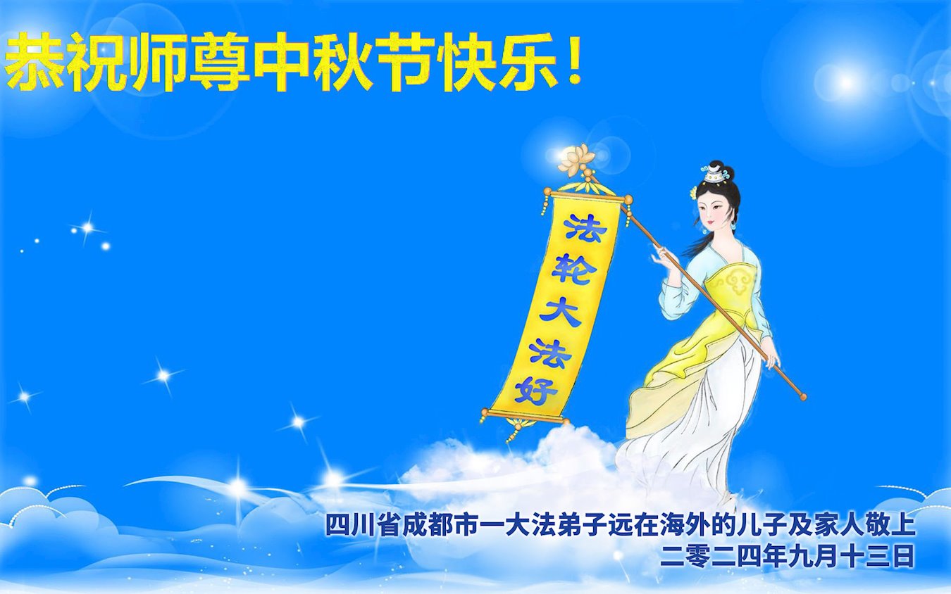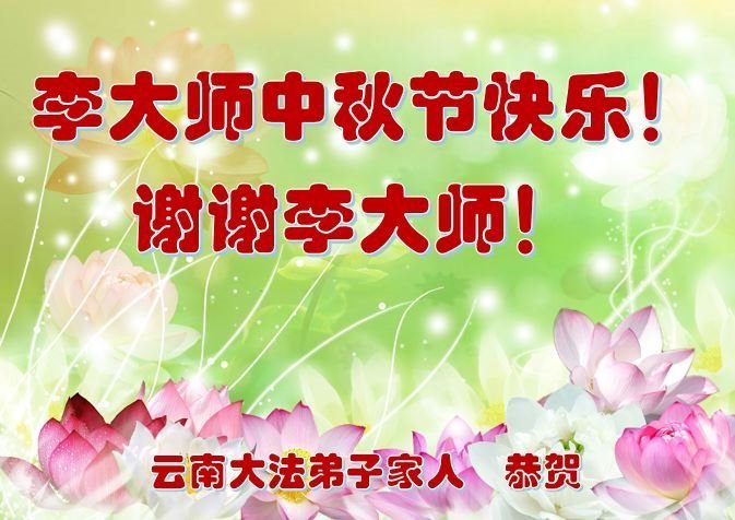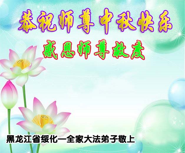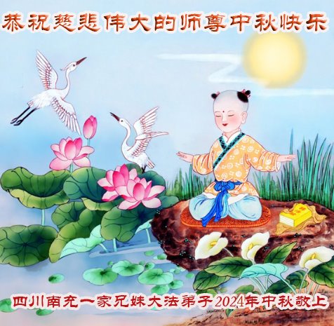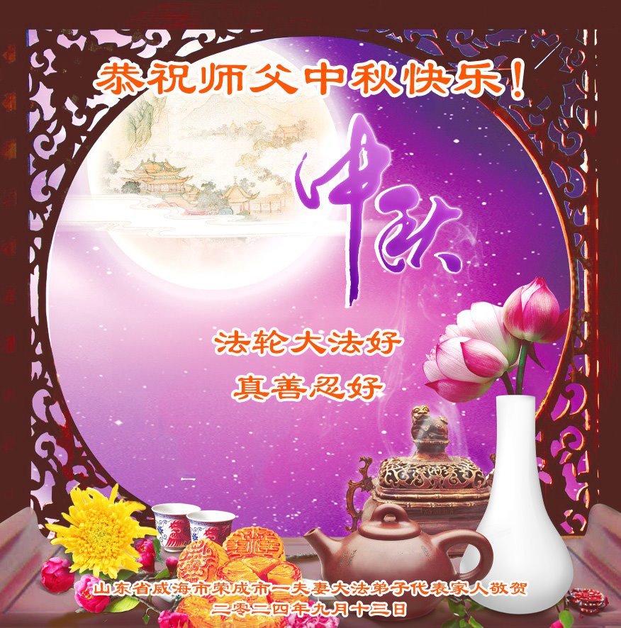 弟子和家人同修恭祝师父中秋节快乐!感恩师父对弟子和家人同修的一路慈悲看护!弟子也感恩师父对弟子的一切慈悲安排!弟子一定努力多学法炼功,用心做好救人的事情,修去妒嫉心,怨恨心,及人心,人念,人情,努力做好师父让弟子做的救人的事,跟随师父回家!