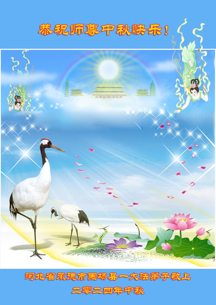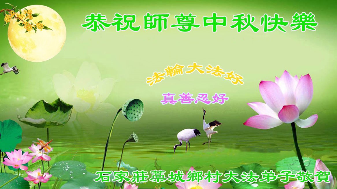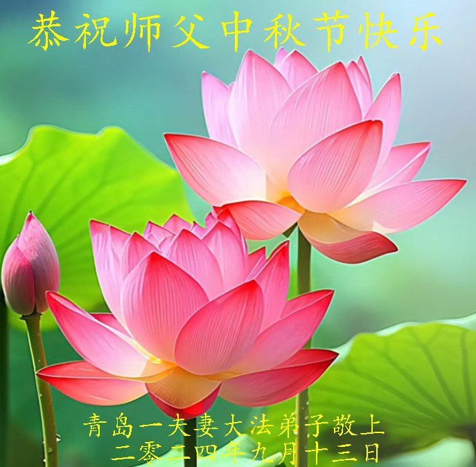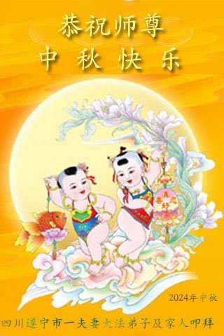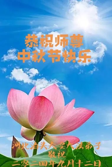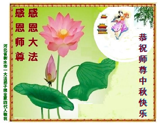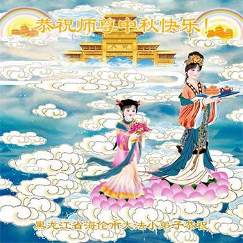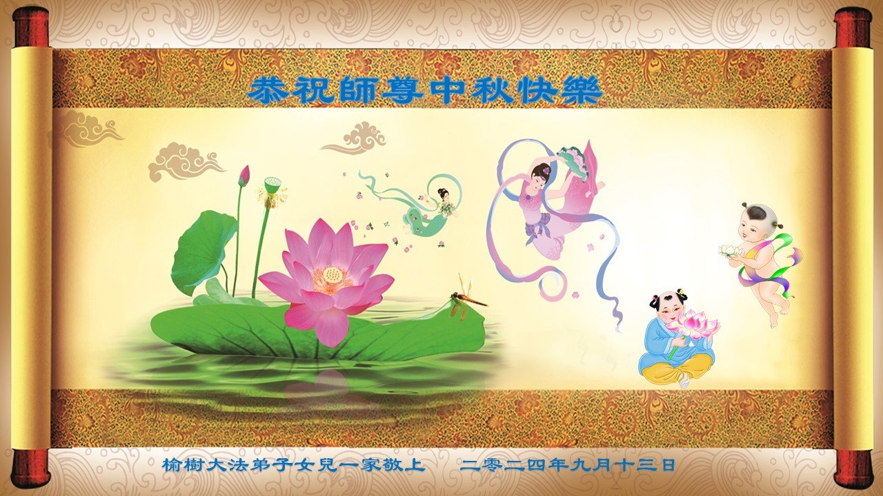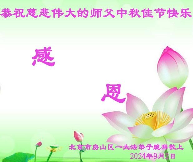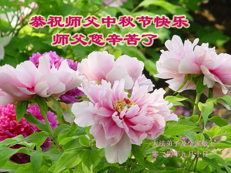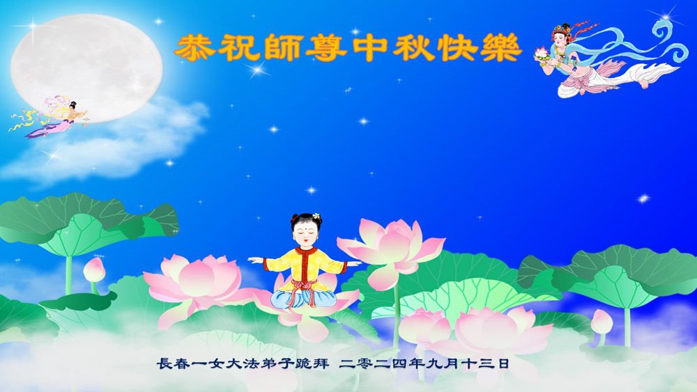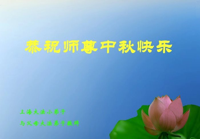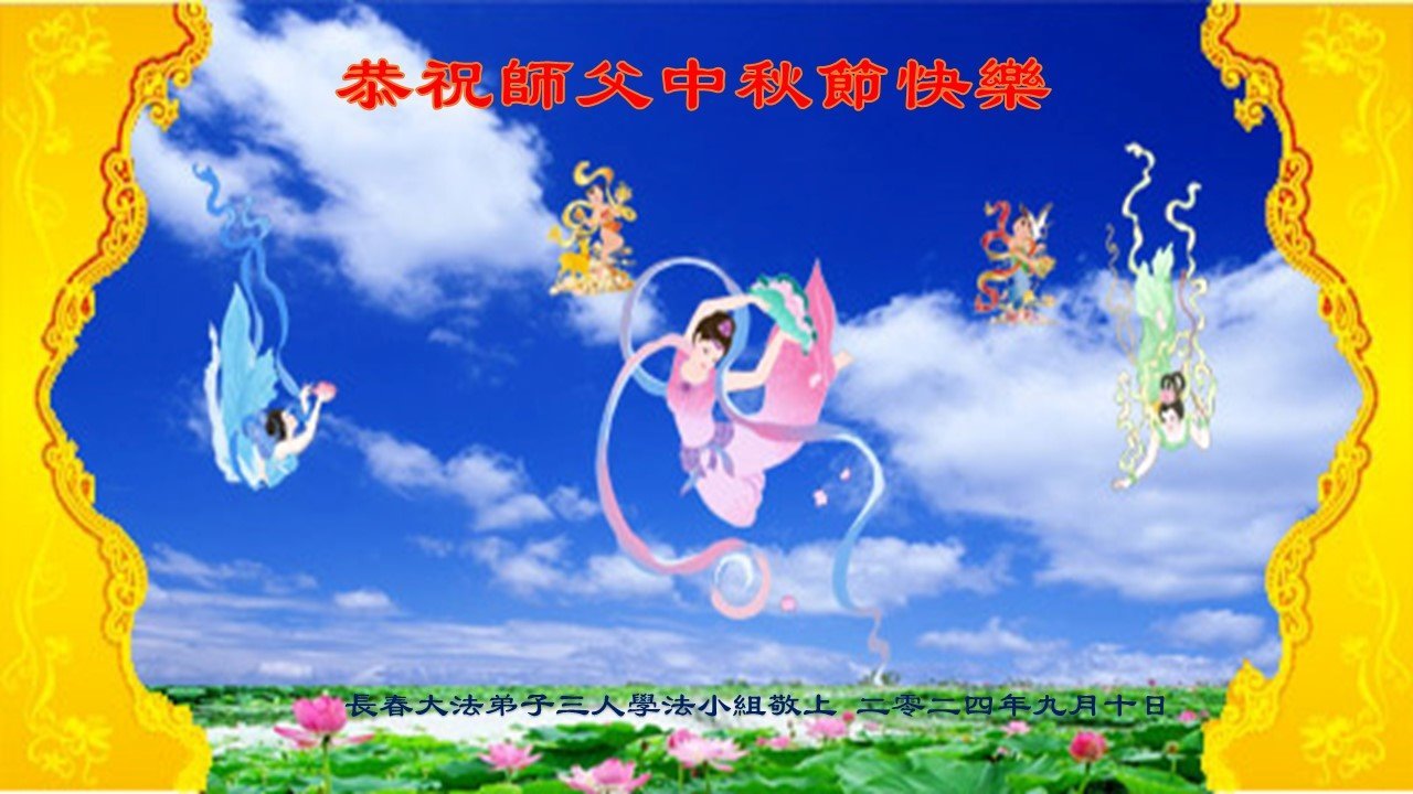 弟子和家人同修恭祝师父中秋节快乐!感恩师父对弟子和家人同修的一路慈悲看护!弟子也感恩师父对弟子的一切慈悲安排!弟子一定努力多学法炼功,用心做好救人的事情,修去妒嫉心,怨恨心,及人心,人念,人情,努力做好师父让弟子做的救人的事,跟随师父回家!