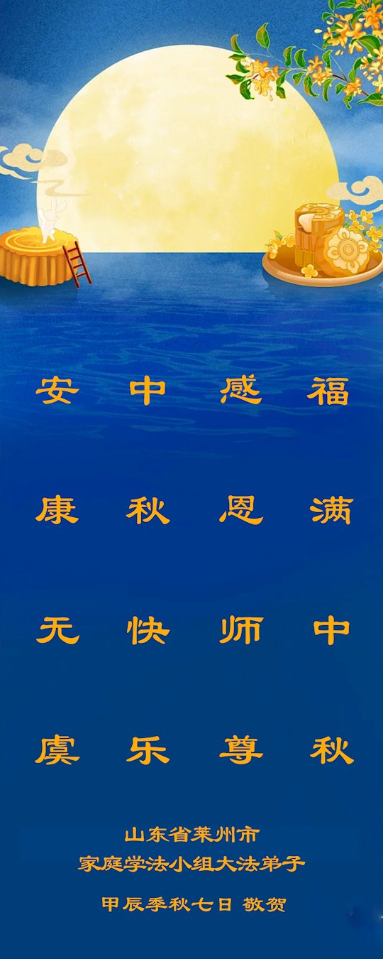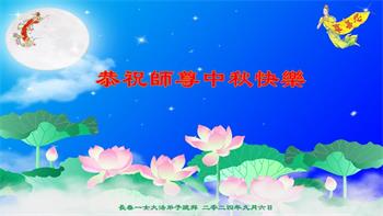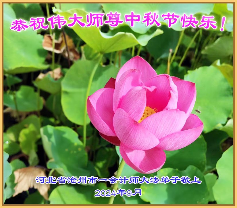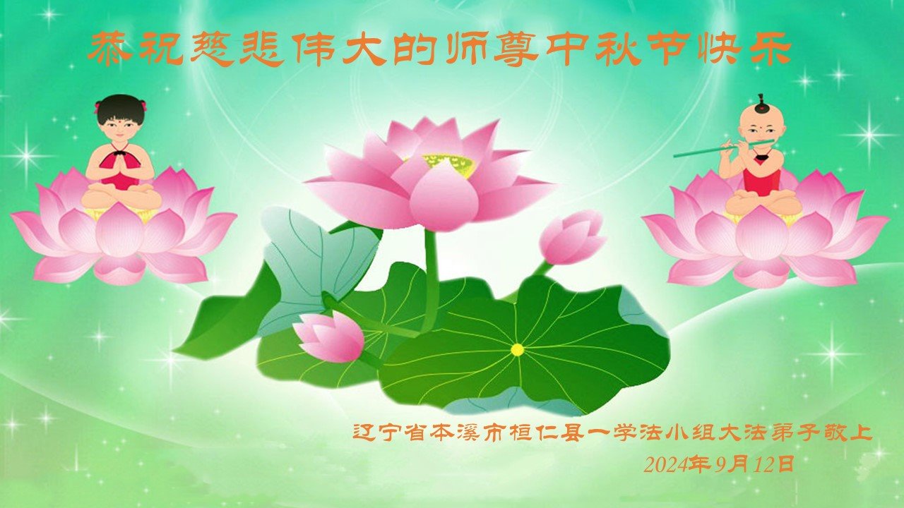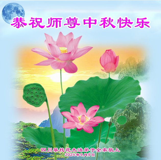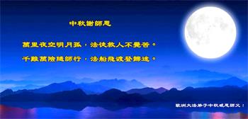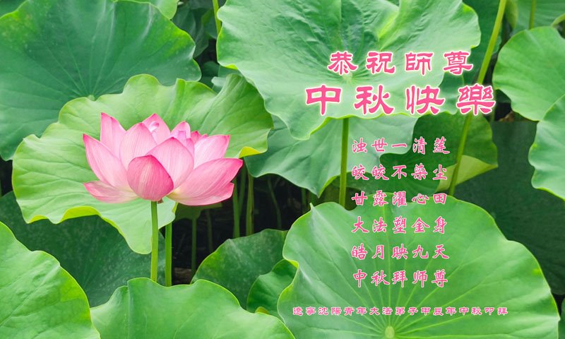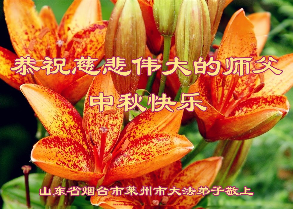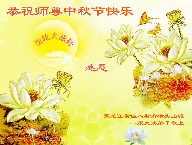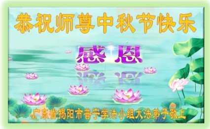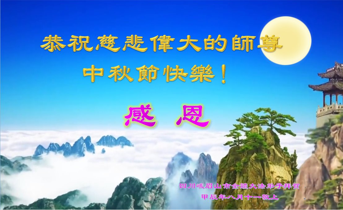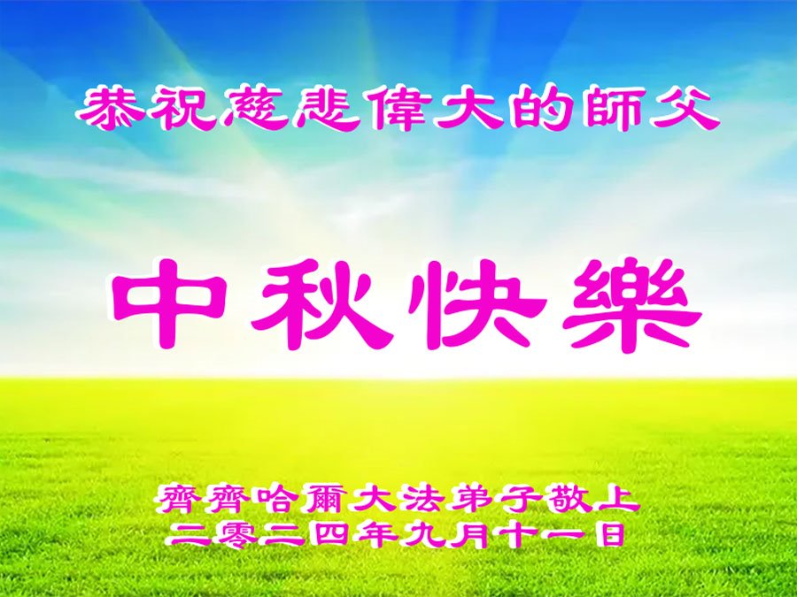 弟子和家人同修恭祝师父中秋节快乐!感恩师父对弟子和家人同修的一路慈悲看护!弟子也感恩师父对弟子的一切慈悲安排!弟子一定努力多学法炼功,用心做好救人的事情,修去妒嫉心,怨恨心,及人心,人念,人情,努力做好师父让弟子做的救人的事,跟随师父回家!