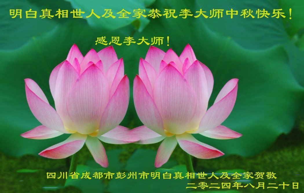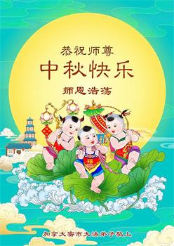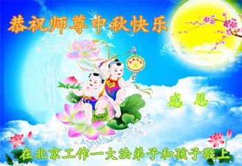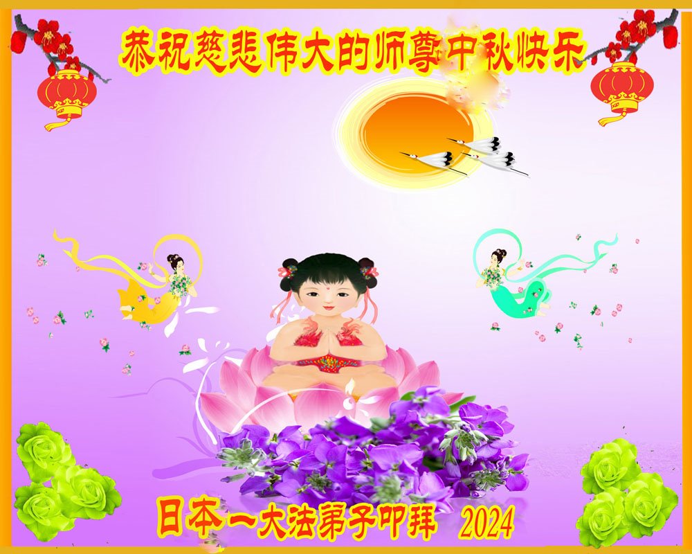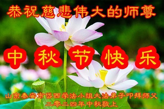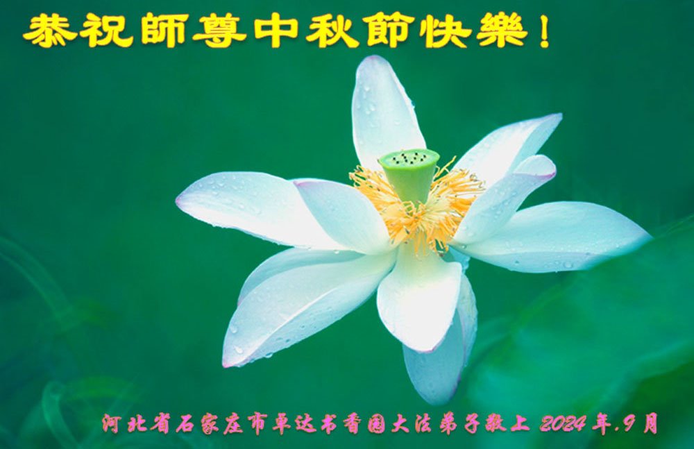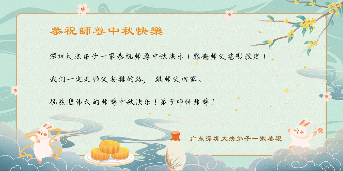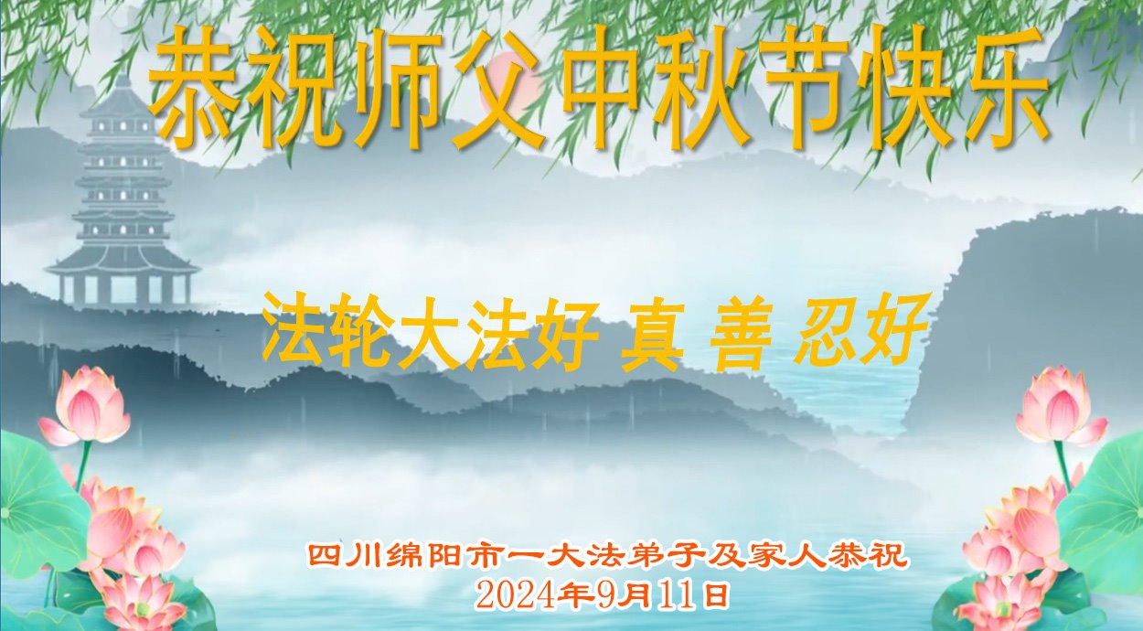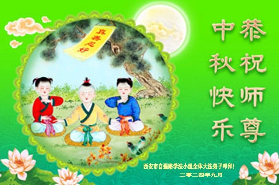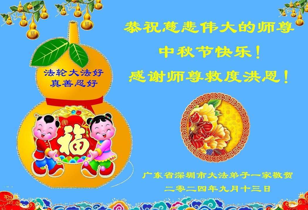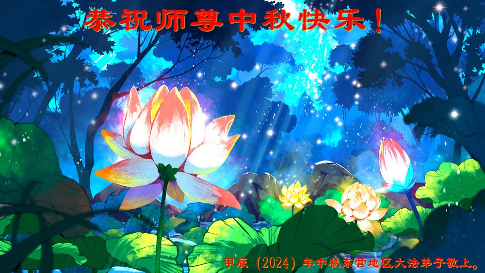 弟子和家人同修恭祝师父中秋节快乐!感恩师父对弟子和家人同修的一路慈悲看护!弟子也感恩师父对弟子的一切慈悲安排!弟子一定努力多学法炼功,用心做好救人的事情,修去妒嫉心,怨恨心,及人心,人念,人情,努力做好师父让弟子做的救人的事,跟随师父回家!