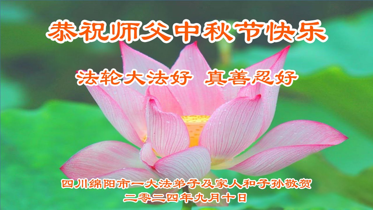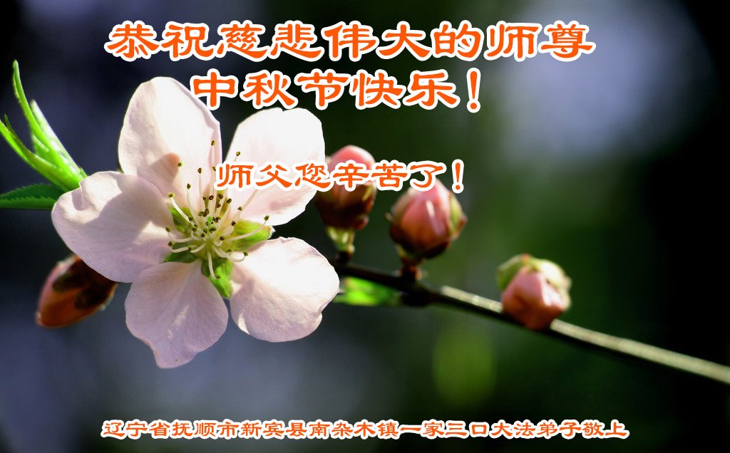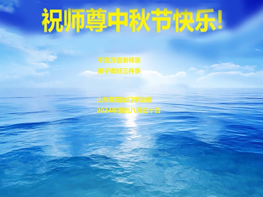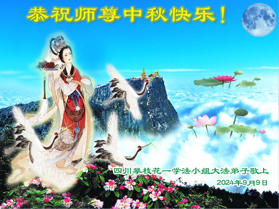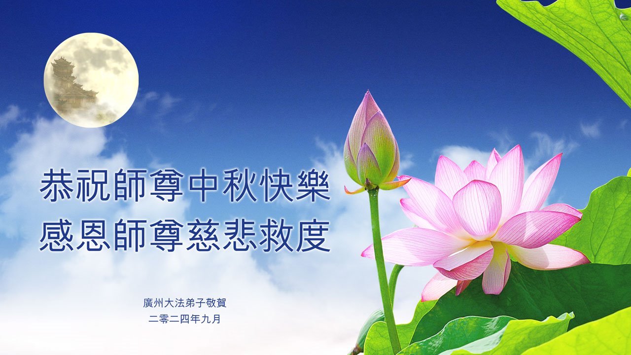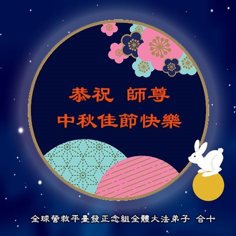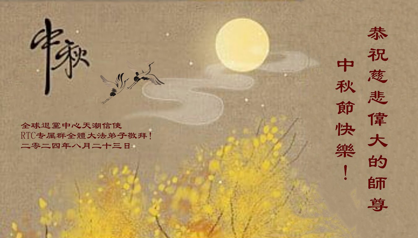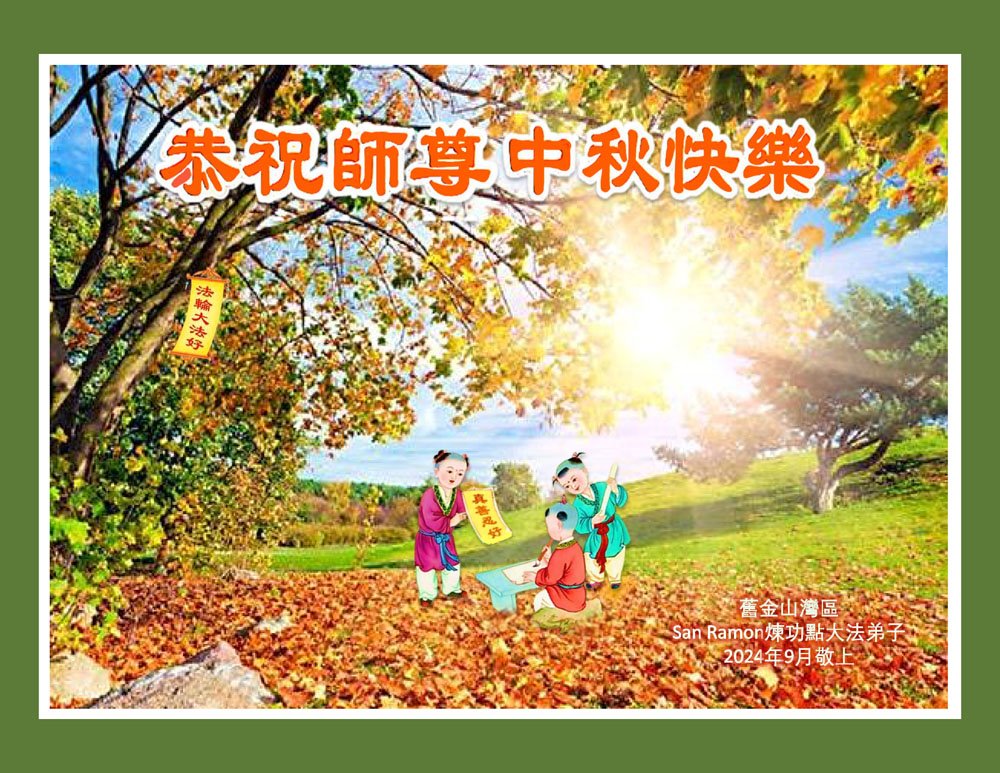弟子和家人同修恭祝师父中秋节快乐!感恩师父对弟子和家人同修的一路慈悲看护!弟子也感恩师父对弟子的一切慈悲安排!弟子一定努力多学法炼功,用心做好救人的事情,修去妒嫉心,怨恨心,及人心,人念,人情,努力做好师父让弟子做的救人的事,跟随师父回家!