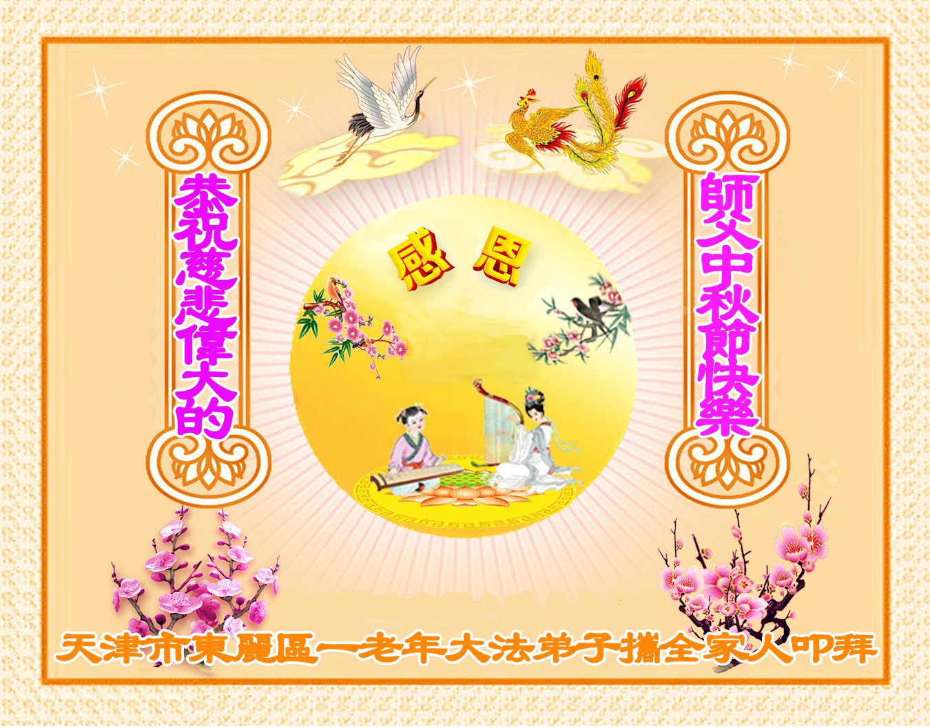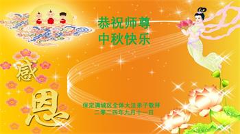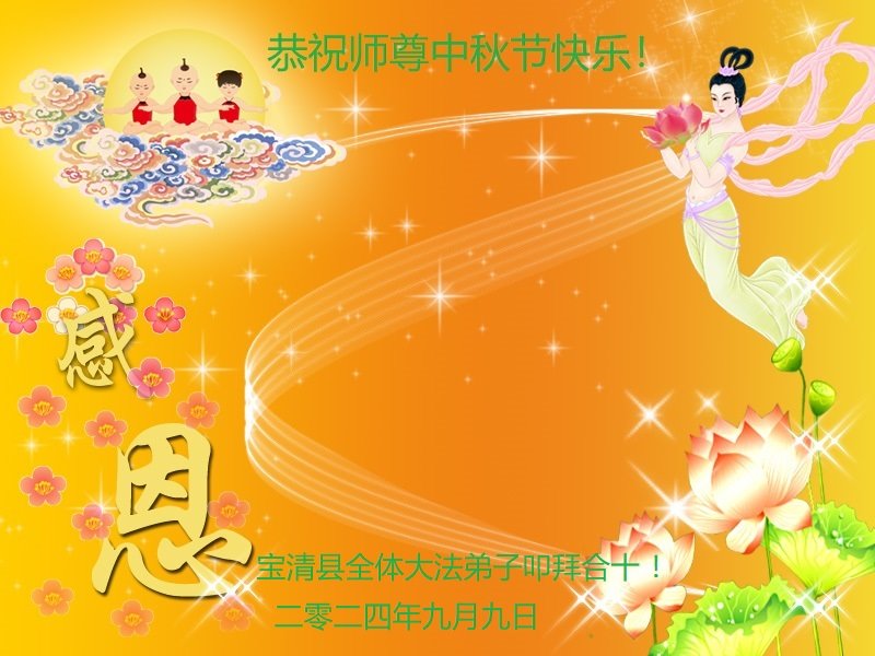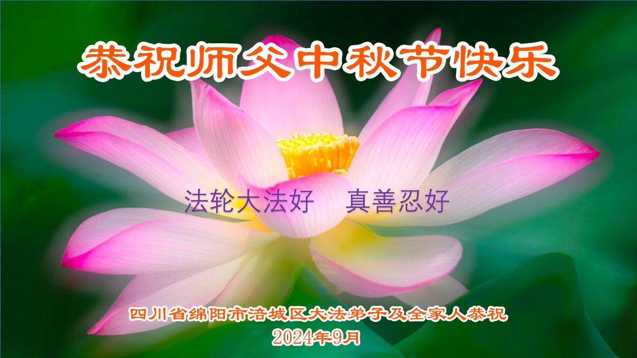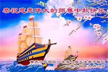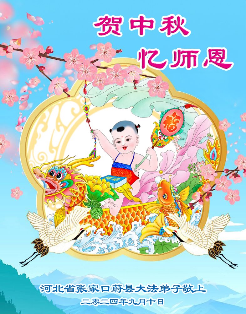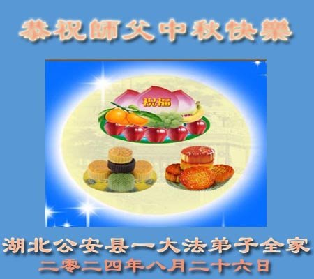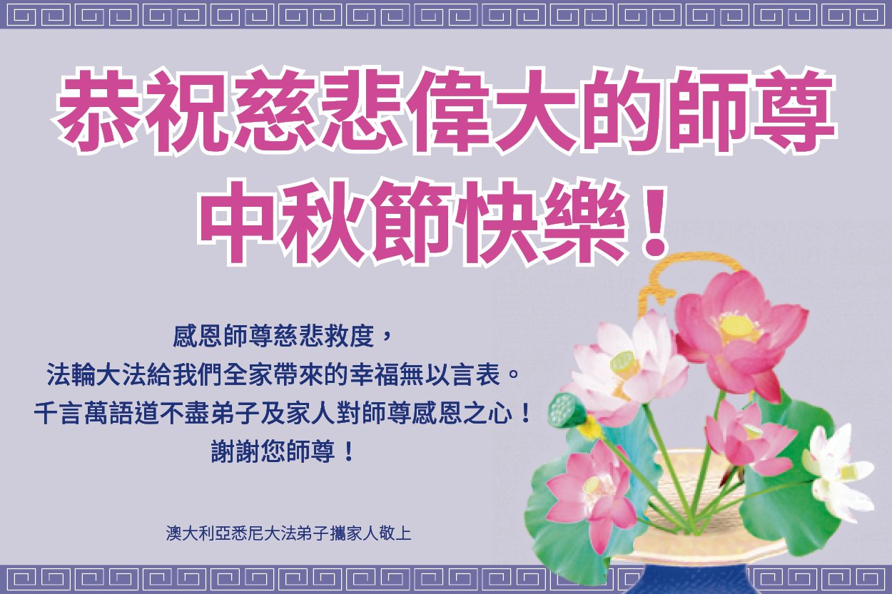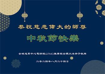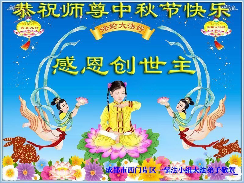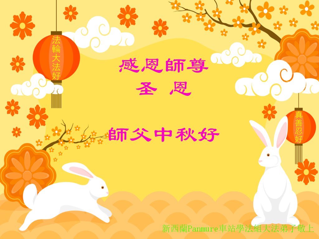 弟子和家人同修恭祝师父中秋节快乐!感恩师父对弟子和家人同修的一路慈悲看护!弟子也感恩师父对弟子的一切慈悲安排!弟子一定努力多学法炼功,用心做好救人的事情,修去妒嫉心,怨恨心,及人心,人念,人情,努力做好师父让弟子做的救人的事,跟随师父回家!