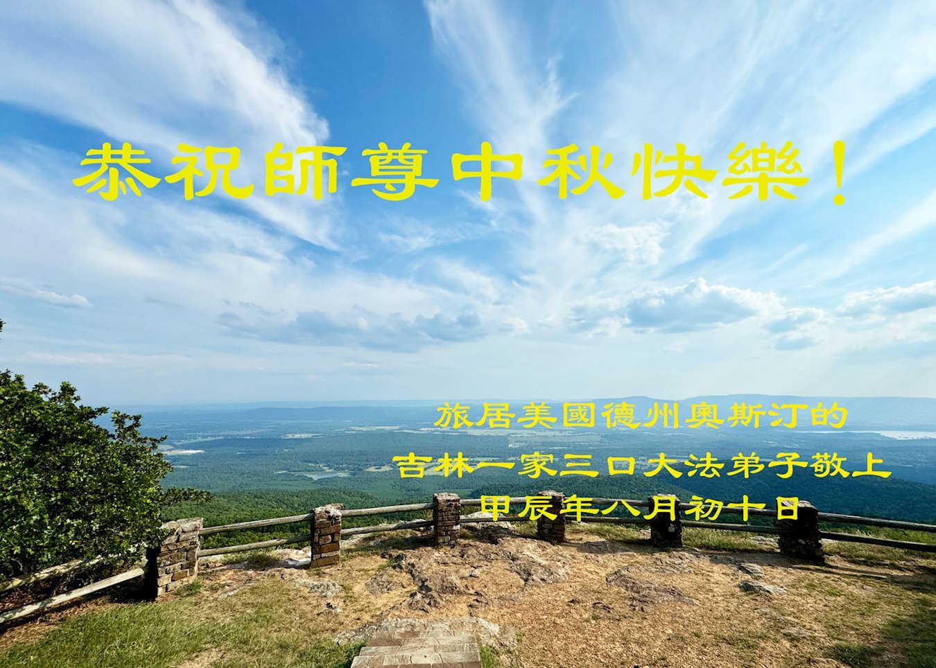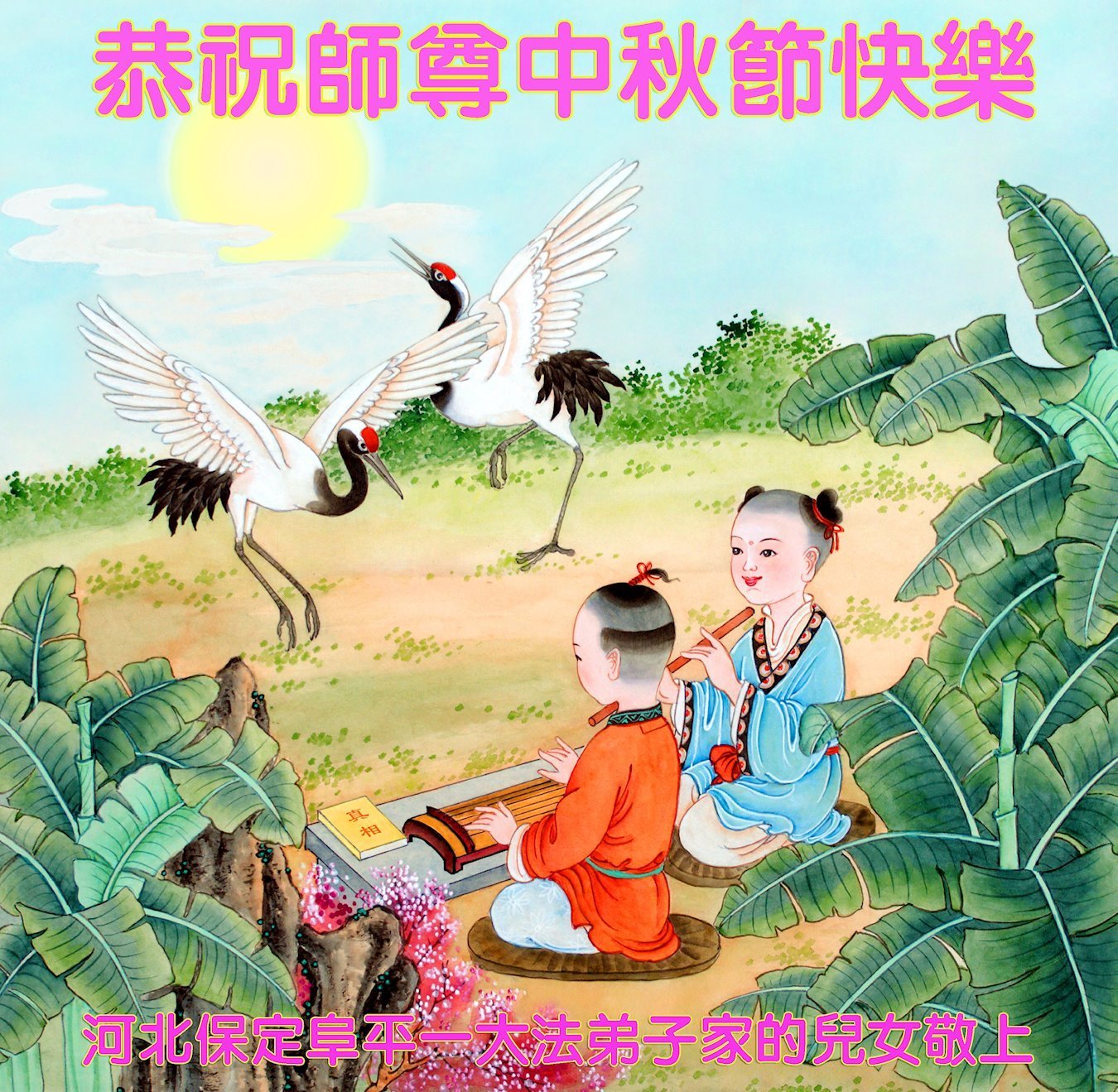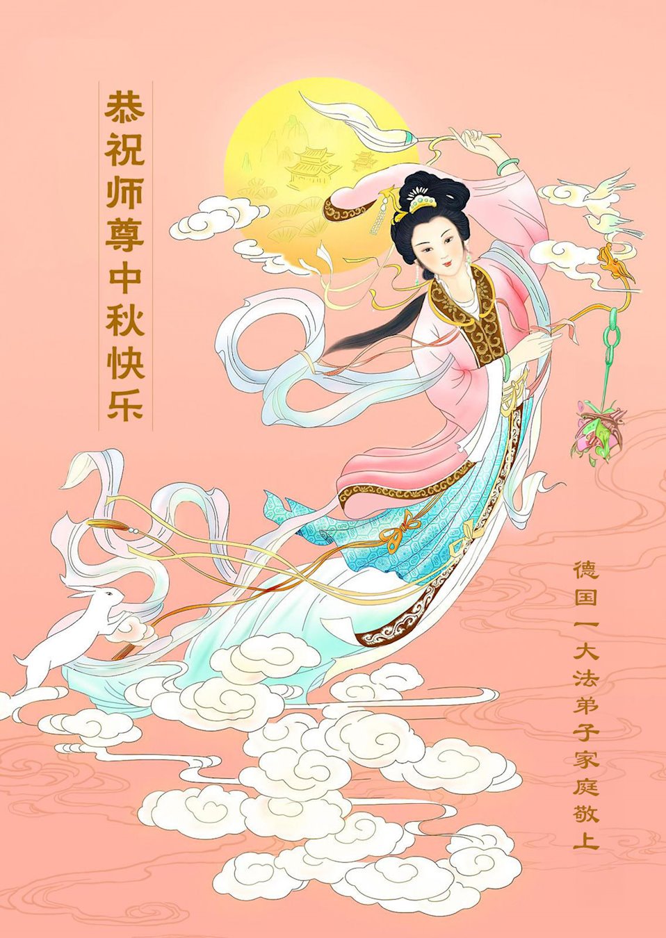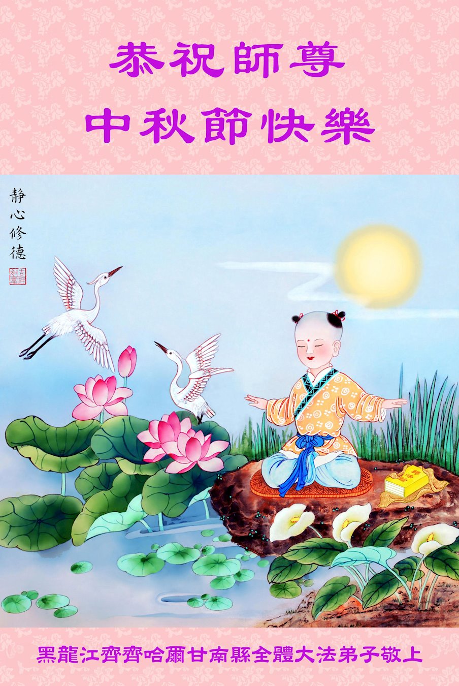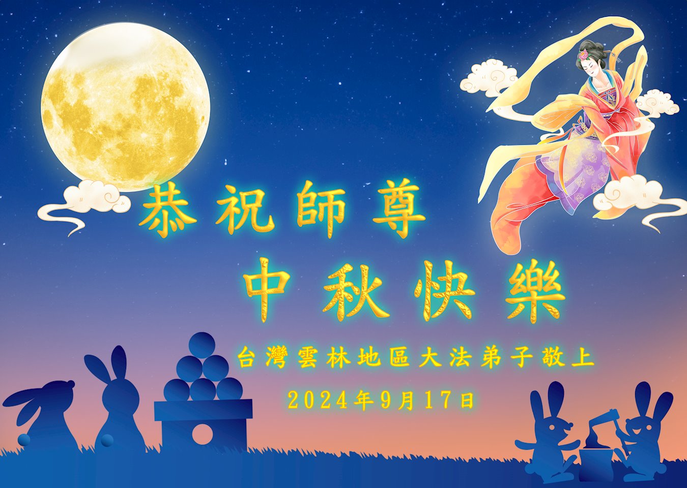 弟子和家人同修恭祝师父中秋节快乐!感恩师父对弟子和家人同修的一路慈悲看护!弟子也感恩师父对弟子的一切慈悲安排!弟子一定努力多学法炼功,用心做好救人的事情,修去妒嫉心,怨恨心,及人心,人念,人情,努力做好师父让弟子做的救人的事,跟随师父回家!