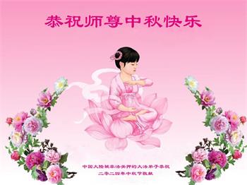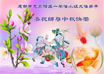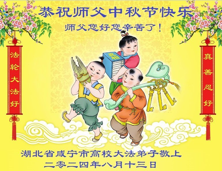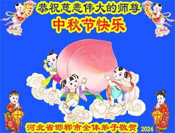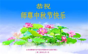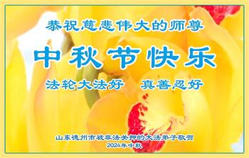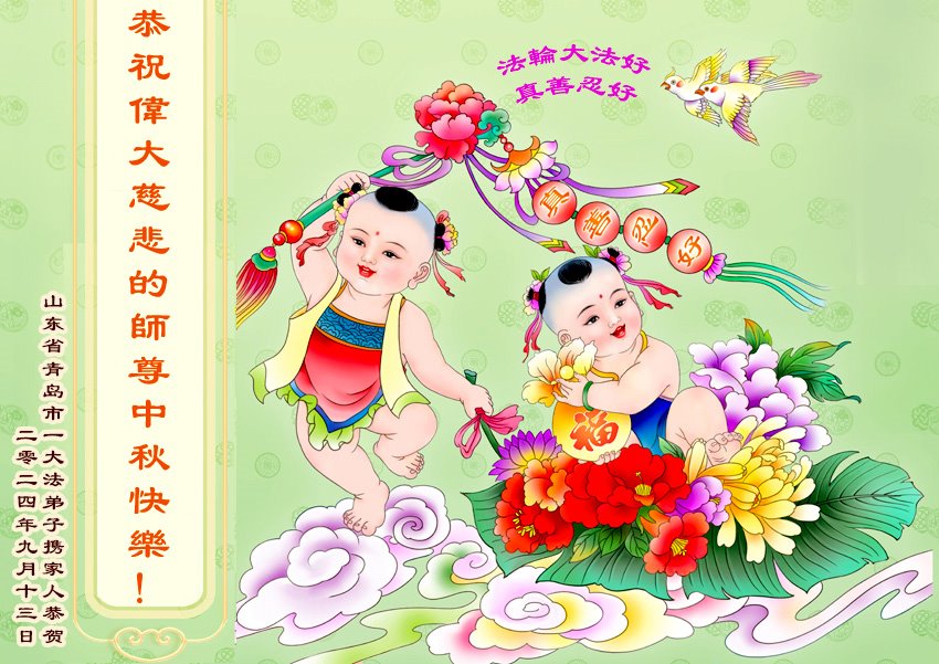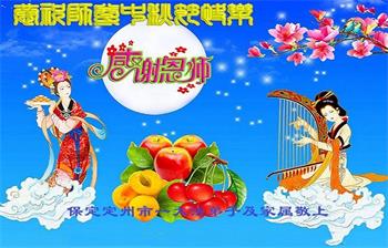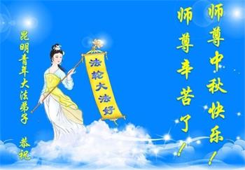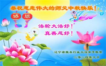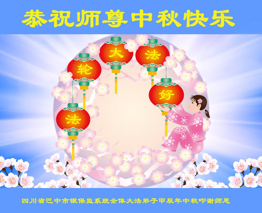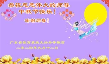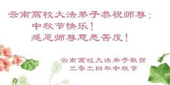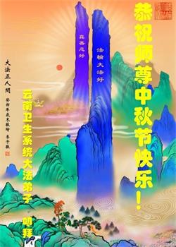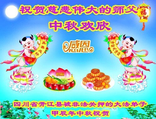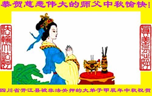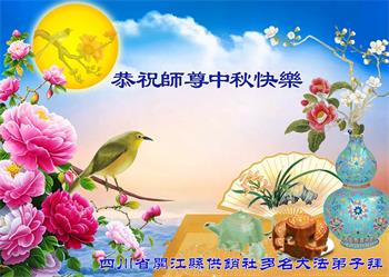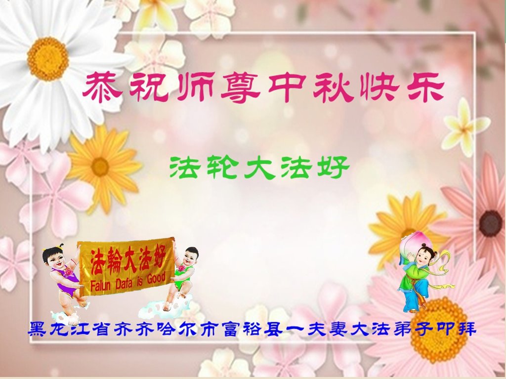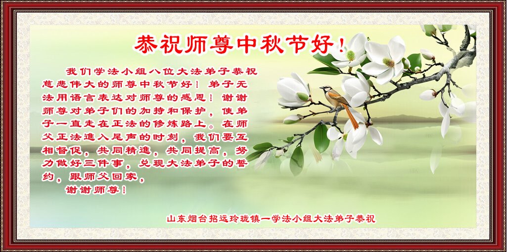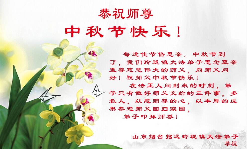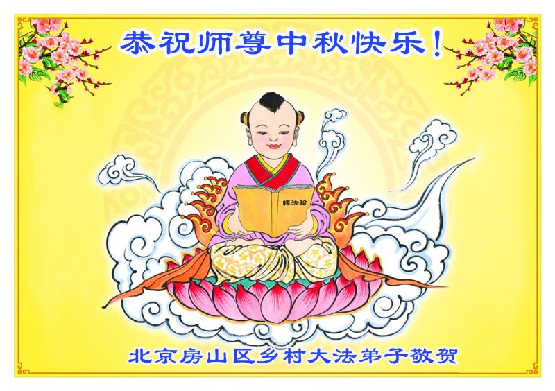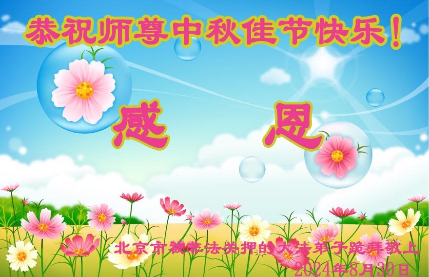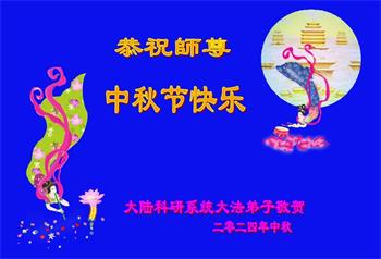 以下来自北京市、天津市、上海市、黑龙江省、吉林省长春市、吉林市、辽宁省沈阳市、新宾县、鞍山市、内蒙古自治区、宁夏回族自治区、山东省菏泽市、河北省石家庄市、河南省许昌市、三门峡市、湖北省武汉市、咸宁市、江苏省连云港市、浙江省、四川省自贡市、云南省等地的被非法关押大法弟子,以及被非法关押在黑龙江省泰来监狱、呼兰监狱、河南省新乡监狱、江苏省苏州监狱、云南省昆明监狱的大法弟子托亲友们发来敬献给慈悲伟大的师父的中秋贺词贺卡。