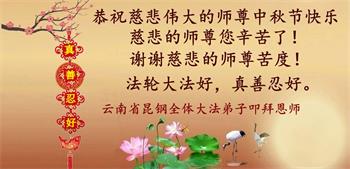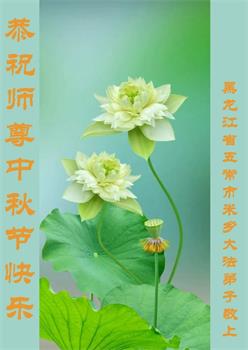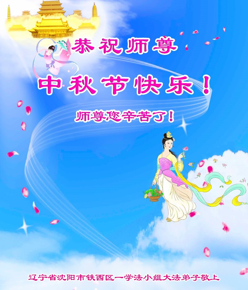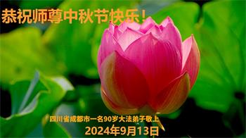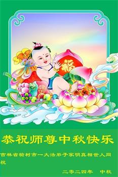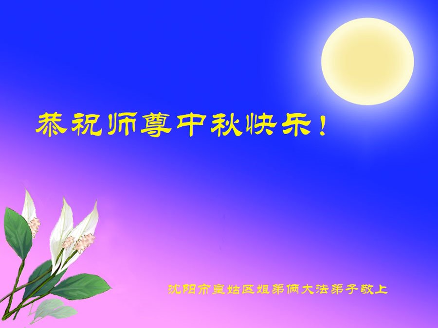 越修炼到最后,越想念师尊,恭祝师尊中秋节快乐!我每天都听师父的话,忙着打电话讲真相,多年来白天打营救电话,晚间劝三退,每天乐呵呵地,和同修配合的非常好。感激师父的加持!弟子今后要救度更多众生,完成师父赋予的历史使命,高高兴兴地跟师父回家。