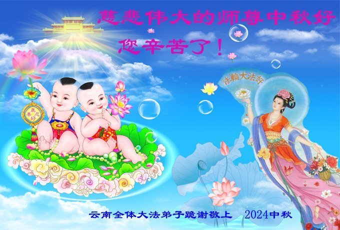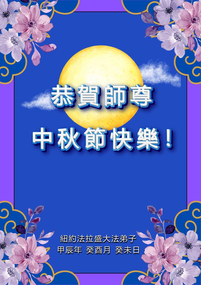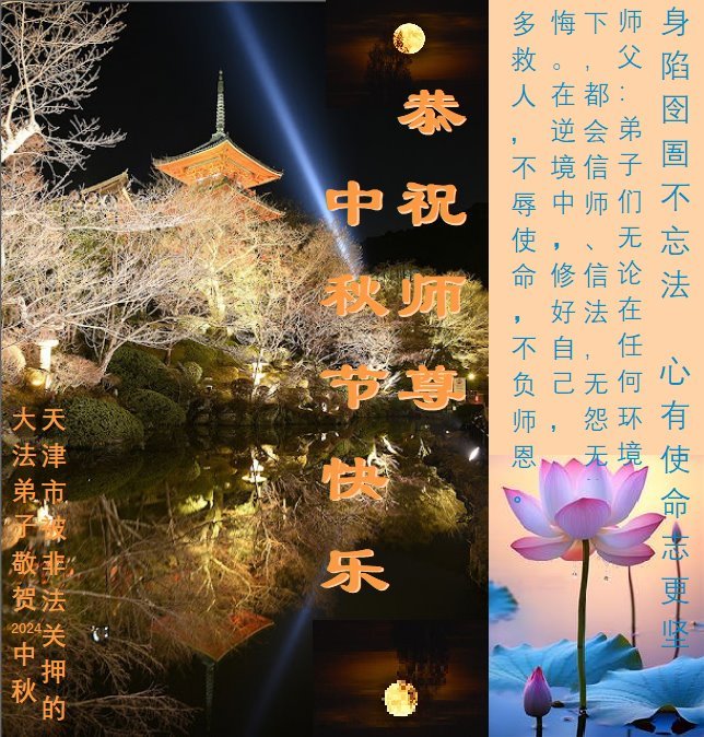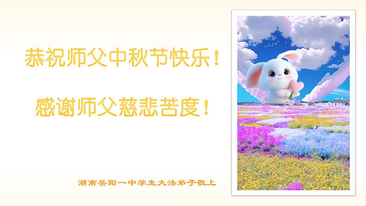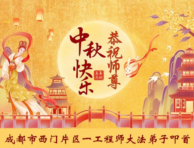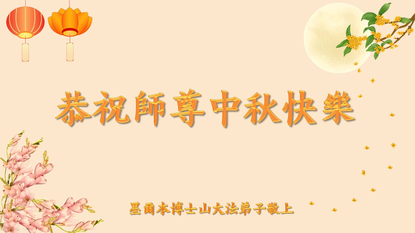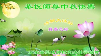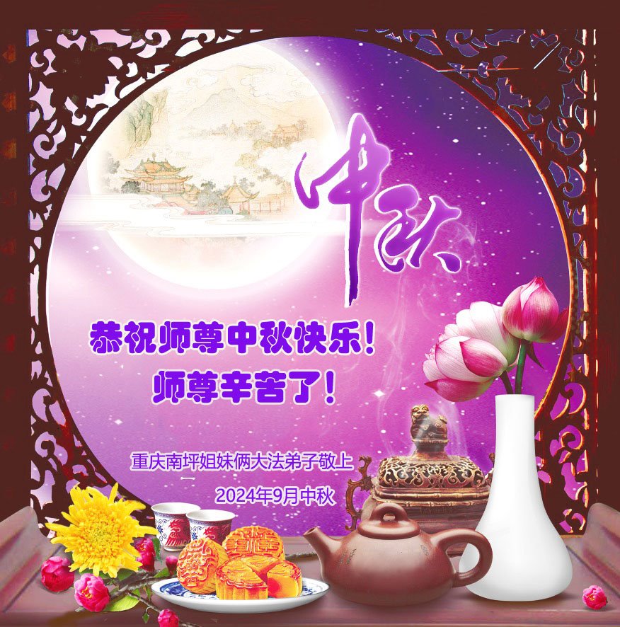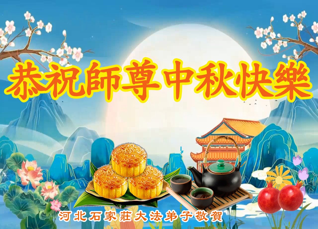 弟子恭祝师尊中秋佳节快乐!我们虽然正处在魔难之中,但我们信师信法的心坚如磐石。我们一定向内找放下人心、修去执著,正念解体邪恶。讲真相救度公检法人员,做我们该做好的事。实修自己,兑现誓约,跟师父回归自己真正的家园。