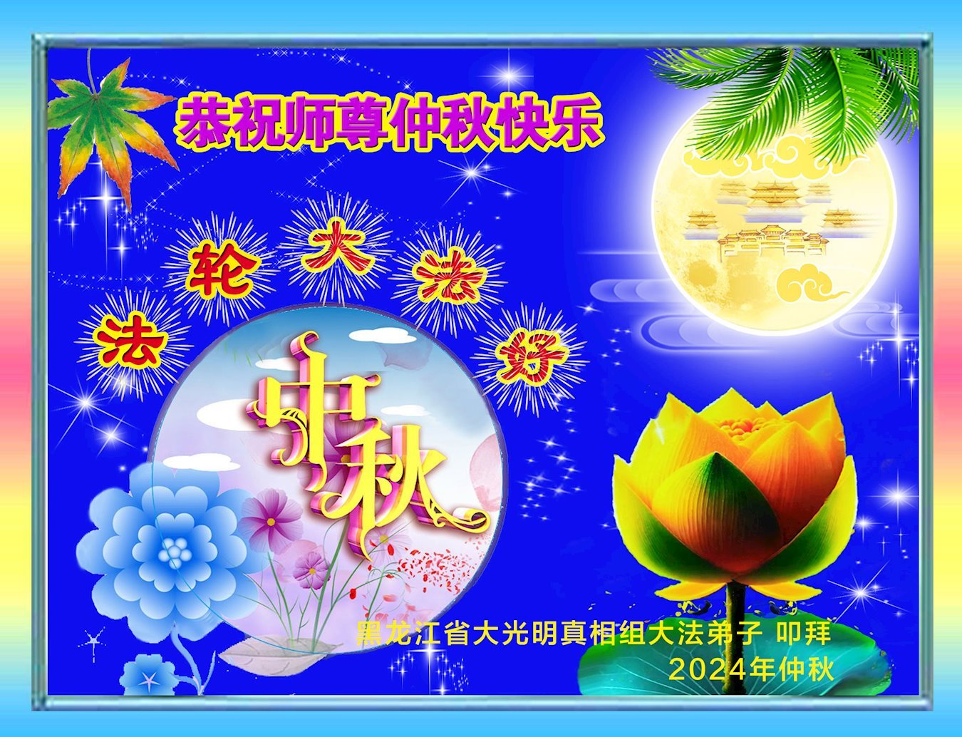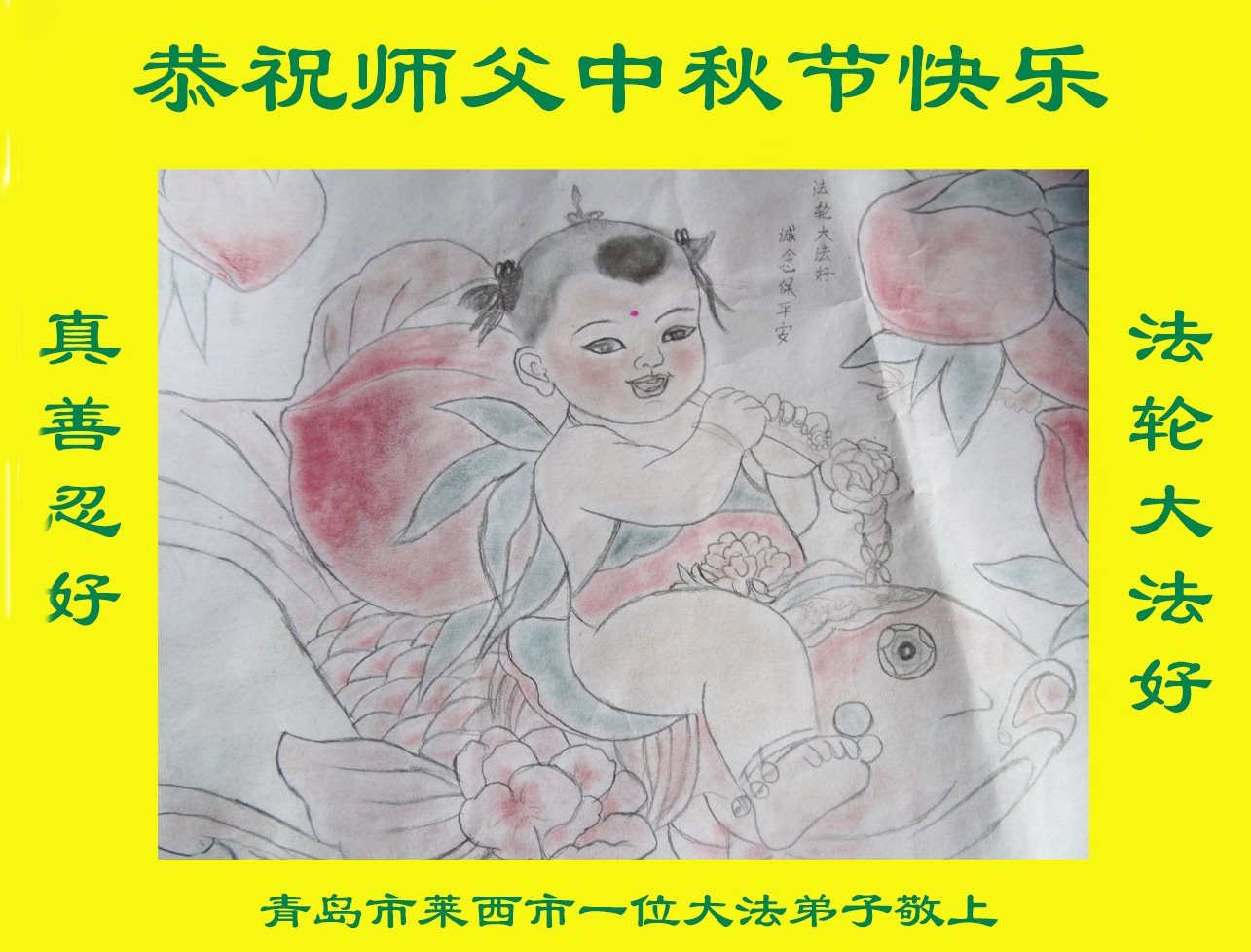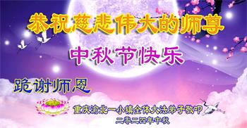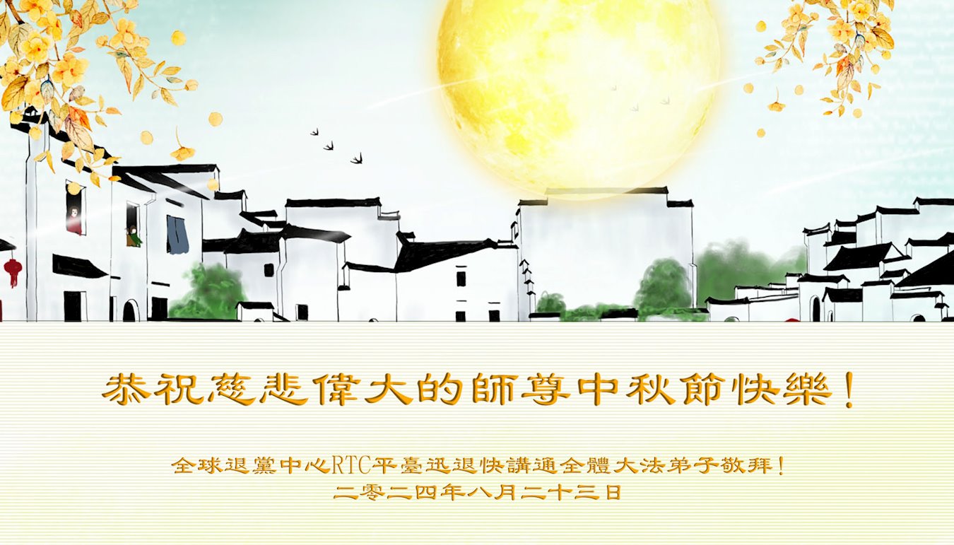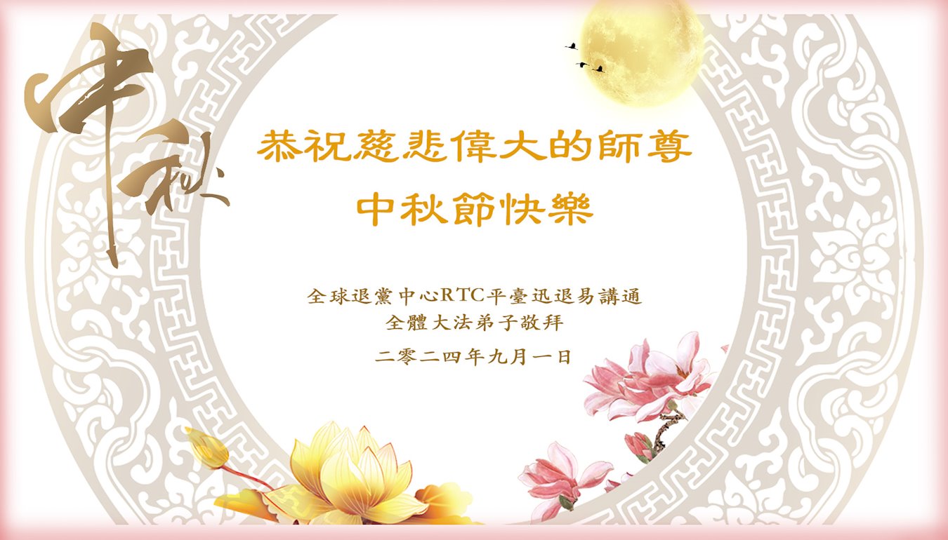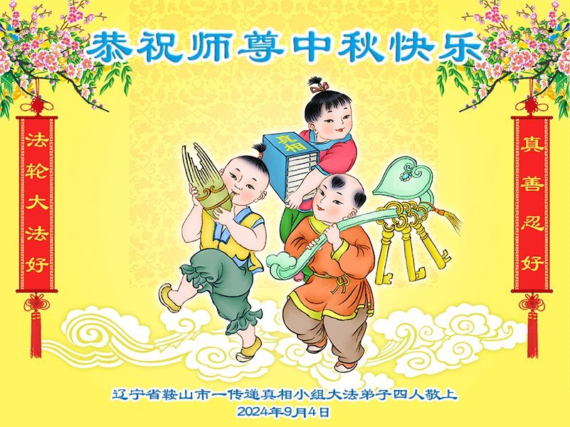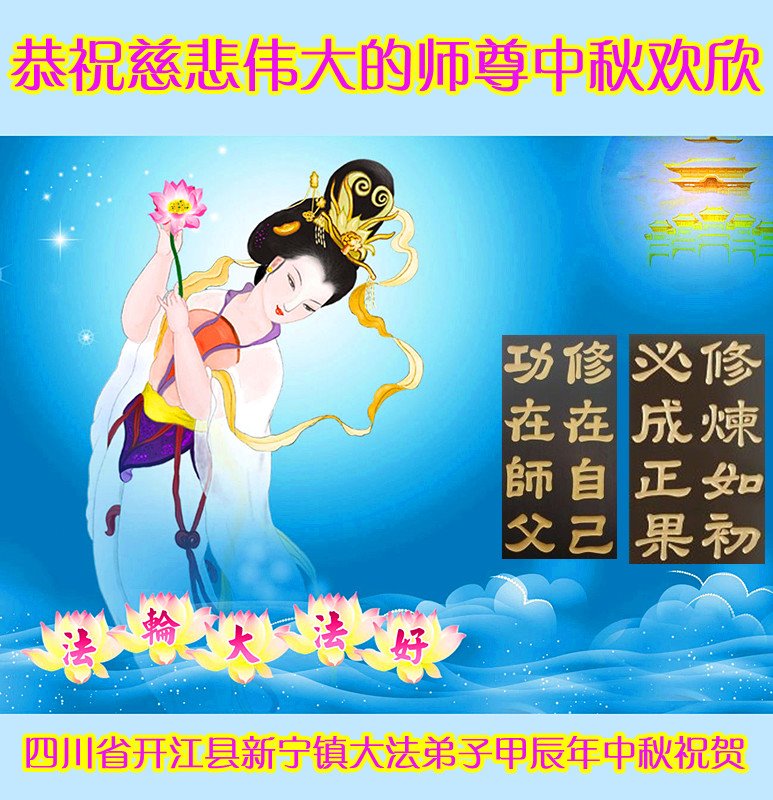 弟子恭祝师尊中秋佳节快乐!我们虽然正处在魔难之中,但我们信师信法的心坚如磐石。我们一定向内找放下人心、修去执著,正念解体邪恶。讲真相救度公检法人员,做我们该做好的事。实修自己,兑现誓约,跟师父回归自己真正的家园。