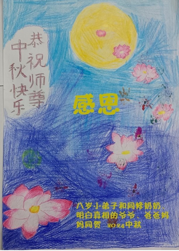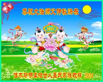 中秋节是合家团圆的日子,我们虽无法与家人团聚,心却是连在一起的。感谢师尊对我们修炼的加持!弟子坚定走正修炼的路。