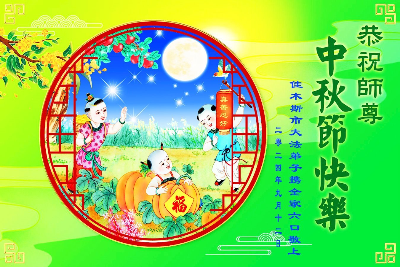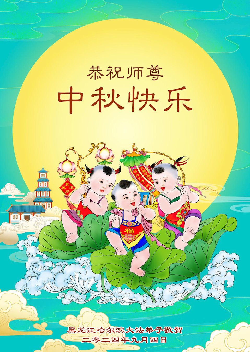 恭祝亲爱的、伟大的师父中秋节快乐!