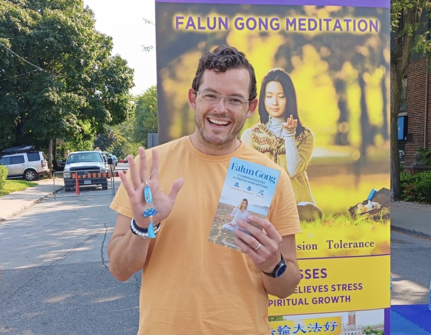 于是,学员邀请他一起学习炼功。丹尼尔学完之后,分享了自己的体会:“我了解到整套功法时长两小时,虽然我只是简单学习了一下,但我感觉非常好。我确实感觉到能量在流动,虽然我并不知道具体是怎么回事,但我确实能感受到一些东西。”