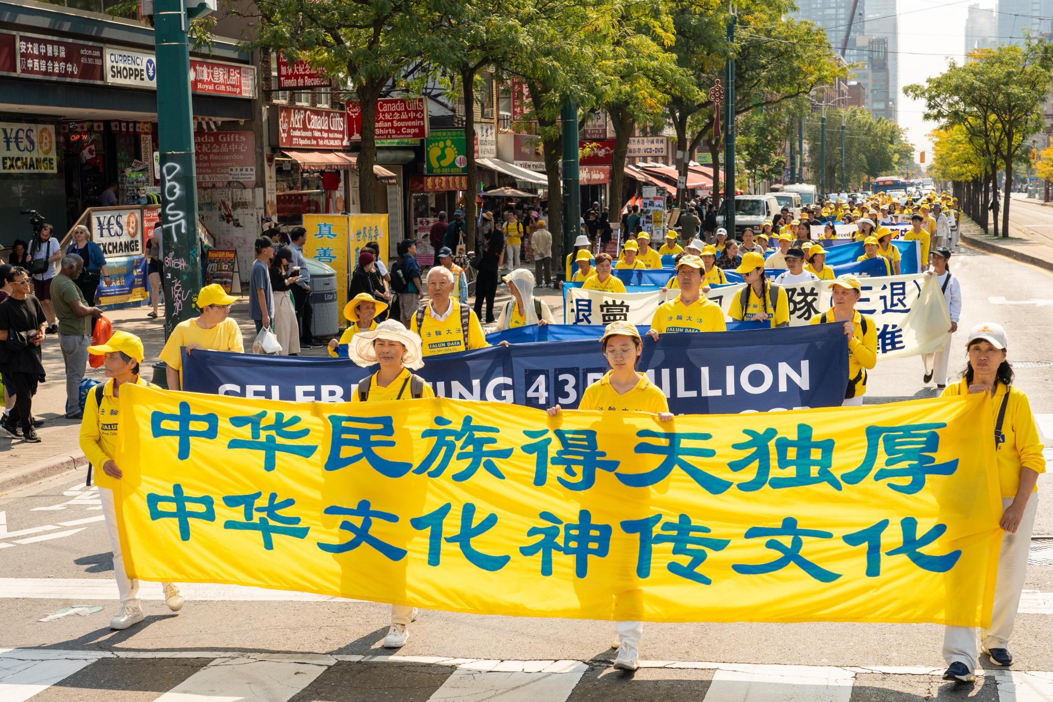 浩浩荡荡的游行队伍以及法轮功学员们的讲解也让很多现场华人明白了真相,选择“三退”。