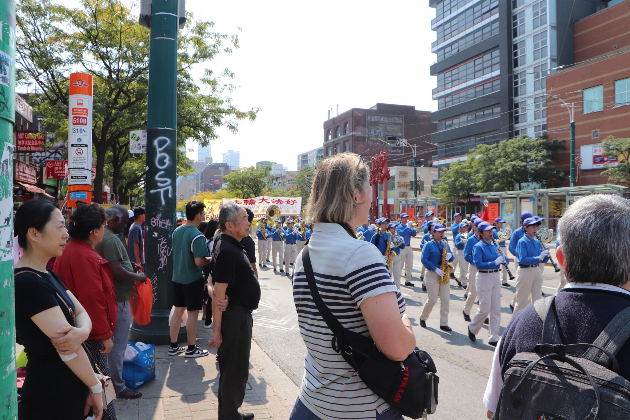 游行队伍所过之处无不吸引民众观看,市民纷纷掏出手机录像、拍照。有人向学员询问法轮功学功点地址;有人一直跟着游行队伍前行;还有华人在看到游行、以及听完学员讲述的大法真相后,选择了“三退”(退出中共党、团、队组织)。据悉,当天游行现场就有近五十人做了“三退”。