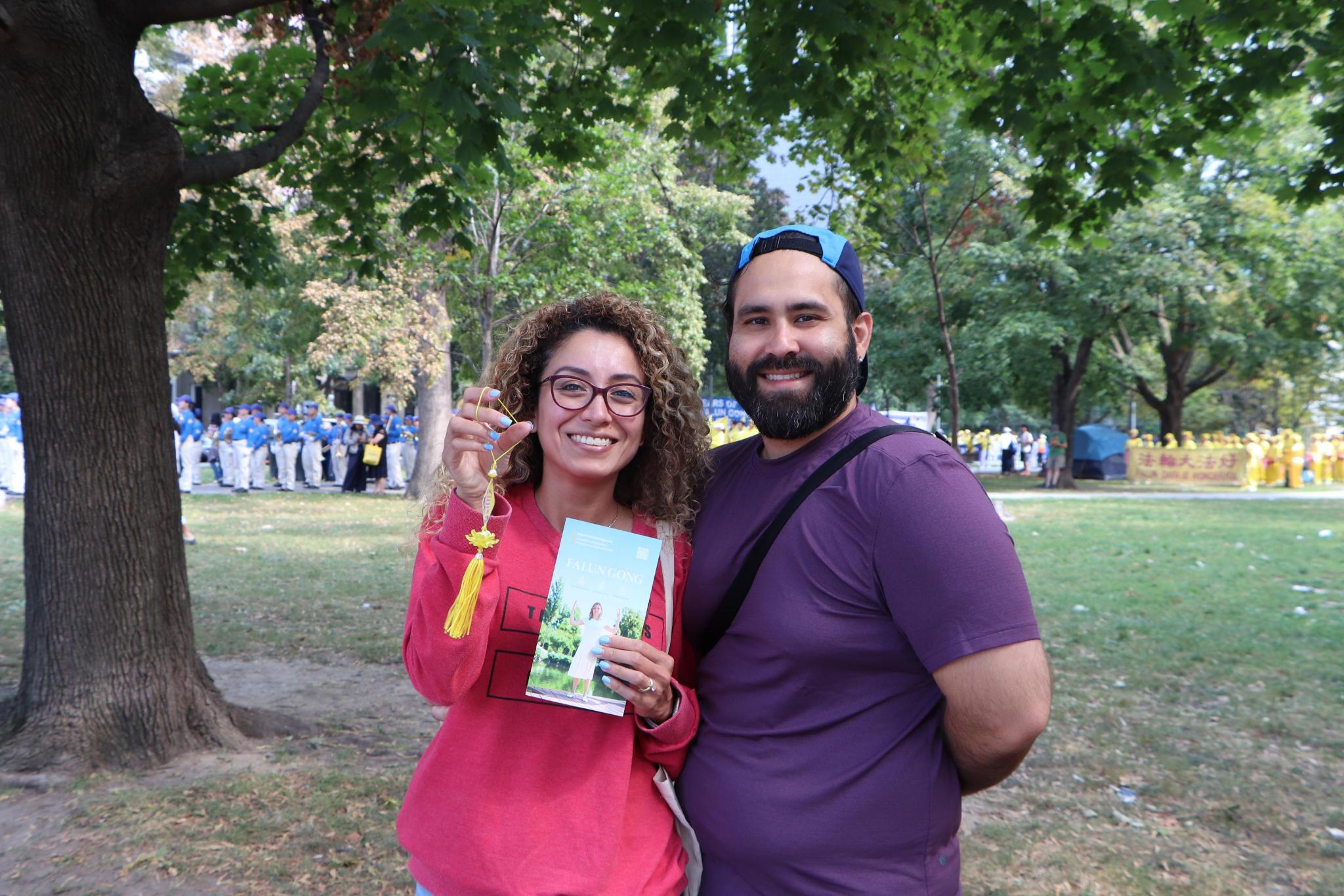 梅利莎(Melissa)是一名咨询师,她和家人被游行队伍所吸引,并驻足观看。学员向他们递上传单,并介绍法轮大法。在听到可以网上免费学习功法后,梅丽莎家人表示回去会进一步了解。