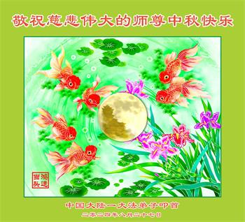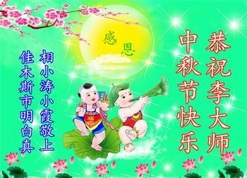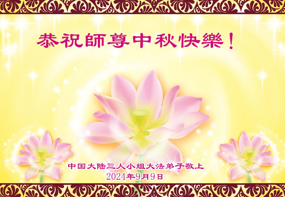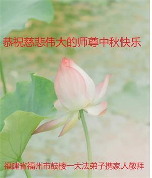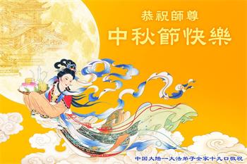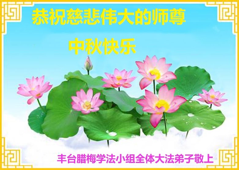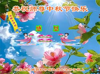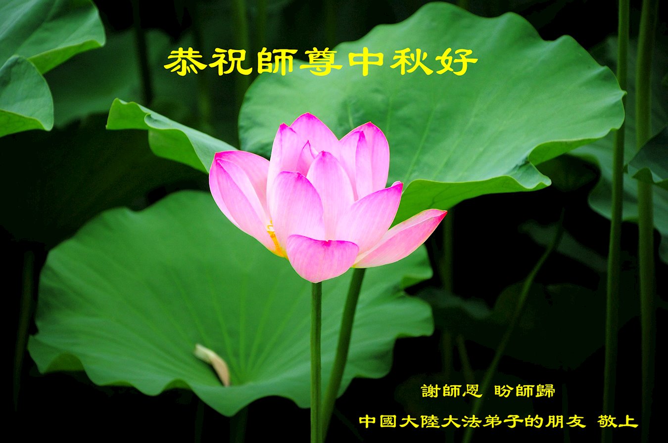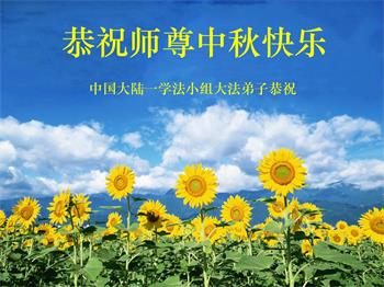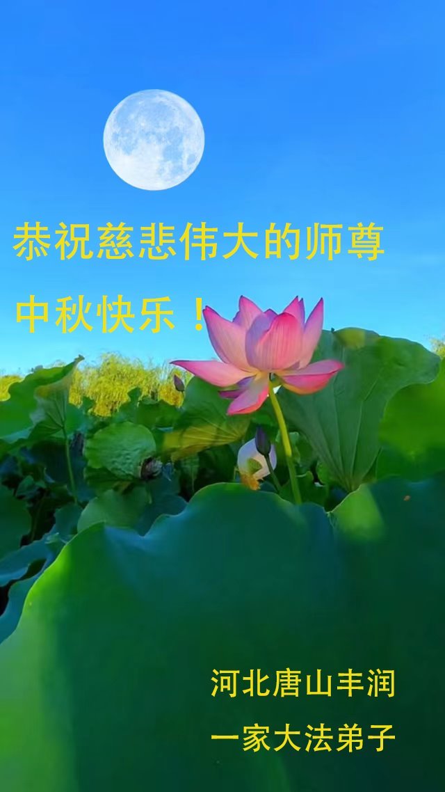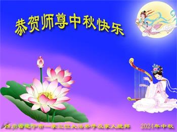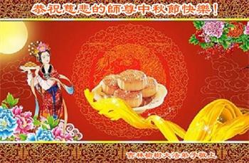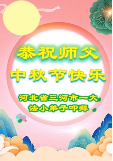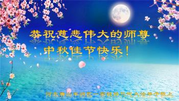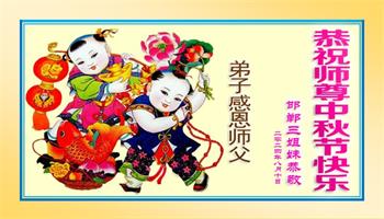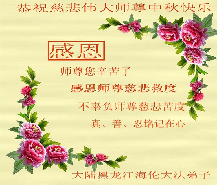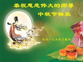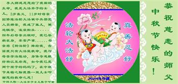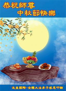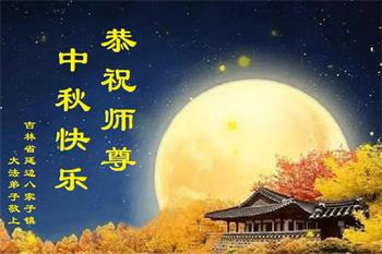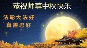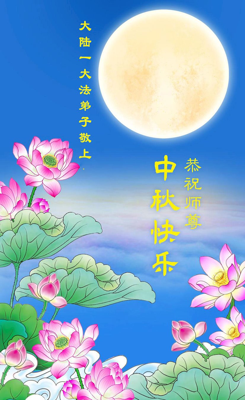 慈悲伟大的师尊好:我们在大陆都曾被邪恶残酷迫害,但我们不仅无悔,且深知能做师父的弟子是我们最大的荣耀与幸福。随师正法、救度众生是我们此生的意义与重任。弟子一定尽心、尽力去做,不负师尊的期望,不负众生的盼望。遥祝慈悲伟大的师尊中秋快乐!盼望师尊早日回大陆。