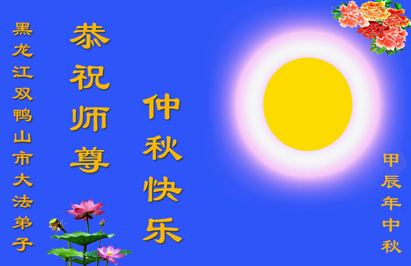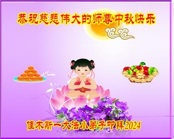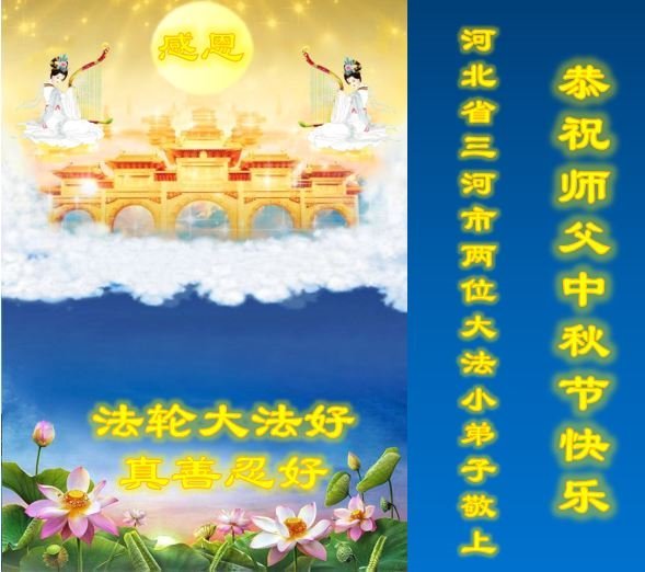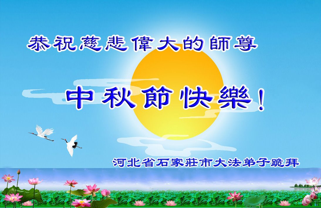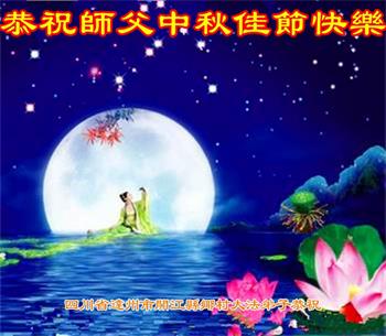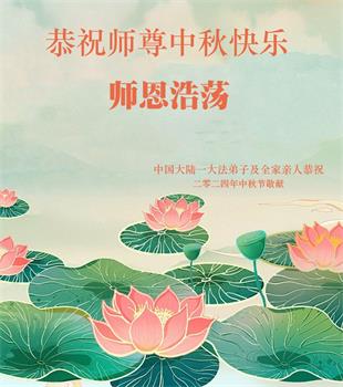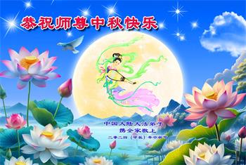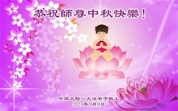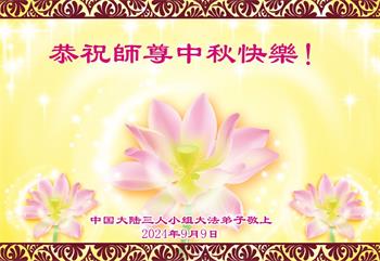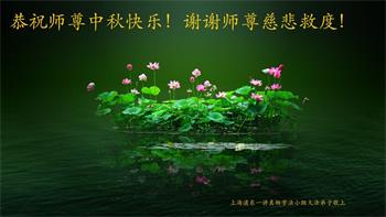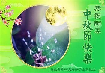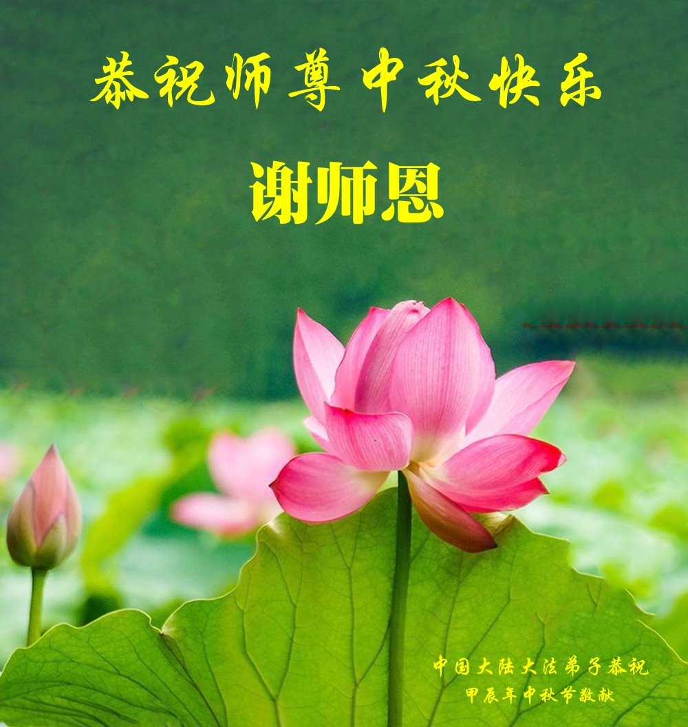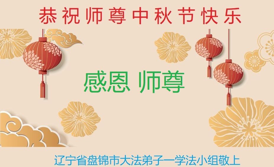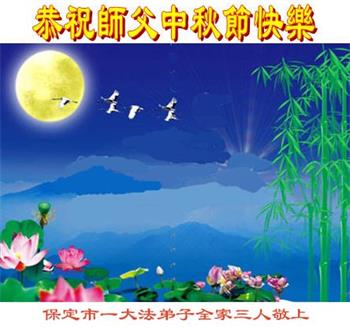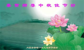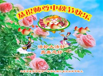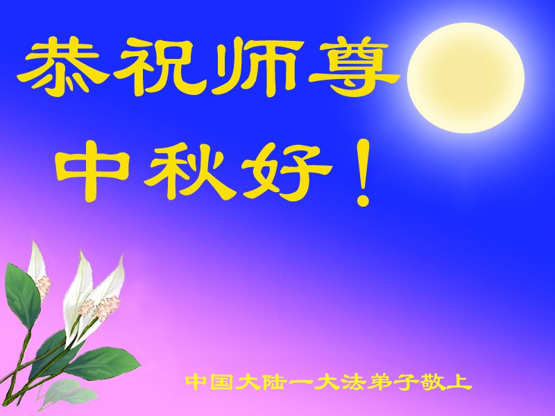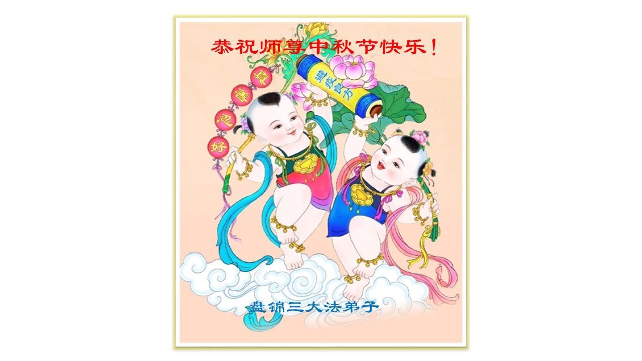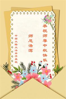 慈悲伟大的师尊好:我们在大陆都曾被邪恶残酷迫害,但我们不仅无悔,且深知能做师父的弟子是我们最大的荣耀与幸福。随师正法、救度众生是我们此生的意义与重任。弟子一定尽心、尽力去做,不负师尊的期望,不负众生的盼望。遥祝慈悲伟大的师尊中秋快乐!盼望师尊早日回大陆。
