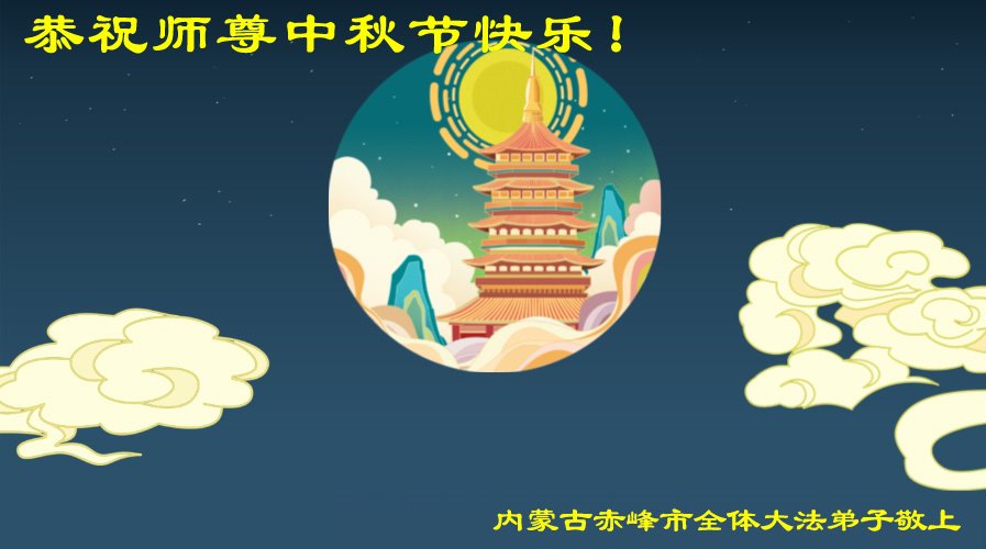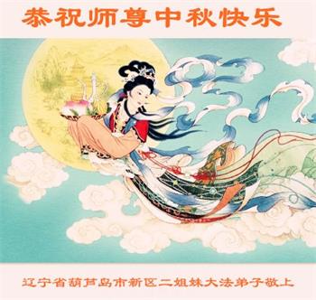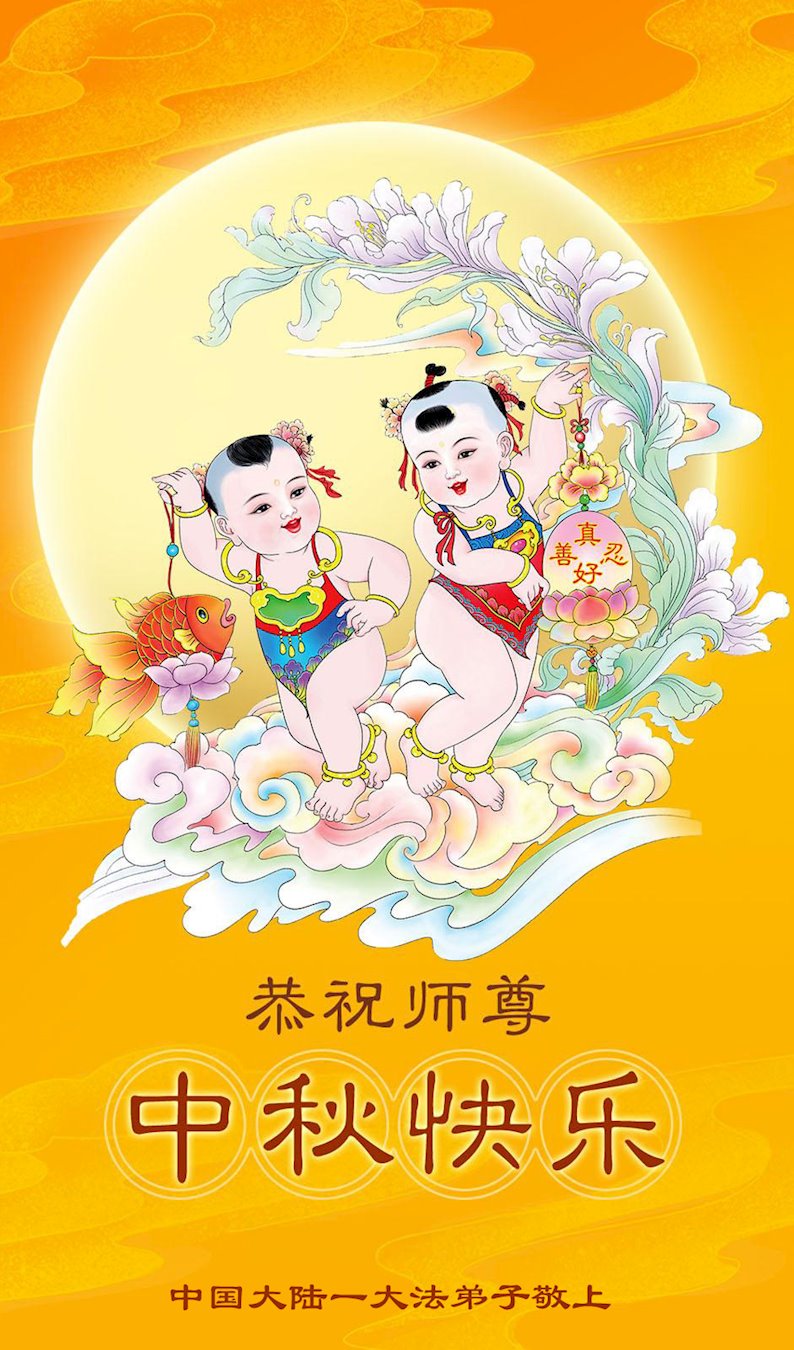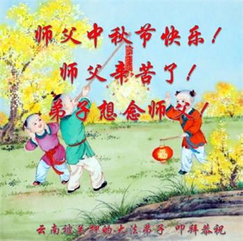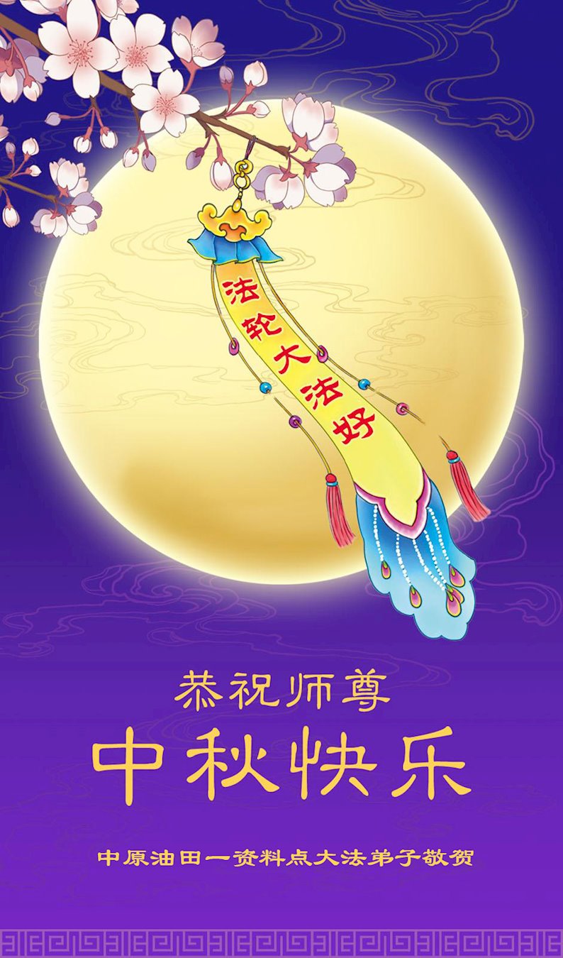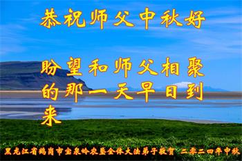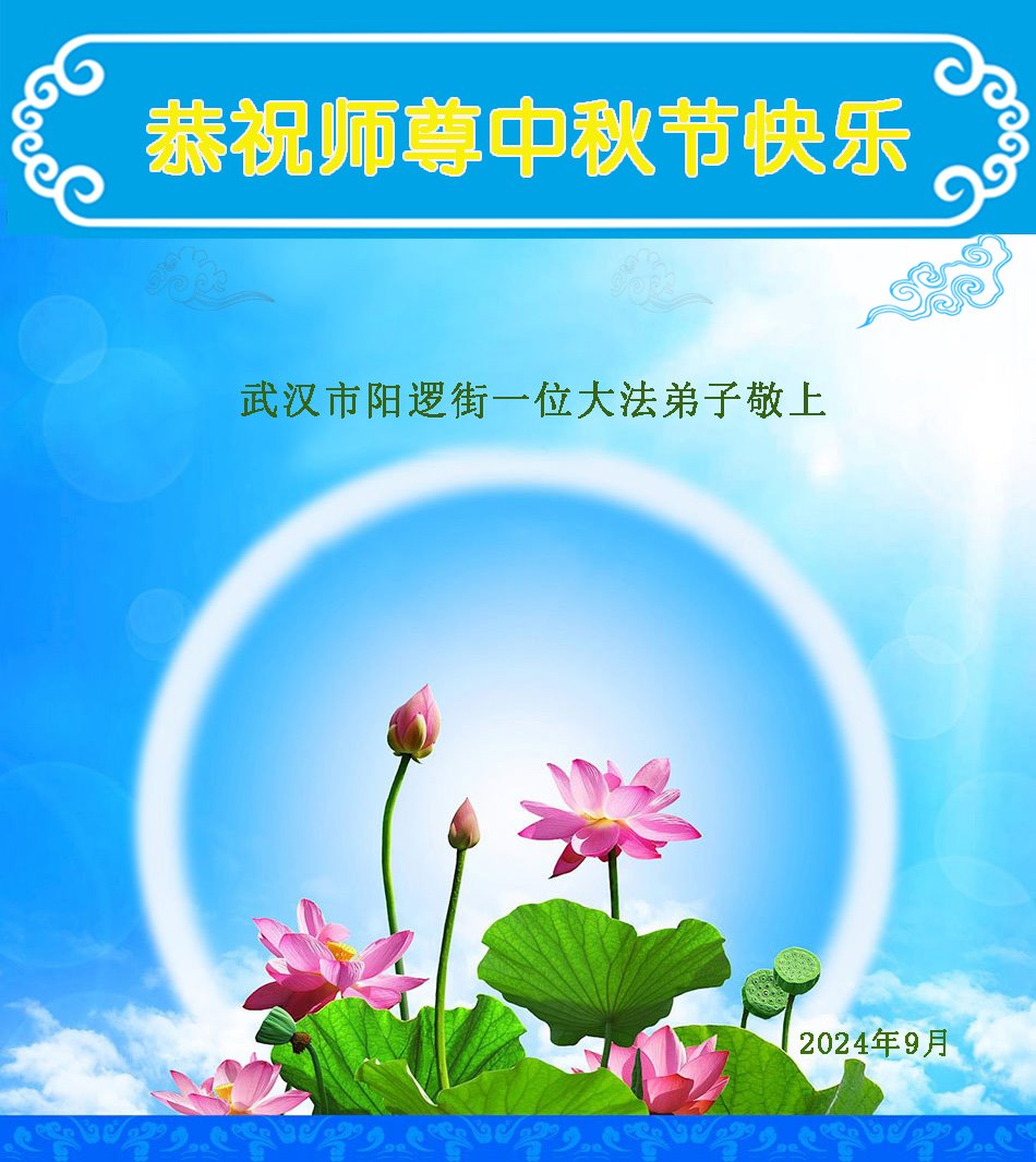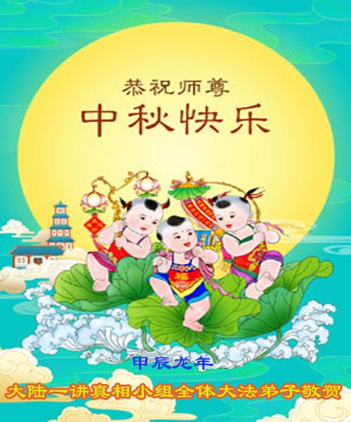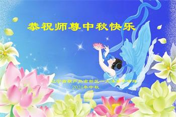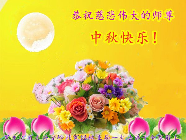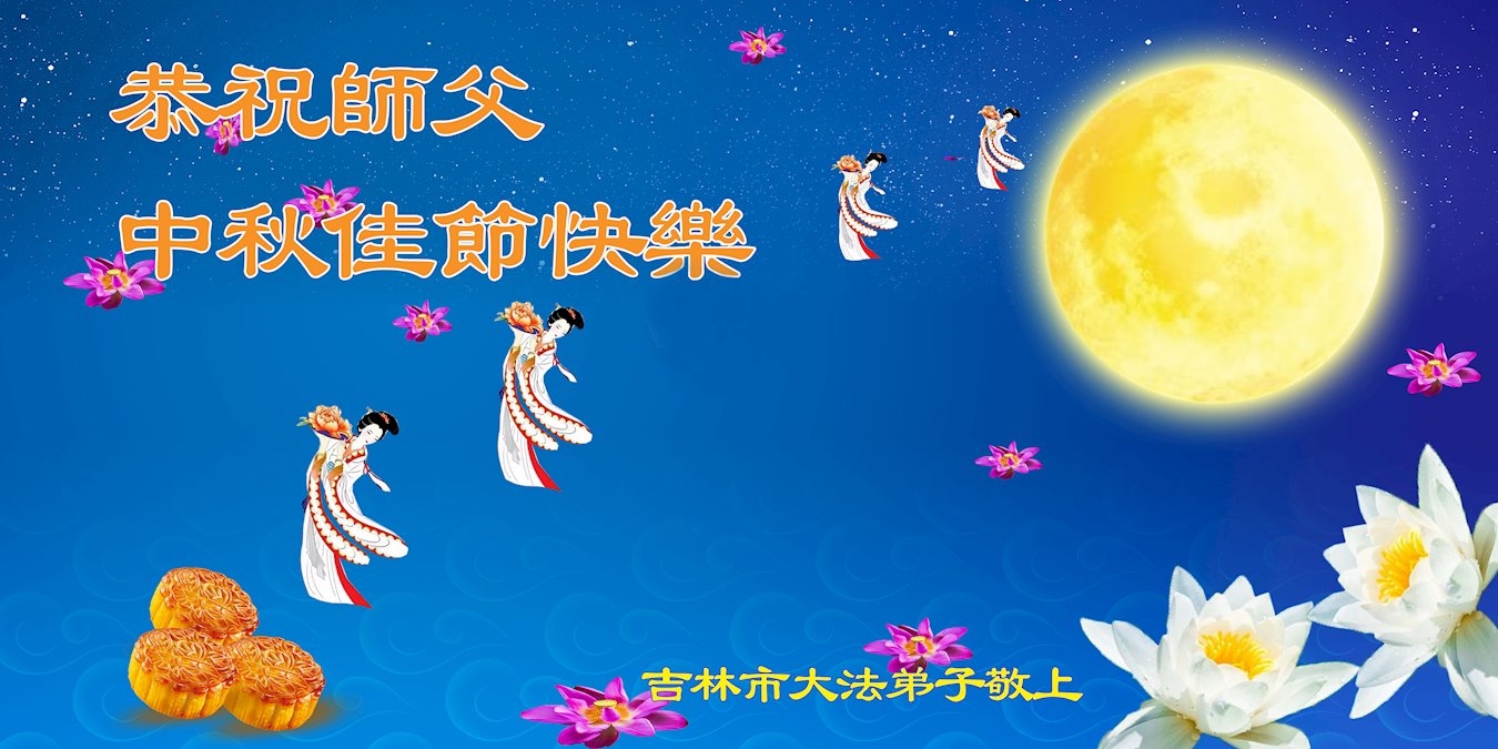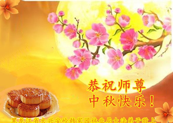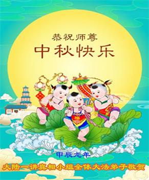 慈悲伟大的师尊好:我们在大陆都曾被邪恶残酷迫害,但我们不仅无悔,且深知能做师父的弟子是我们最大的荣耀与幸福。随师正法、救度众生是我们此生的意义与重任。弟子一定尽心、尽力去做,不负师尊的期望,不负众生的盼望。遥祝慈悲伟大的师尊中秋快乐!盼望师尊早日回大陆。