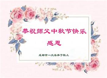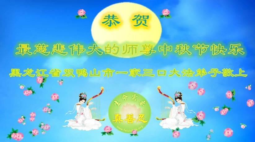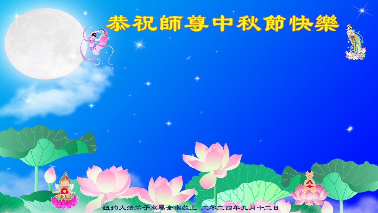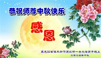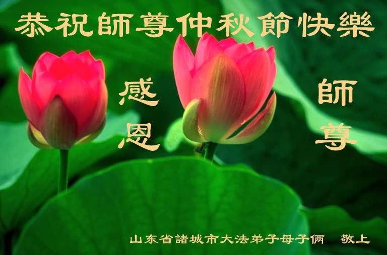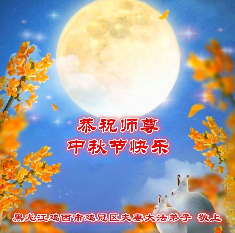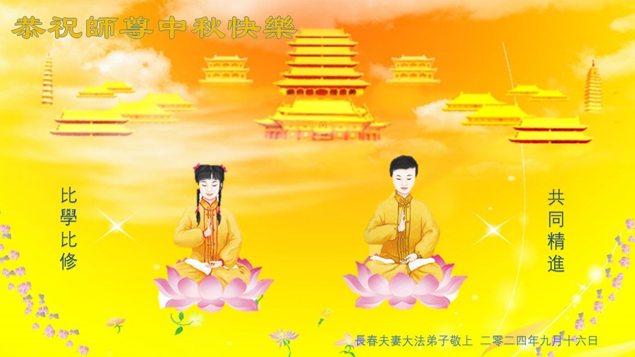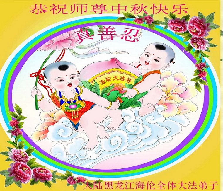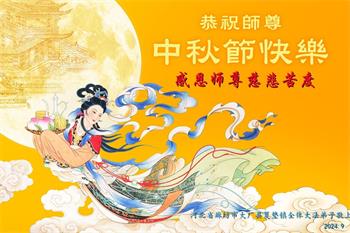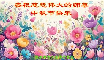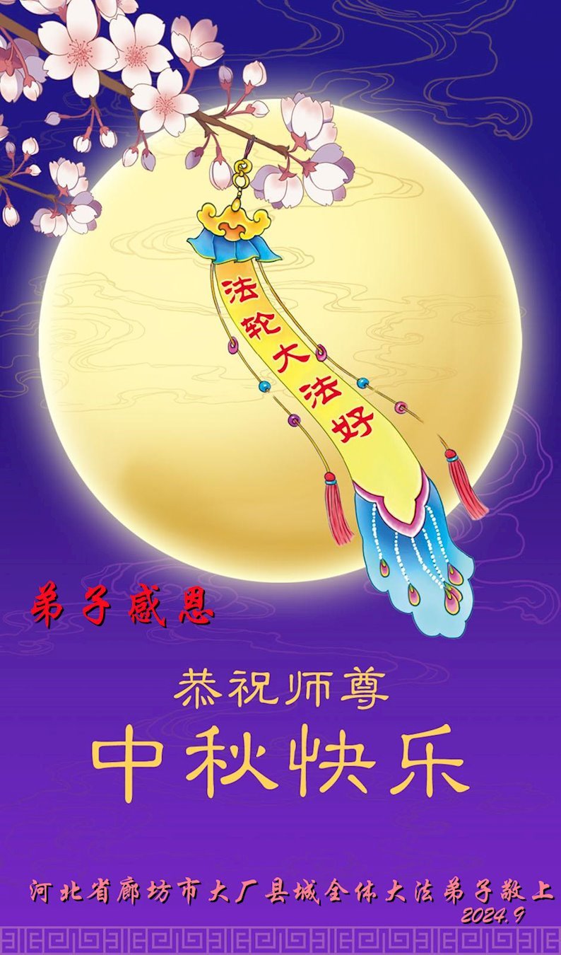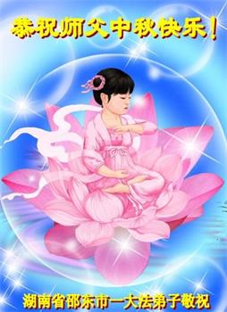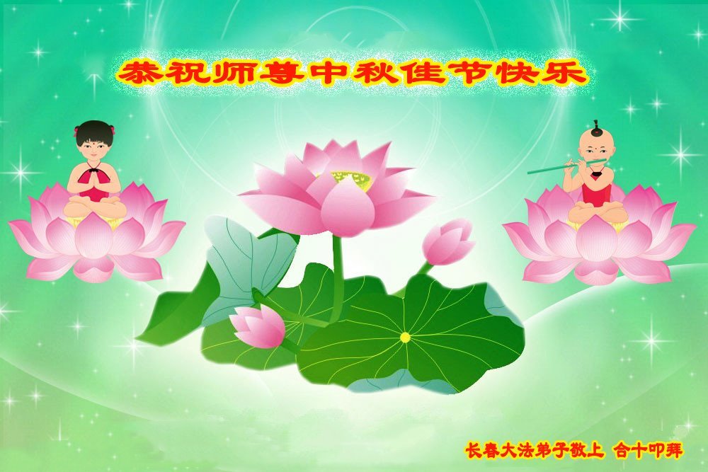 慈悲伟大的师尊好:我们在大陆都曾被邪恶残酷迫害,但我们不仅无悔,且深知能做师父的弟子是我们最大的荣耀与幸福。随师正法、救度众生是我们此生的意义与重任。弟子一定尽心、尽力去做,不负师尊的期望,不负众生的盼望。遥祝慈悲伟大的师尊中秋快乐!盼望师尊早日回大陆。