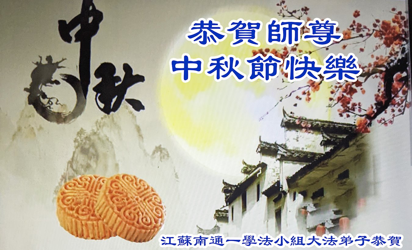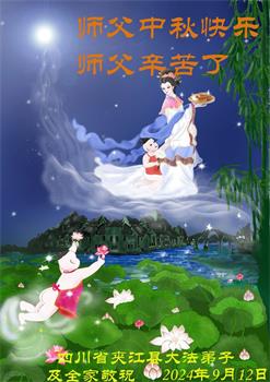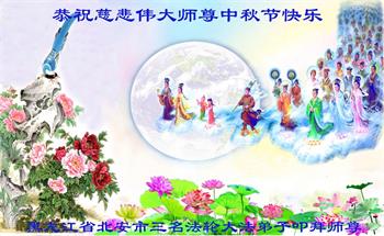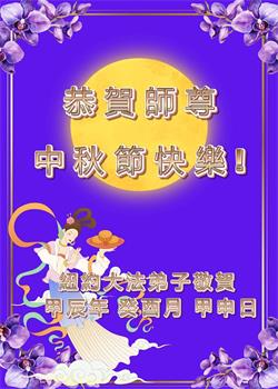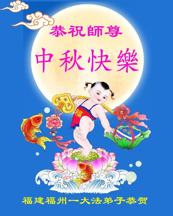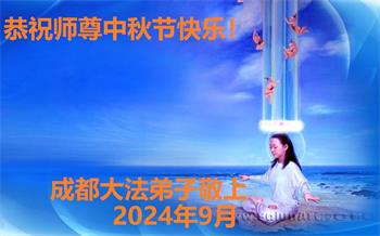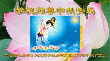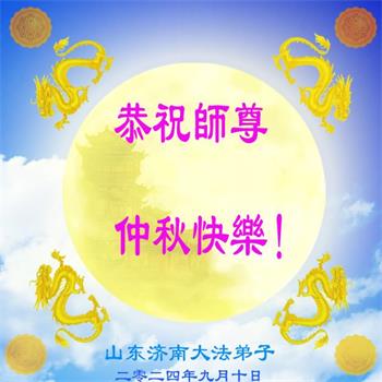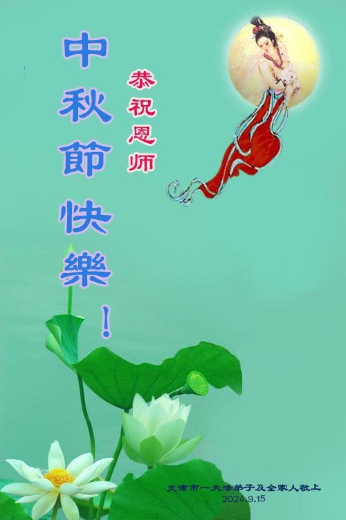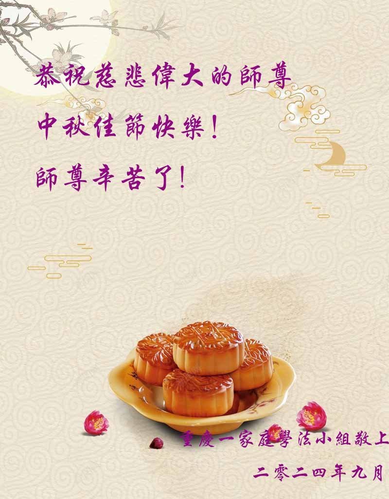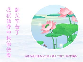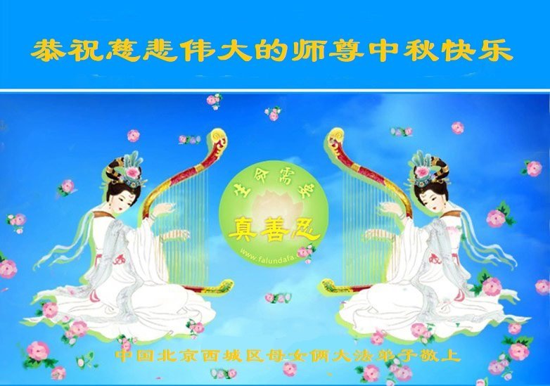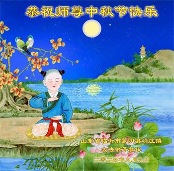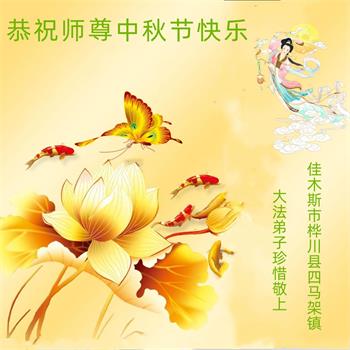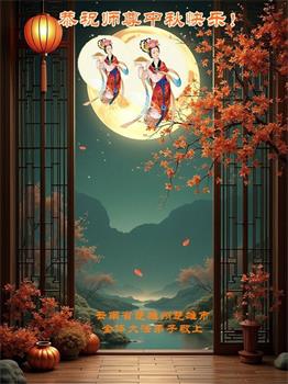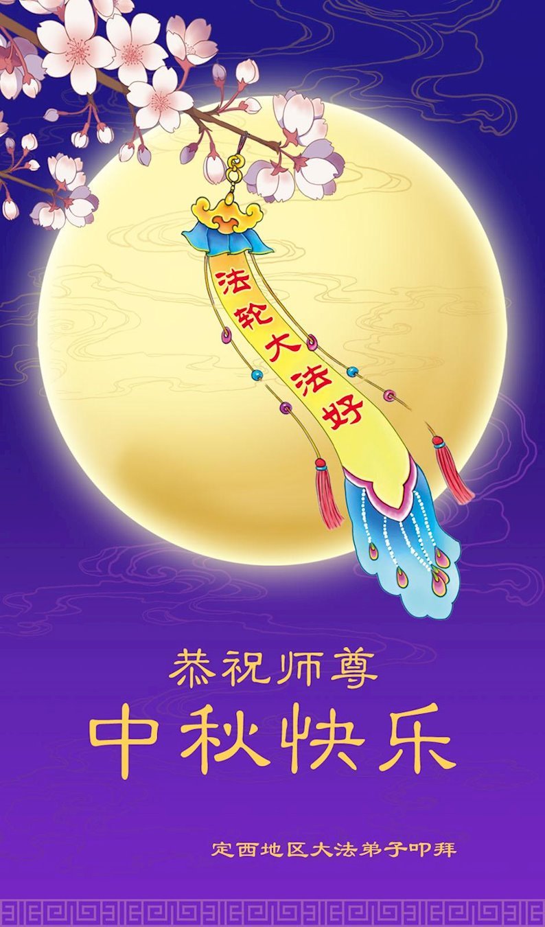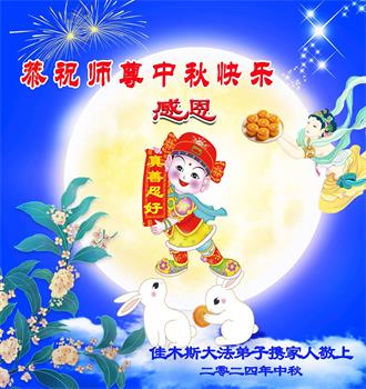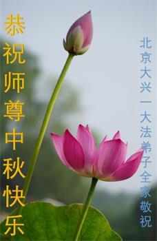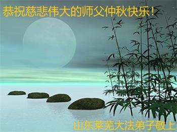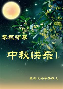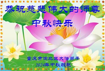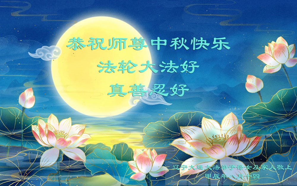 慈悲伟大的师尊好:我们在大陆都曾被邪恶残酷迫害,但我们不仅无悔,且深知能做师父的弟子是我们最大的荣耀与幸福。随师正法、救度众生是我们此生的意义与重任。弟子一定尽心、尽力去做,不负师尊的期望,不负众生的盼望。遥祝慈悲伟大的师尊中秋快乐!盼望师尊早日回大陆。
