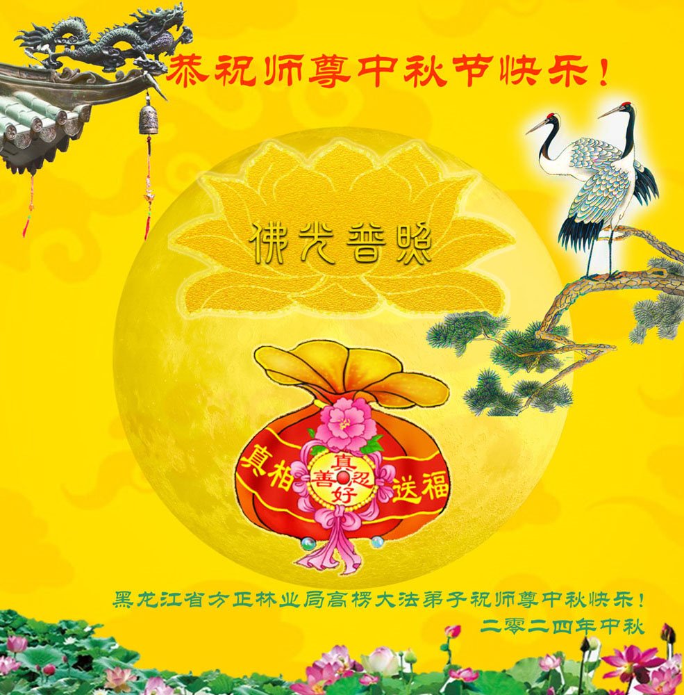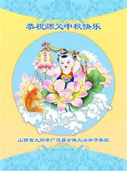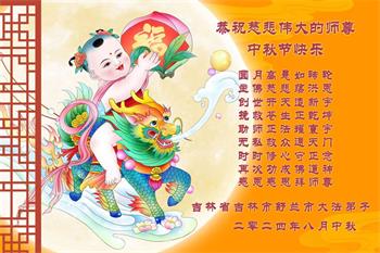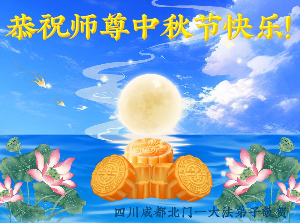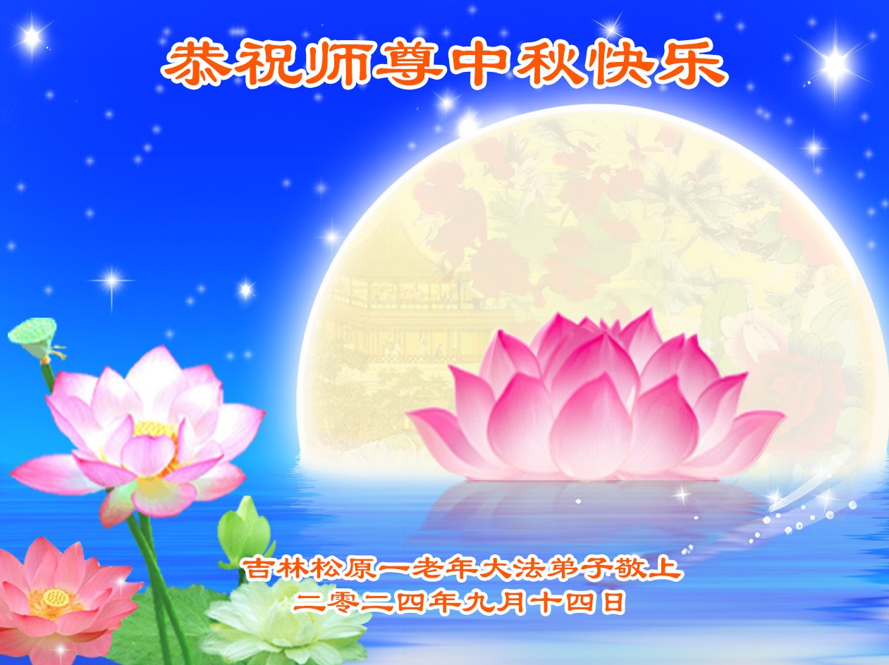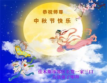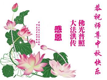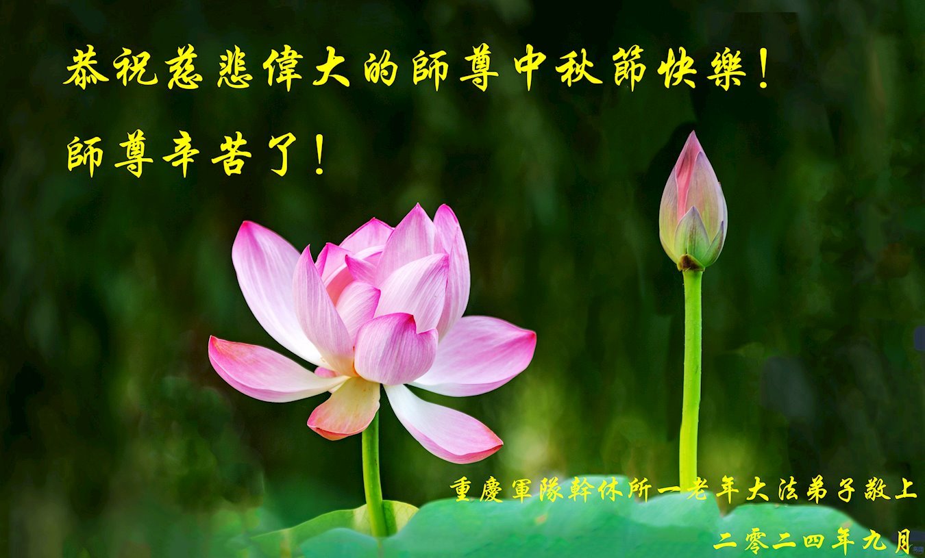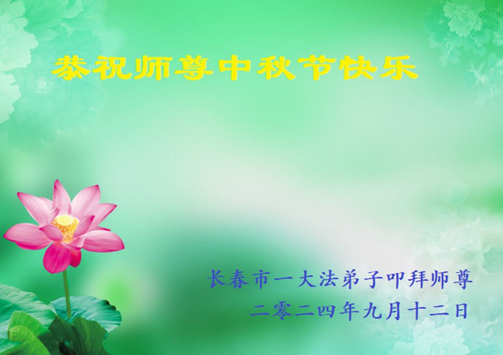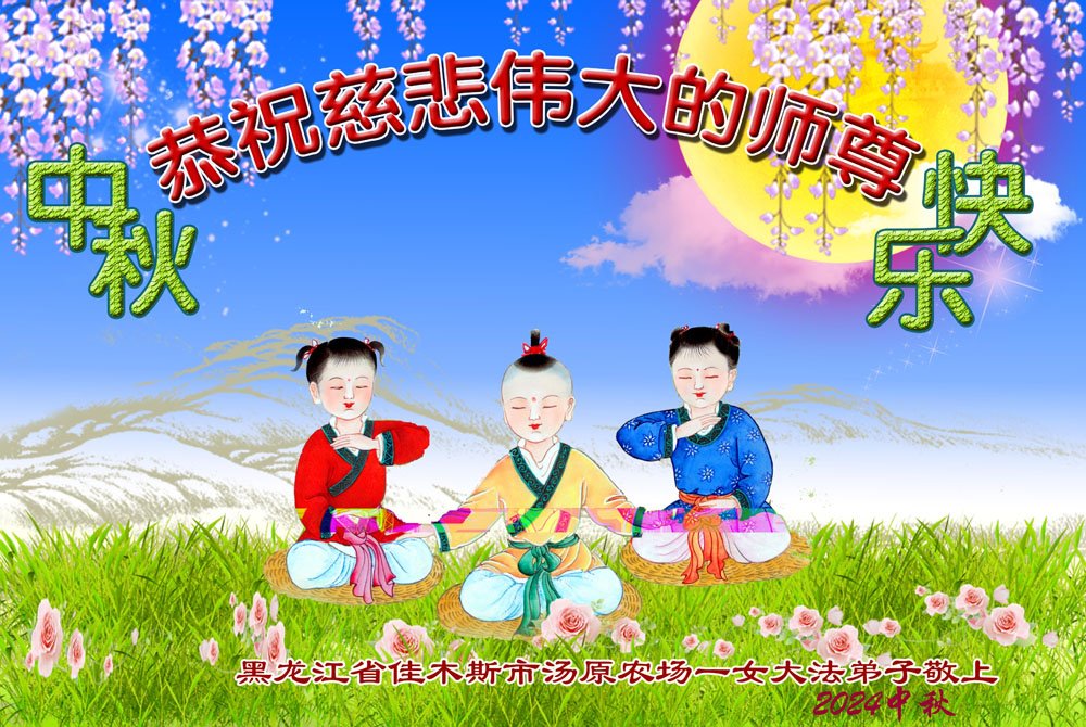 慈悲伟大的师尊好:我们在大陆都曾被邪恶残酷迫害,但我们不仅无悔,且深知能做师父的弟子是我们最大的荣耀与幸福。随师正法、救度众生是我们此生的意义与重任。弟子一定尽心、尽力去做,不负师尊的期望,不负众生的盼望。遥祝慈悲伟大的师尊中秋快乐!盼望师尊早日回大陆。