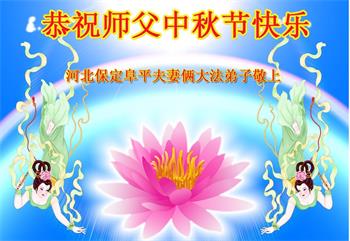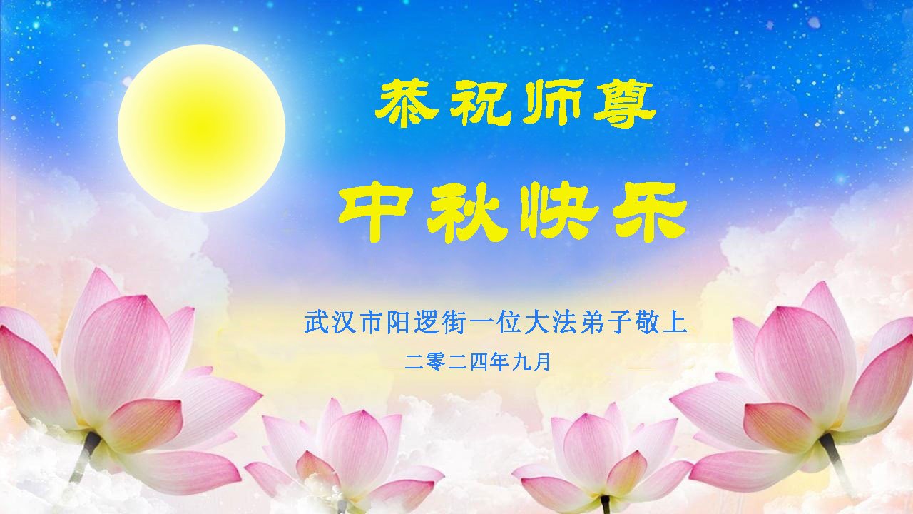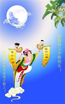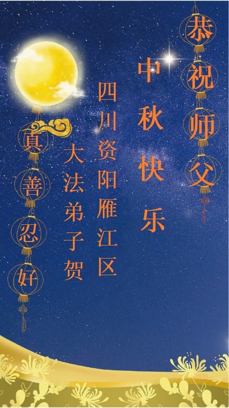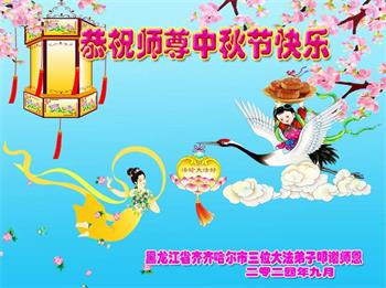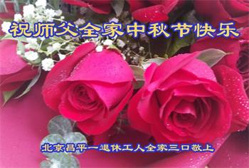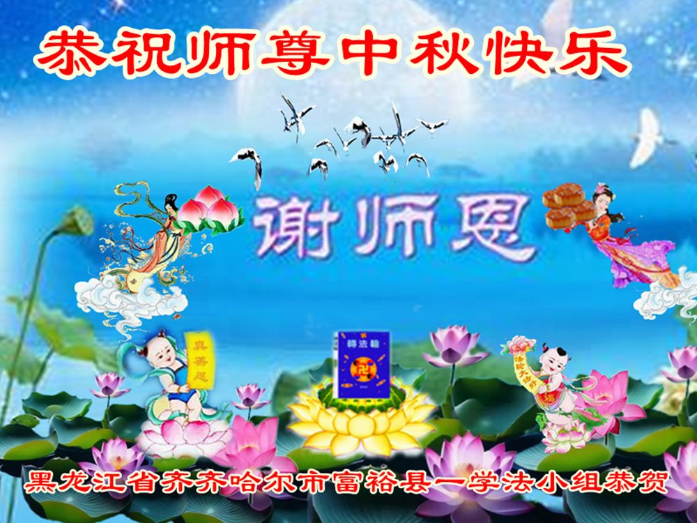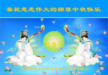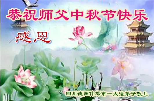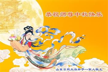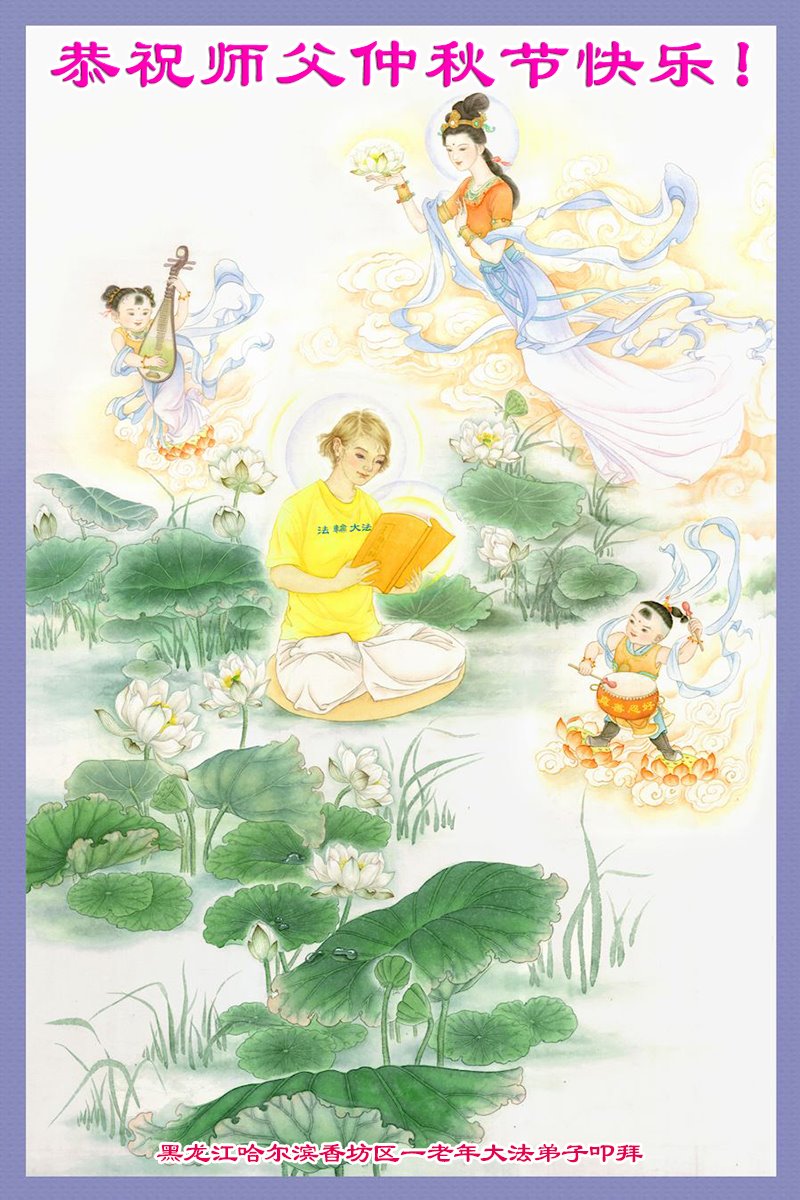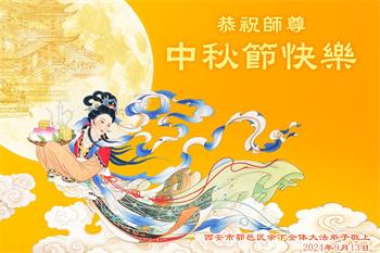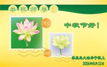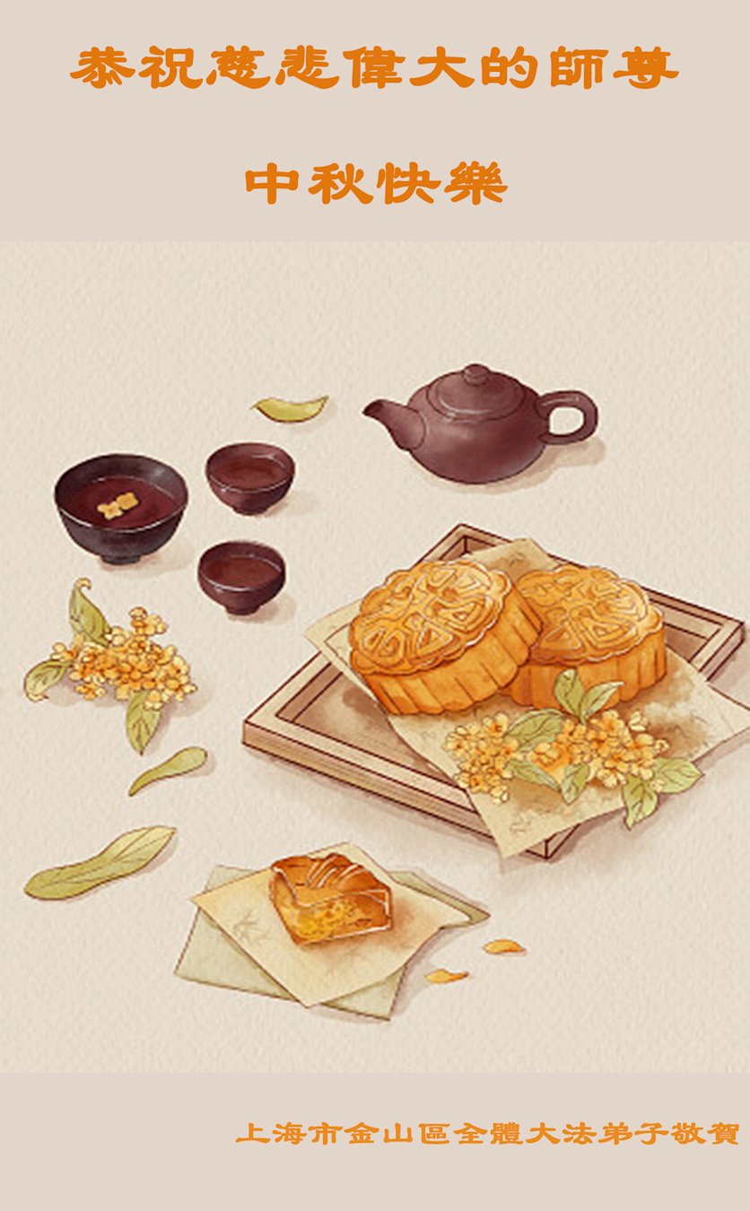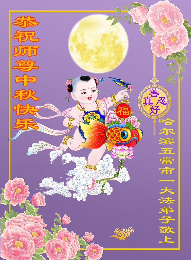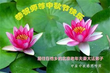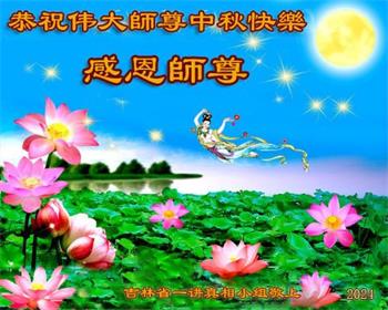慈悲伟大的师尊好:我们在大陆都曾被邪恶残酷迫害,但我们不仅无悔,且深知能做师父的弟子是我们最大的荣耀与幸福。随师正法、救度众生是我们此生的意义与重任。弟子一定尽心、尽力去做,不负师尊的期望,不负众生的盼望。遥祝慈悲伟大的师尊中秋快乐!盼望师尊早日回大陆。