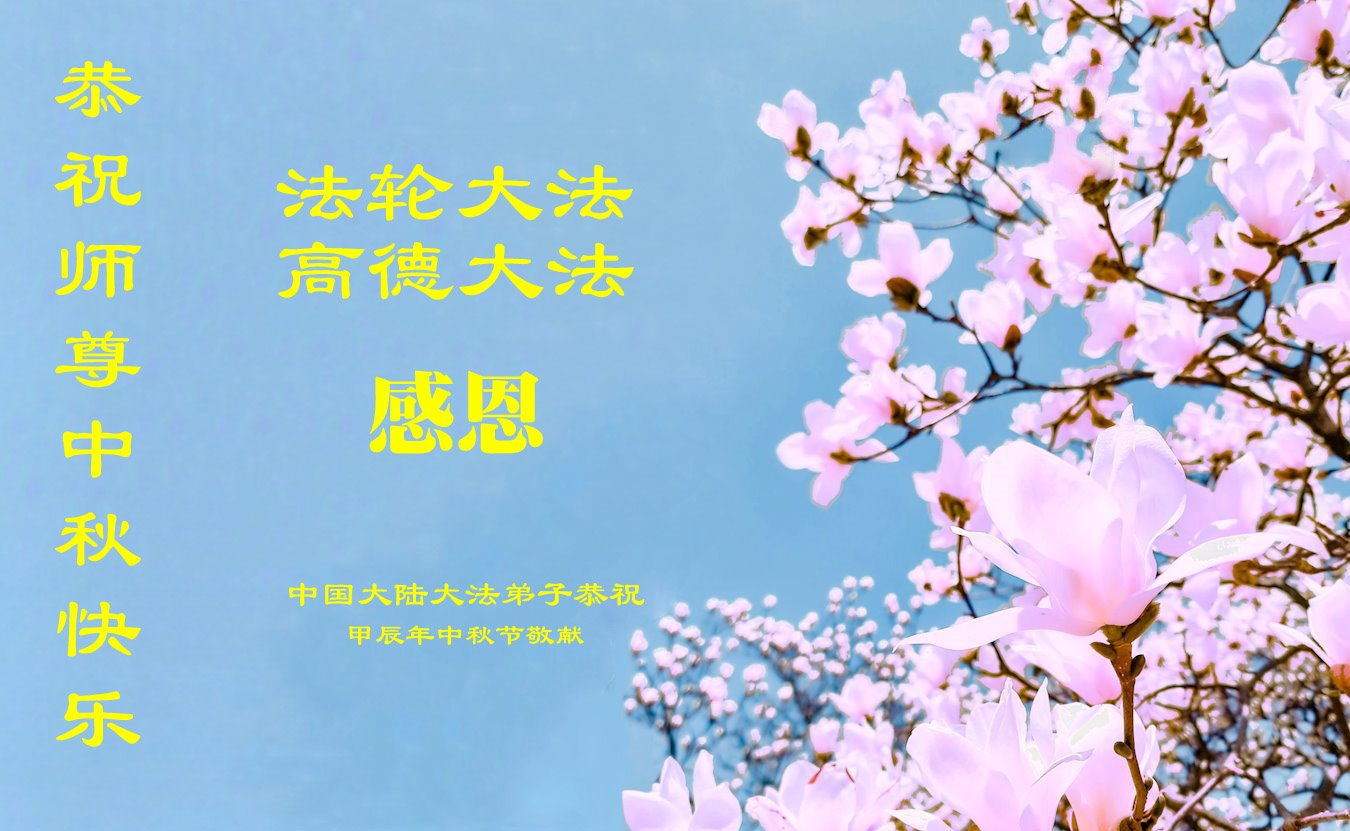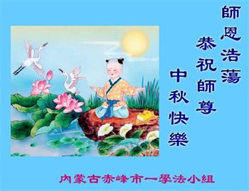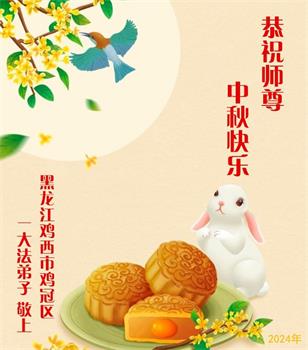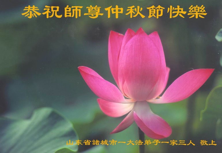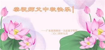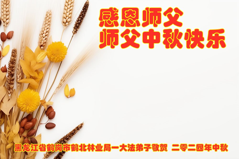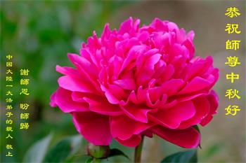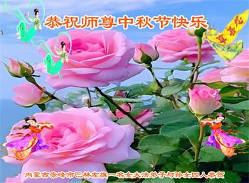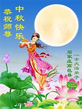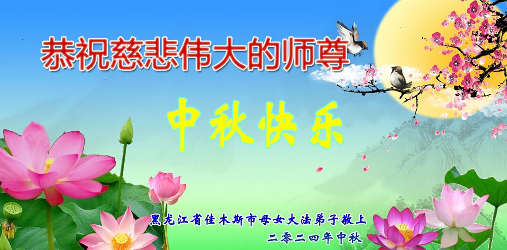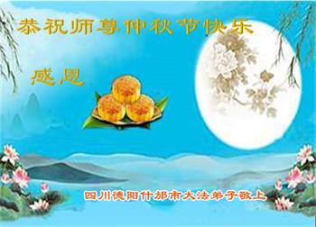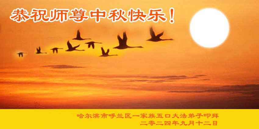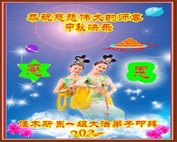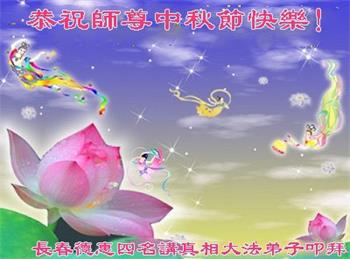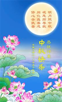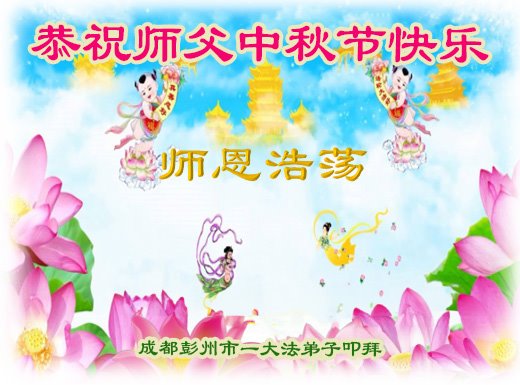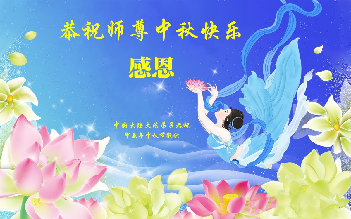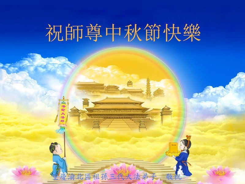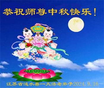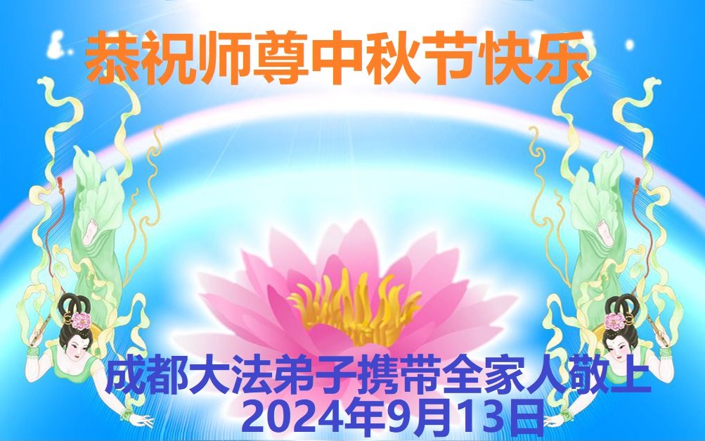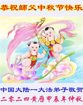 慈悲伟大的师尊好:我们在大陆都曾被邪恶残酷迫害,但我们不仅无悔,且深知能做师父的弟子是我们最大的荣耀与幸福。随师正法、救度众生是我们此生的意义与重任。弟子一定尽心、尽力去做,不负师尊的期望,不负众生的盼望。遥祝慈悲伟大的师尊中秋快乐!盼望师尊早日回大陆。