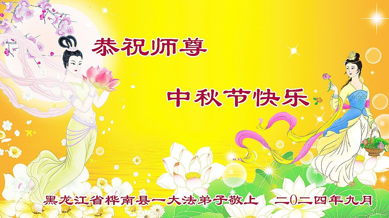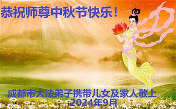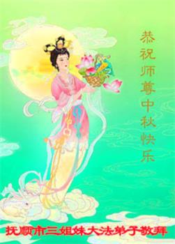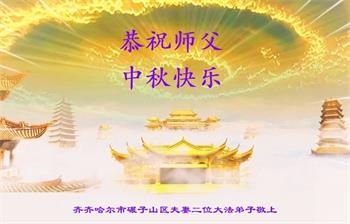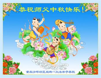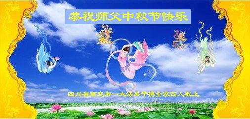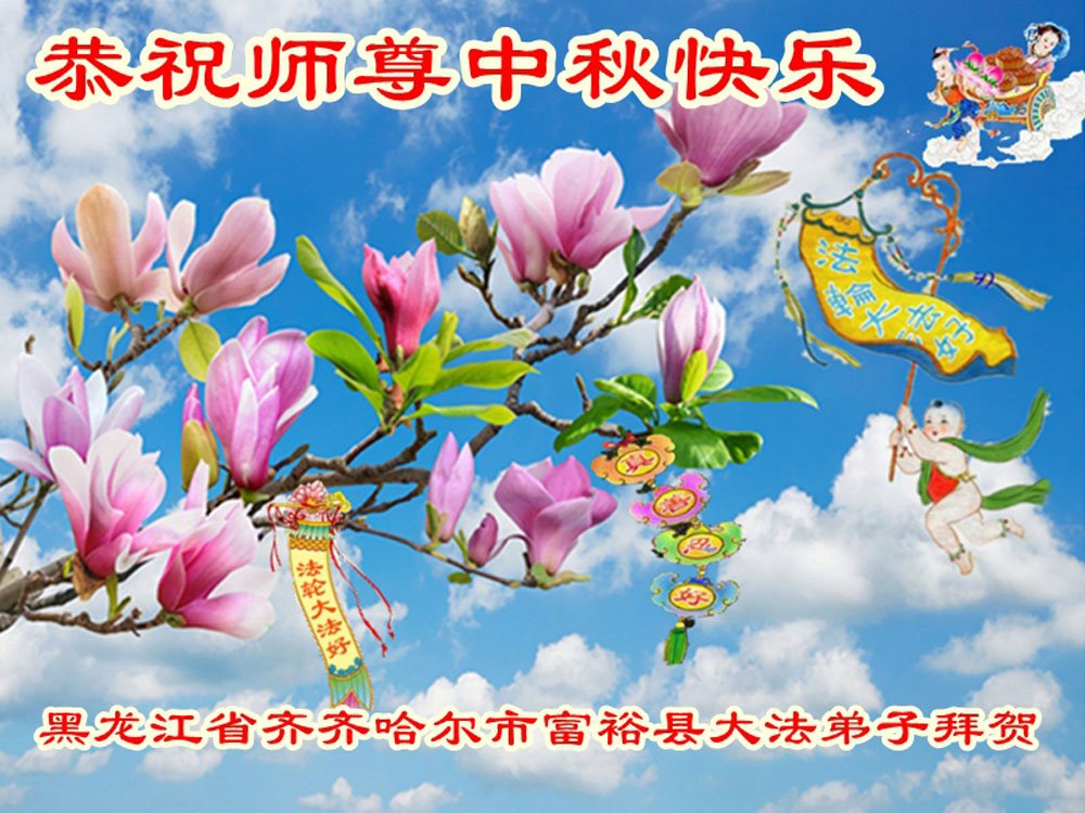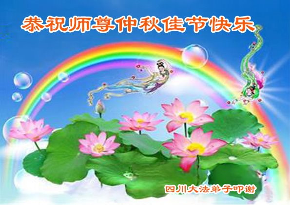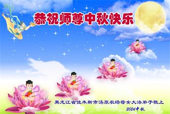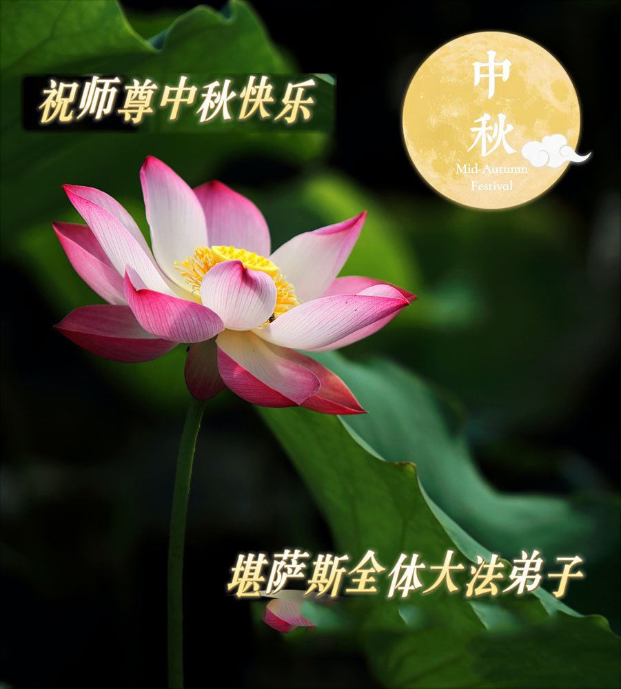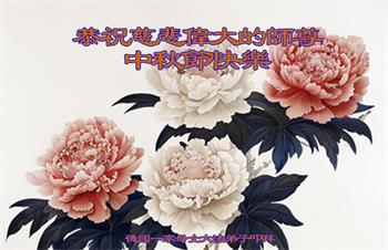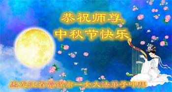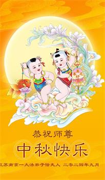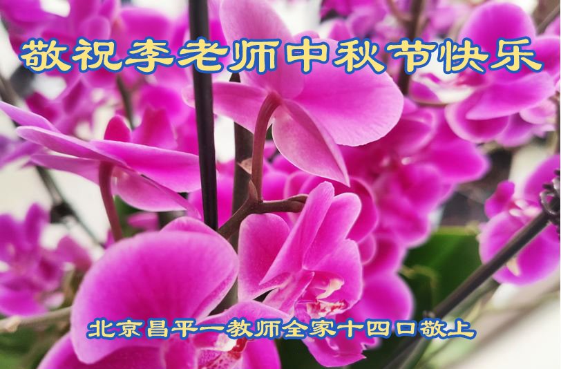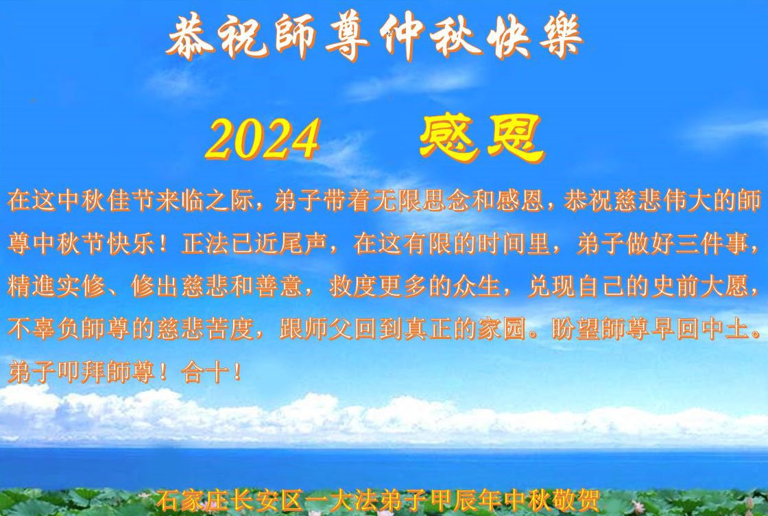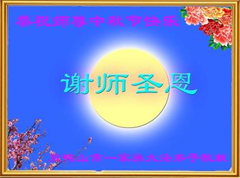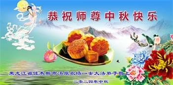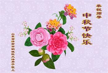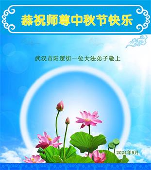 慈悲伟大的师尊好:我们在大陆都曾被邪恶残酷迫害,但我们不仅无悔,且深知能做师父的弟子是我们最大的荣耀与幸福。随师正法、救度众生是我们此生的意义与重任。弟子一定尽心、尽力去做,不负师尊的期望,不负众生的盼望。遥祝慈悲伟大的师尊中秋快乐!盼望师尊早日回大陆。