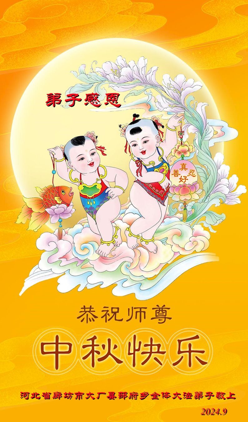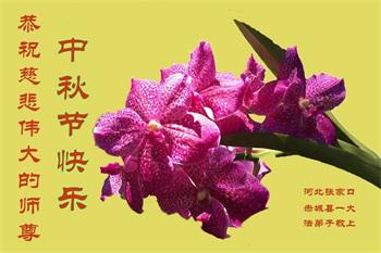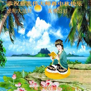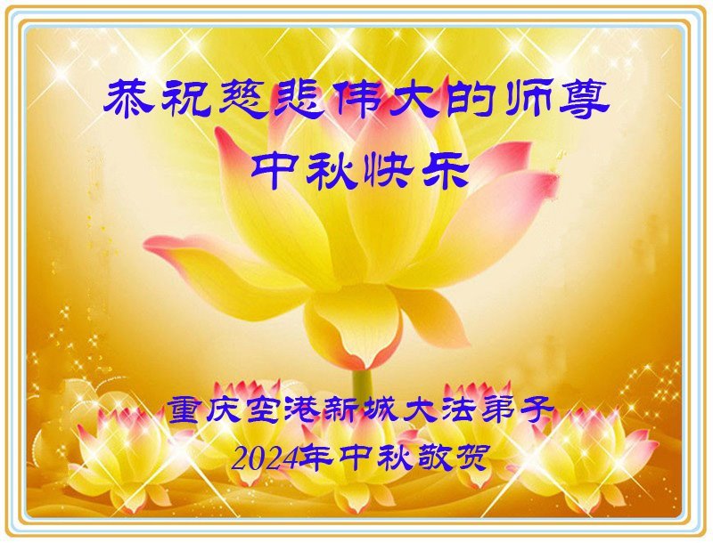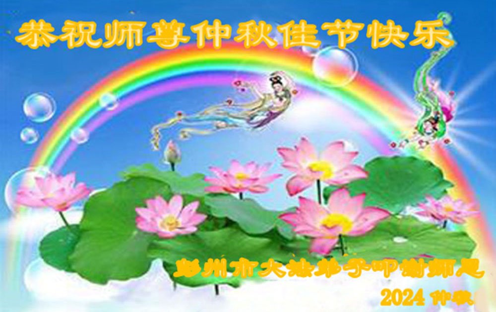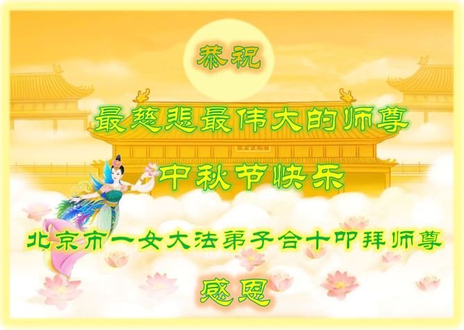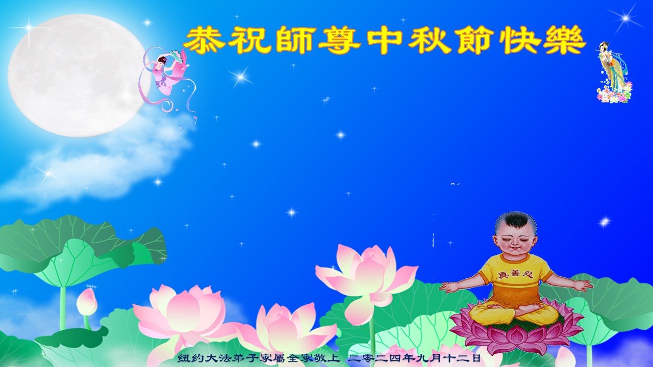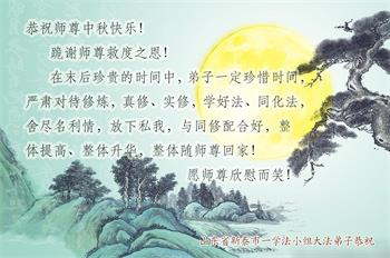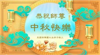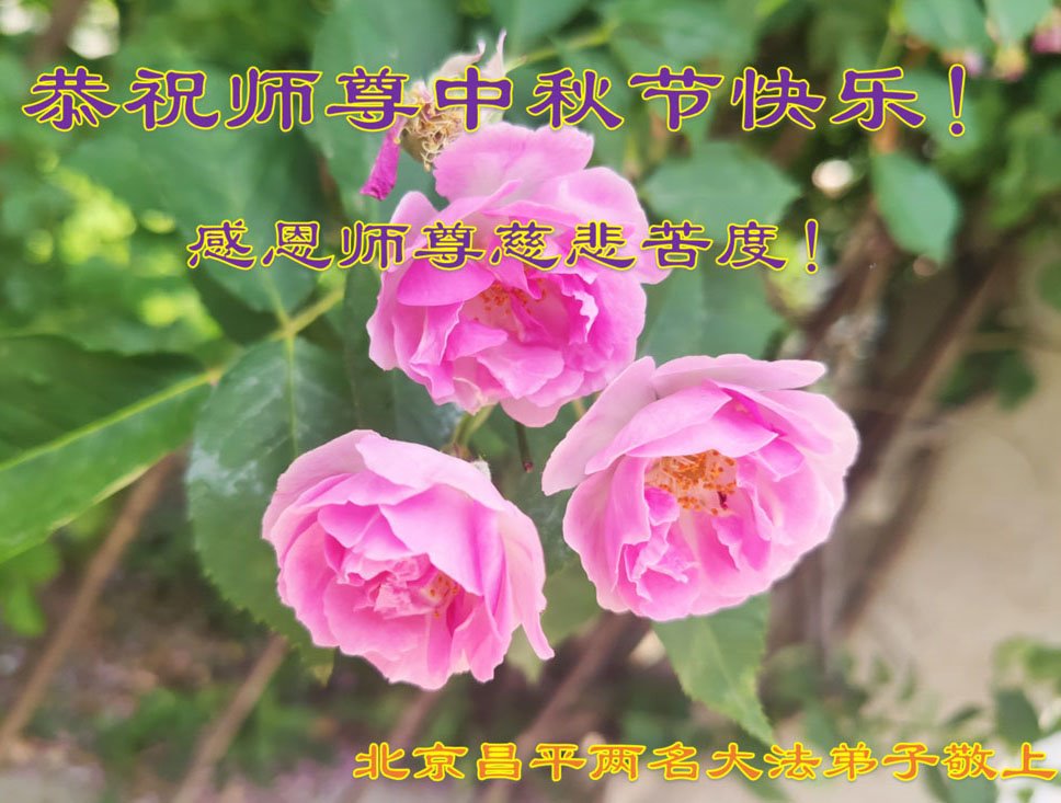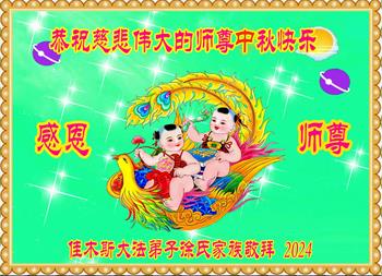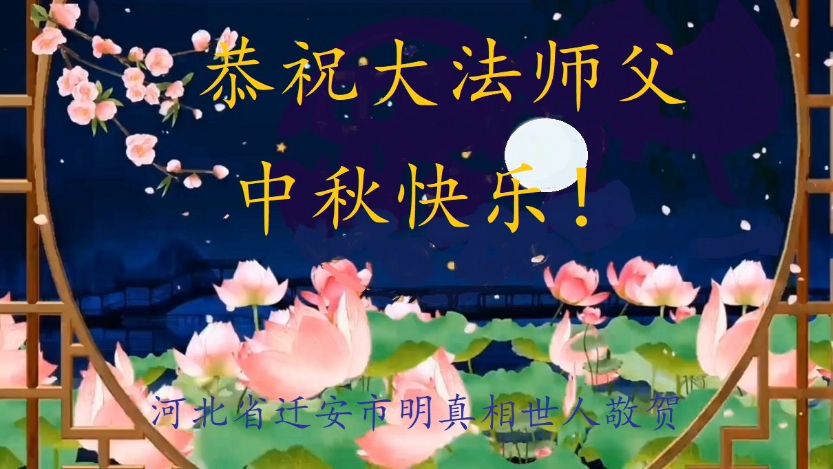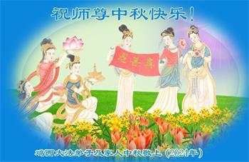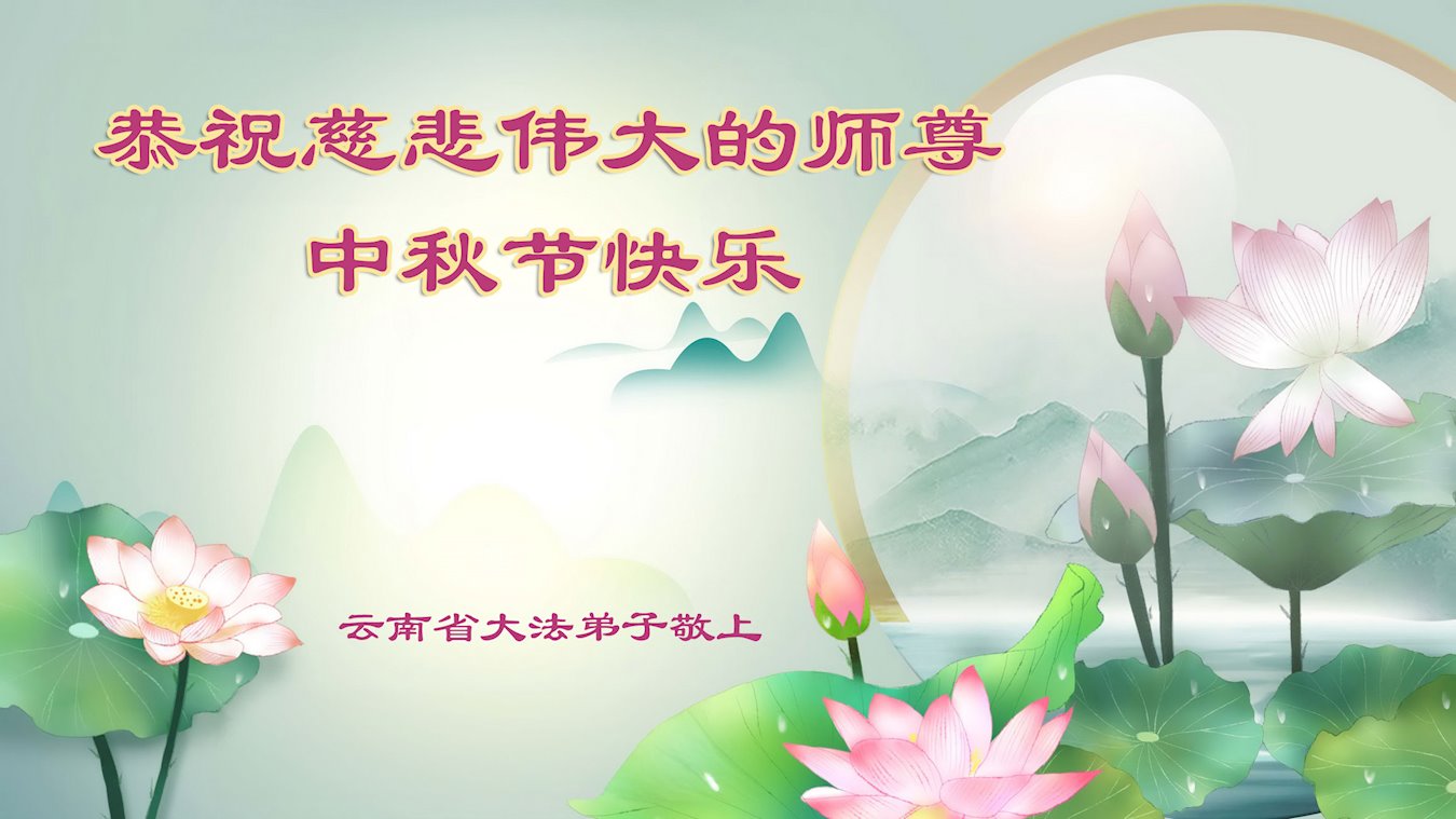慈悲伟大的师尊好:我们在大陆都曾被邪恶残酷迫害,但我们不仅无悔,且深知能做师父的弟子是我们最大的荣耀与幸福。随师正法、救度众生是我们此生的意义与重任。弟子一定尽心、尽力去做,不负师尊的期望,不负众生的盼望。遥祝慈悲伟大的师尊中秋快乐!盼望师尊早日回大陆。