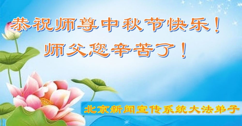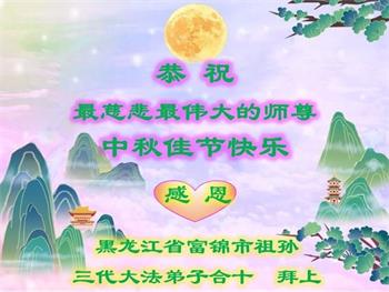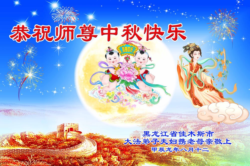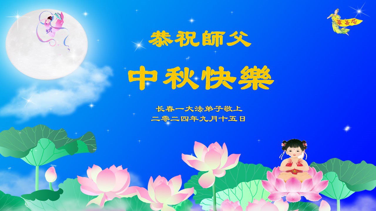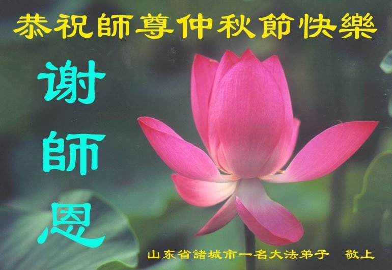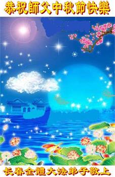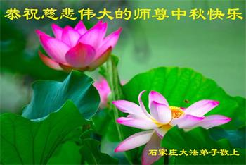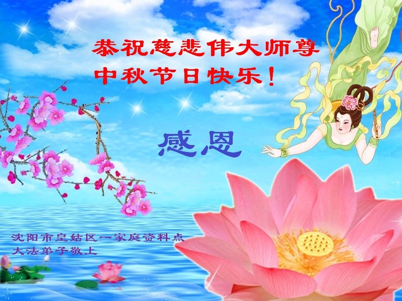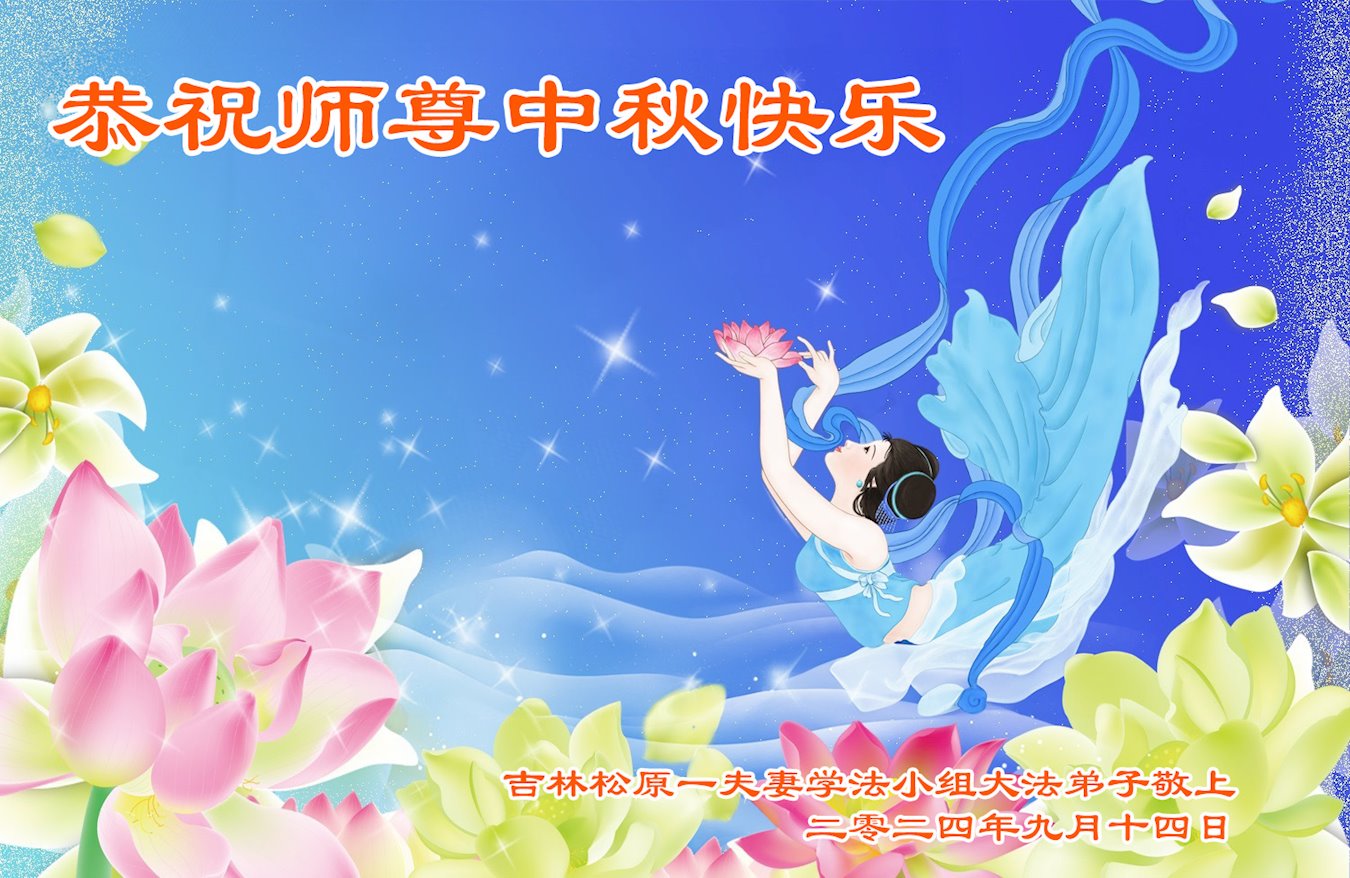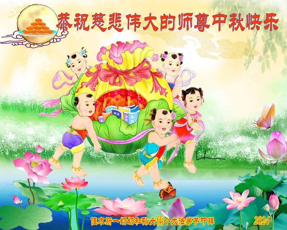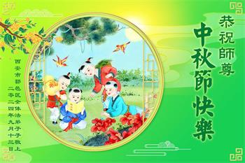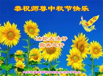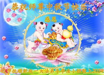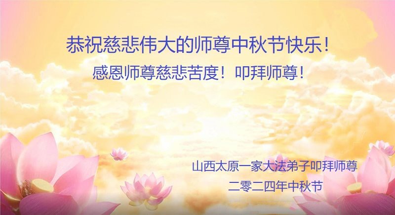 慈悲伟大的师尊好:我们在大陆都曾被邪恶残酷迫害,但我们不仅无悔,且深知能做师父的弟子是我们最大的荣耀与幸福。随师正法、救度众生是我们此生的意义与重任。弟子一定尽心、尽力去做,不负师尊的期望,不负众生的盼望。遥祝慈悲伟大的师尊中秋快乐!盼望师尊早日回大陆。