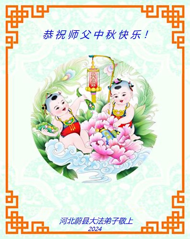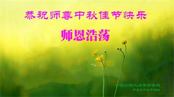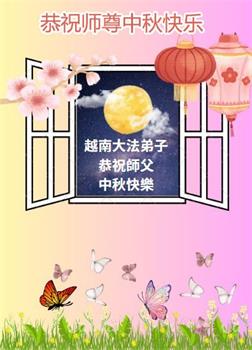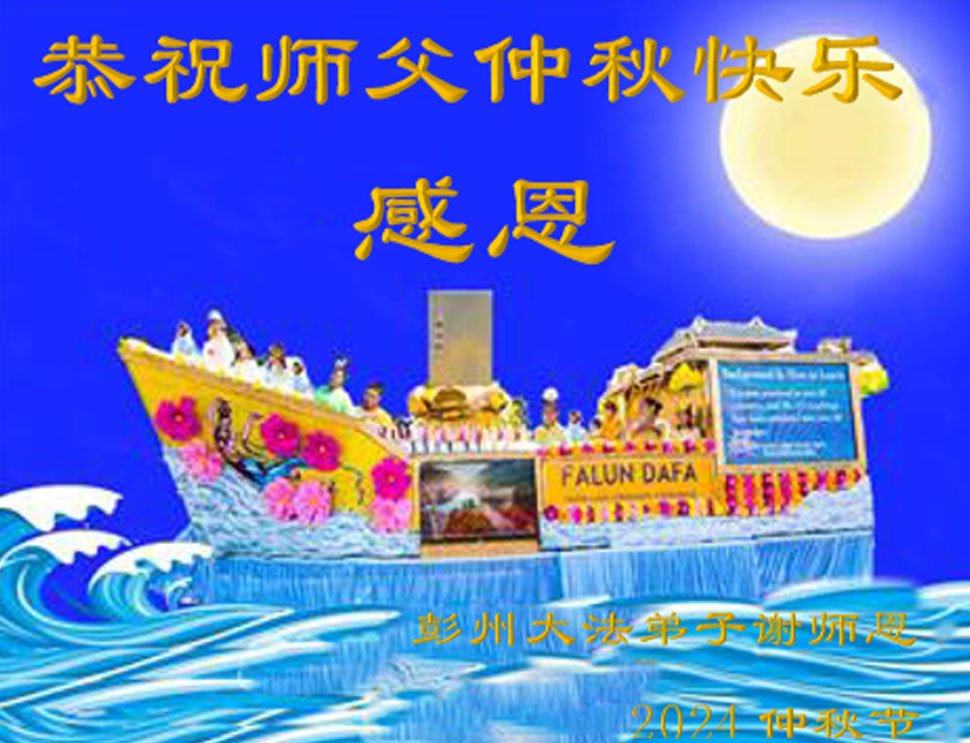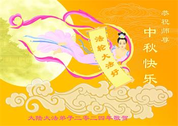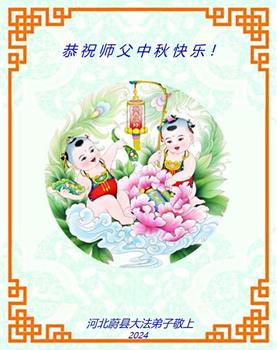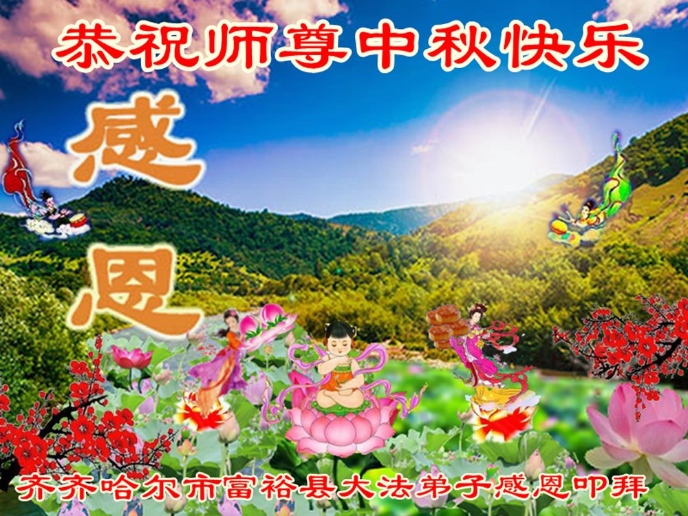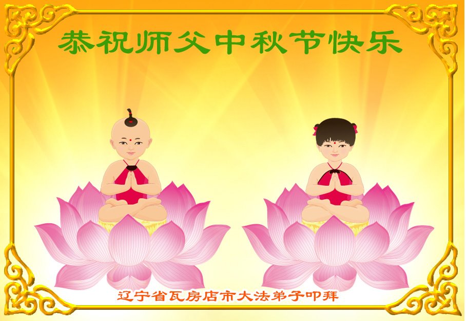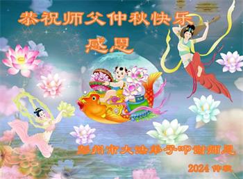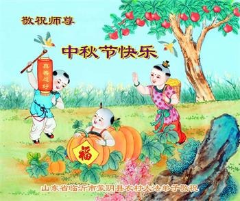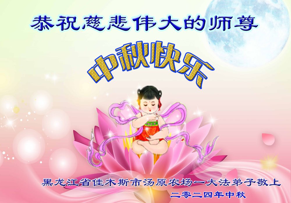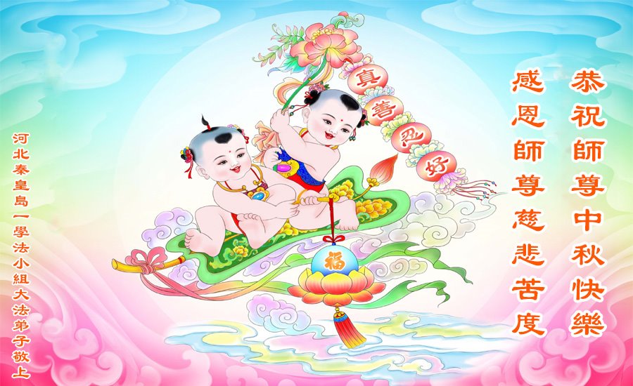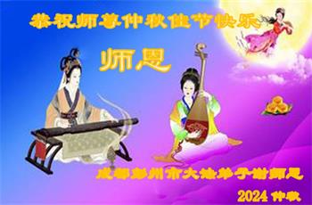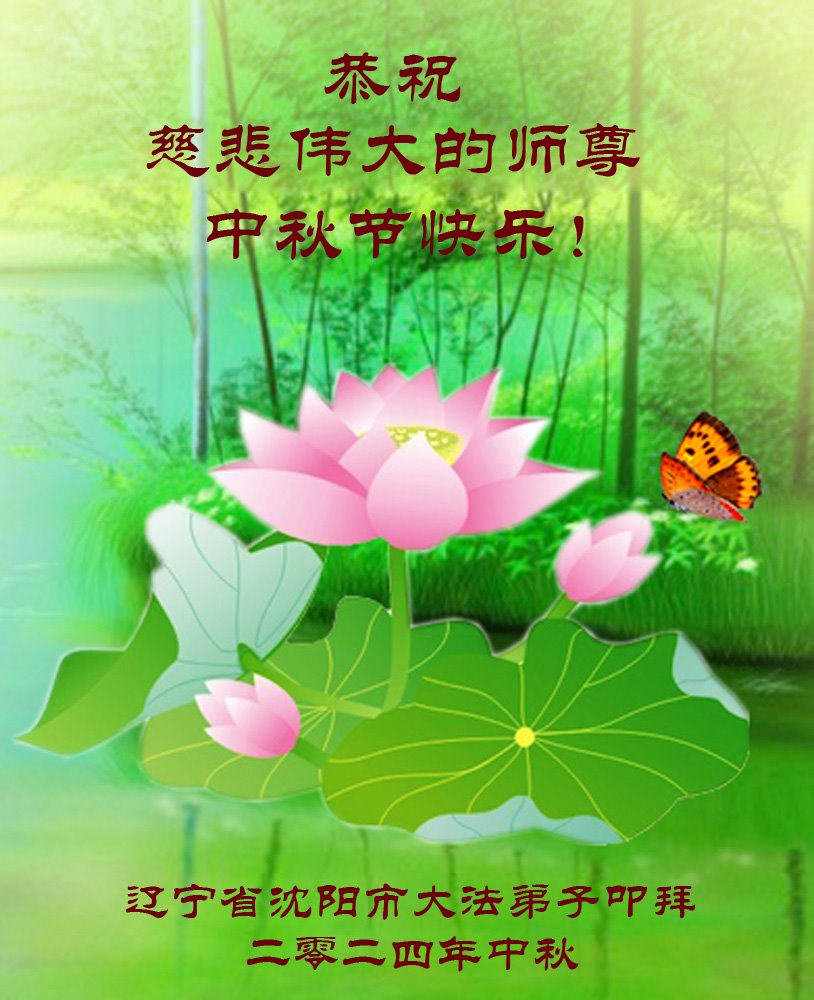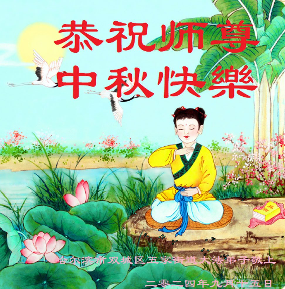 慈悲伟大的师尊好:我们在大陆都曾被邪恶残酷迫害,但我们不仅无悔,且深知能做师父的弟子是我们最大的荣耀与幸福。随师正法、救度众生是我们此生的意义与重任。弟子一定尽心、尽力去做,不负师尊的期望,不负众生的盼望。遥祝慈悲伟大的师尊中秋快乐!盼望师尊早日回大陆。