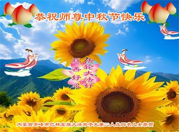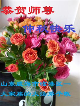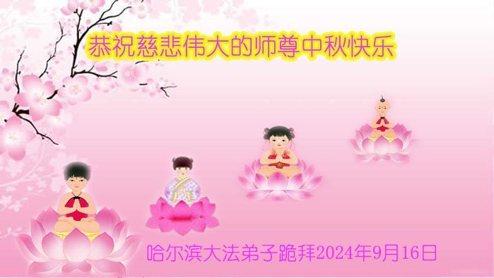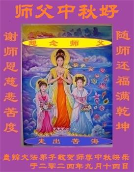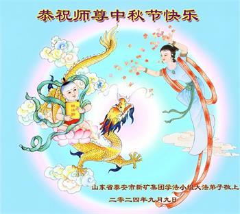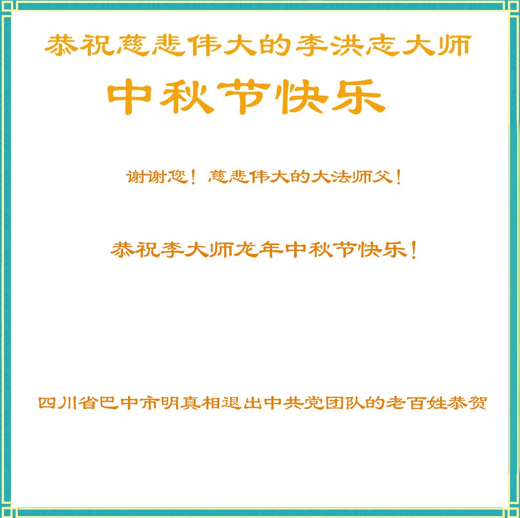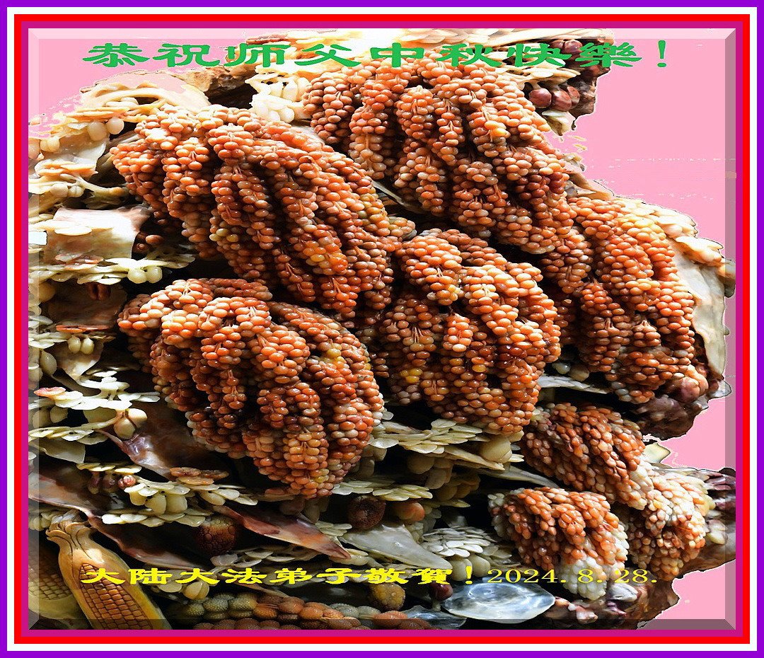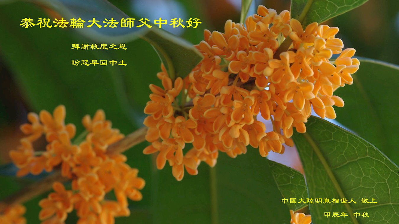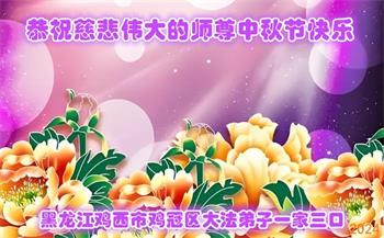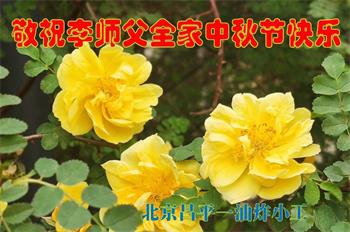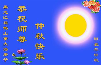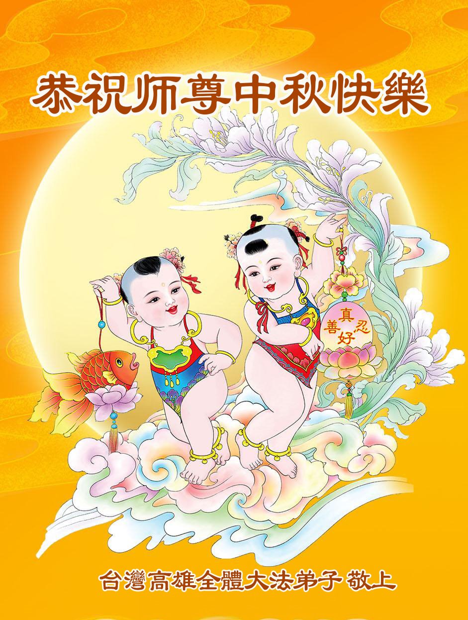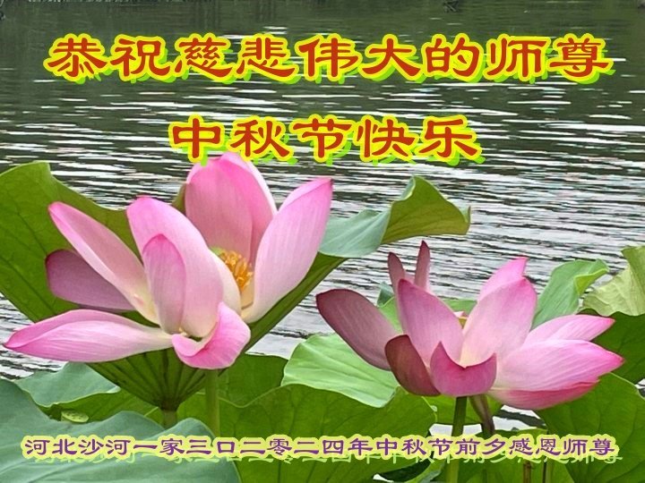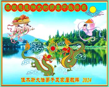 慈悲伟大的师尊好:我们在大陆都曾被邪恶残酷迫害,但我们不仅无悔,且深知能做师父的弟子是我们最大的荣耀与幸福。随师正法、救度众生是我们此生的意义与重任。弟子一定尽心、尽力去做,不负师尊的期望,不负众生的盼望。遥祝慈悲伟大的师尊中秋快乐!盼望师尊早日回大陆。