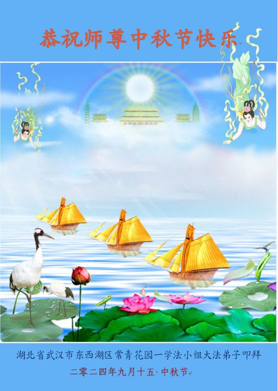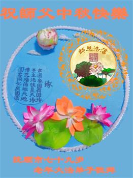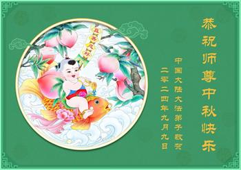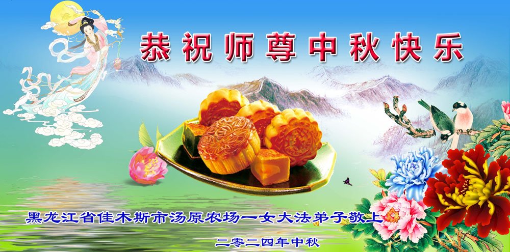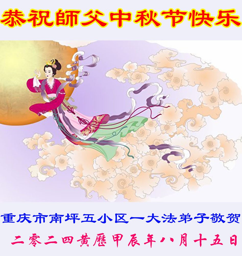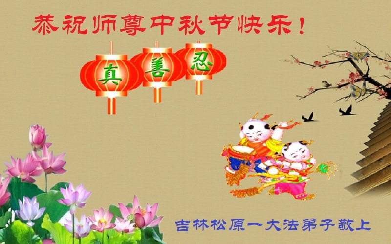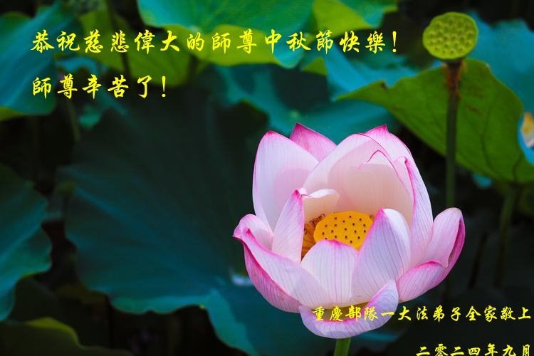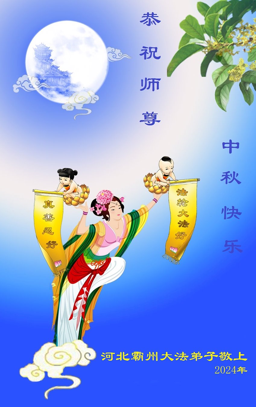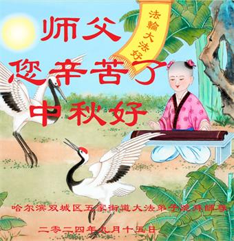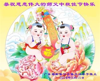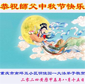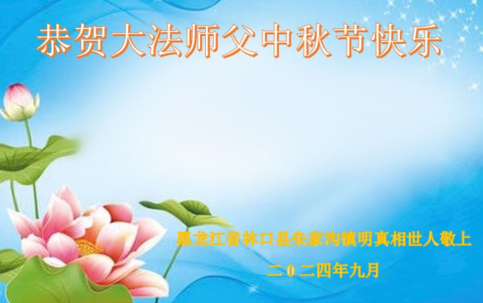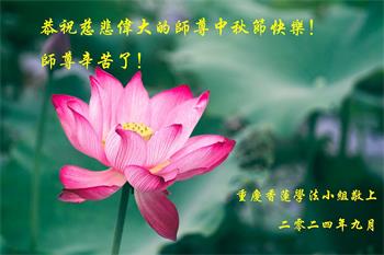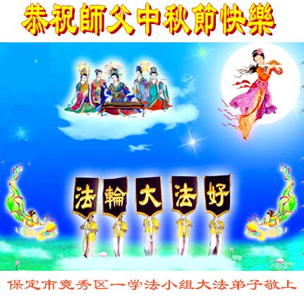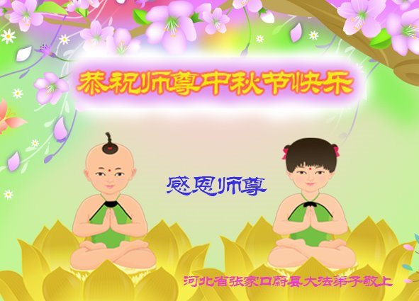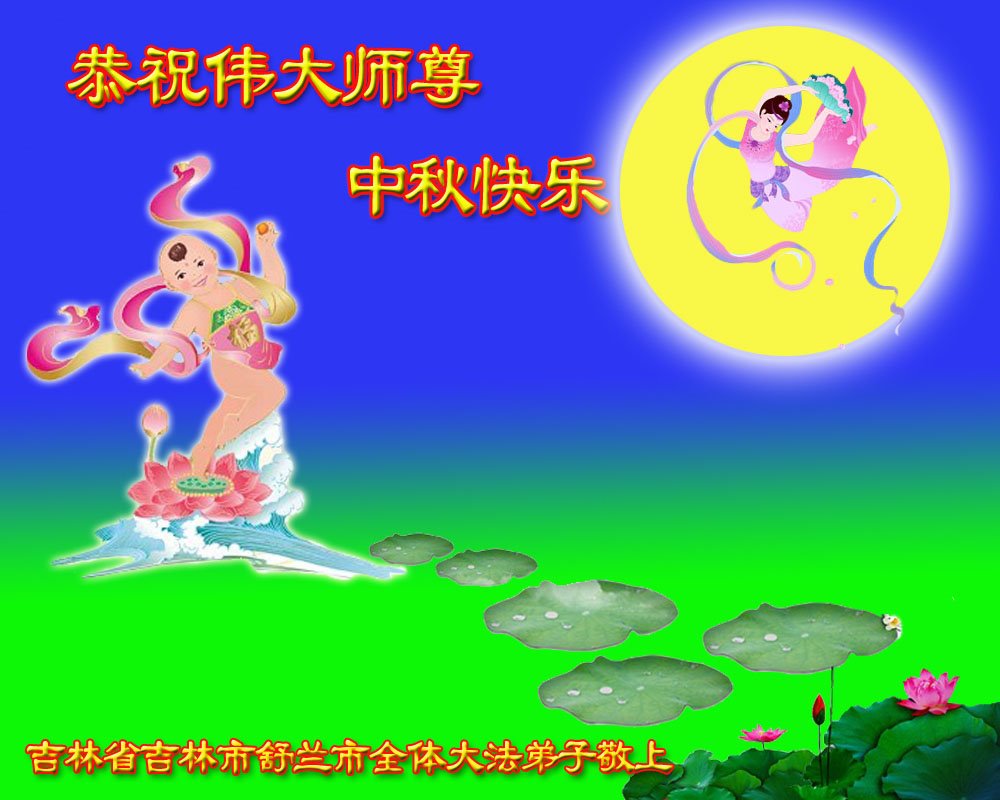 慈悲伟大的师尊好:我们在大陆都曾被邪恶残酷迫害,但我们不仅无悔,且深知能做师父的弟子是我们最大的荣耀与幸福。随师正法、救度众生是我们此生的意义与重任。弟子一定尽心、尽力去做,不负师尊的期望,不负众生的盼望。遥祝慈悲伟大的师尊中秋快乐!盼望师尊早日回大陆。