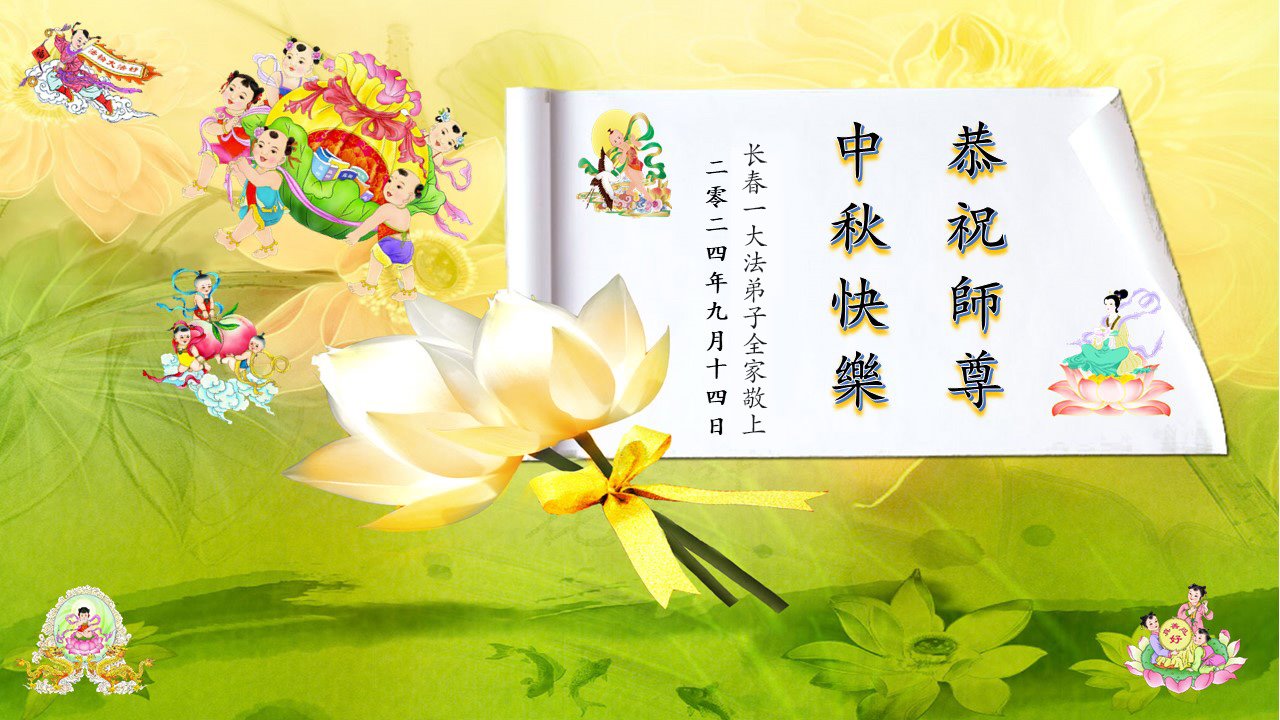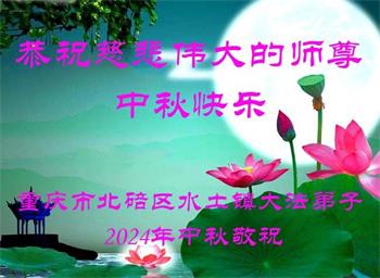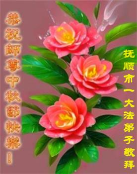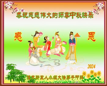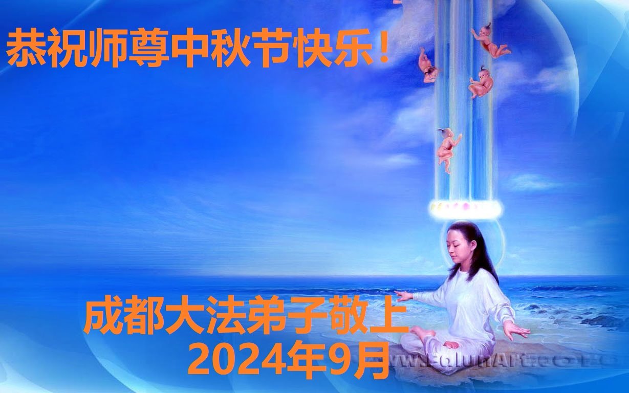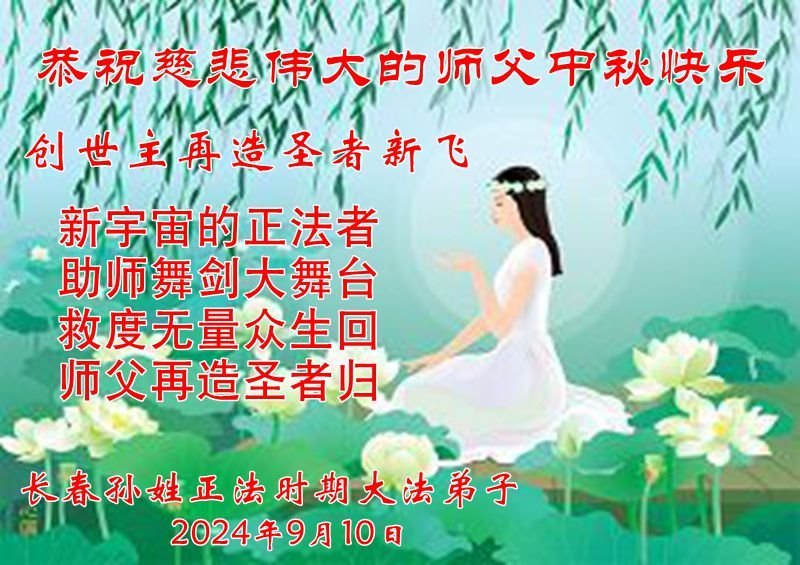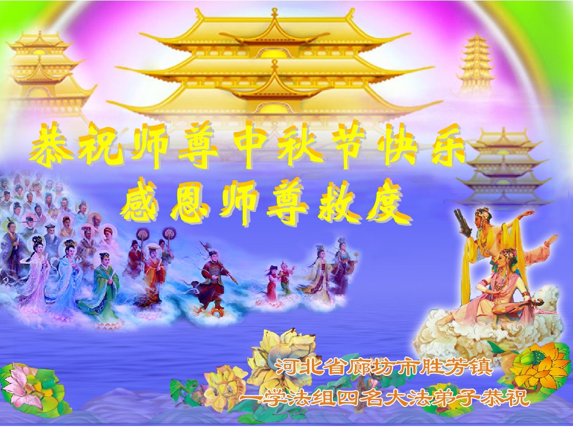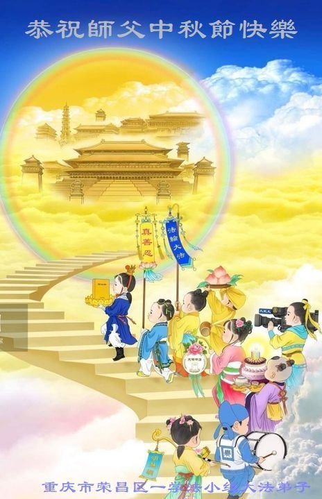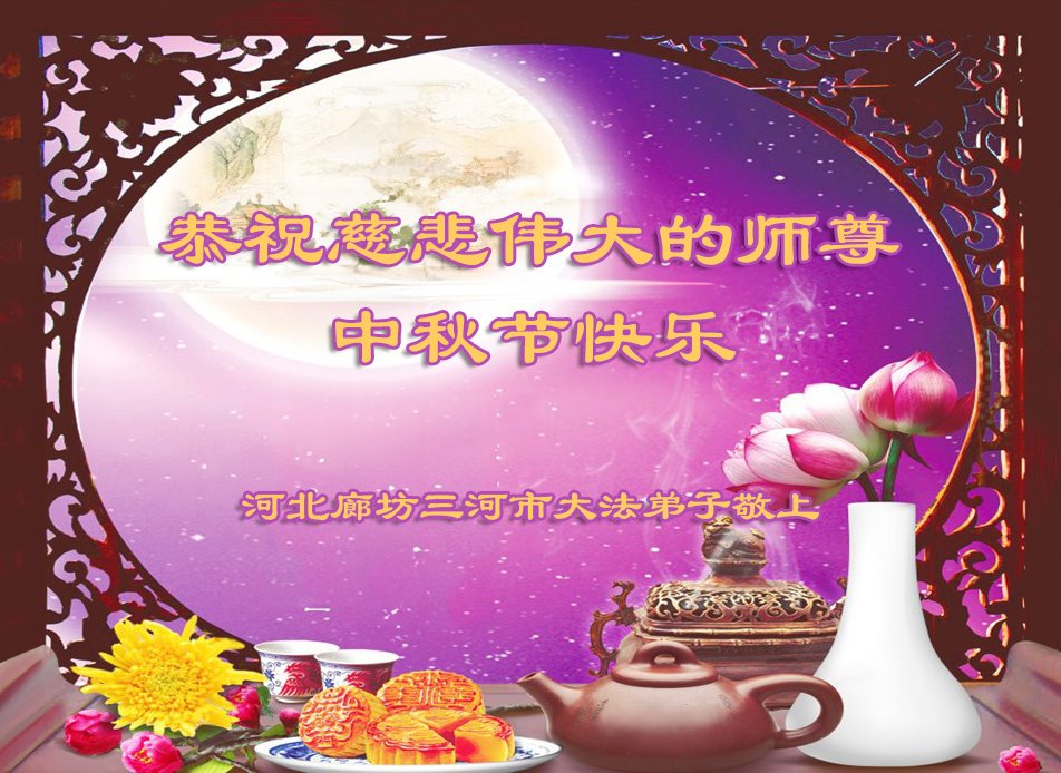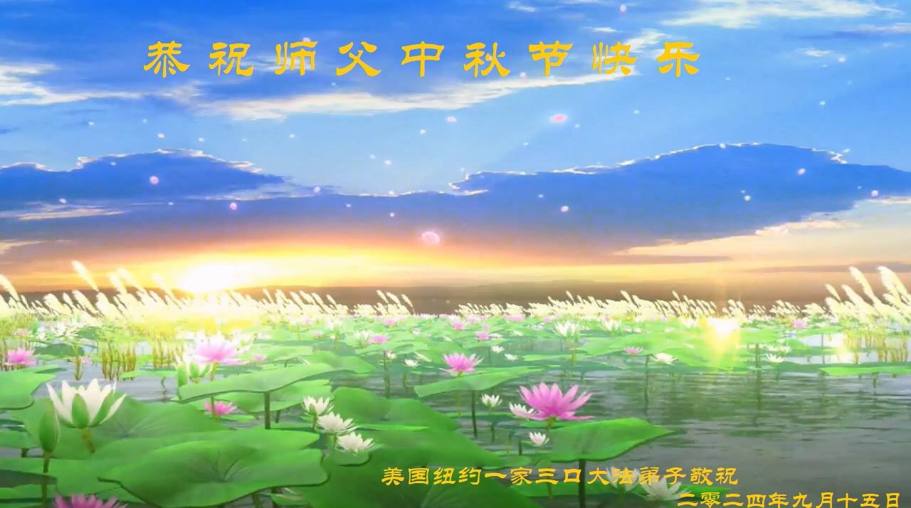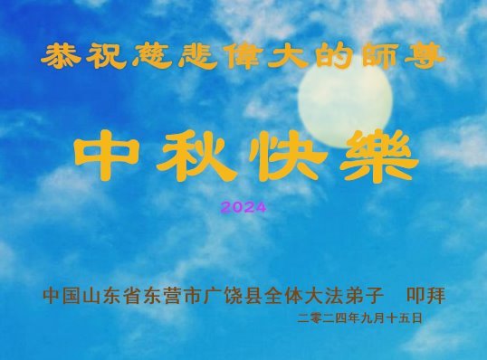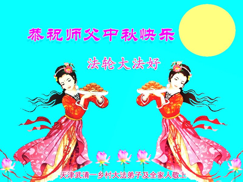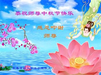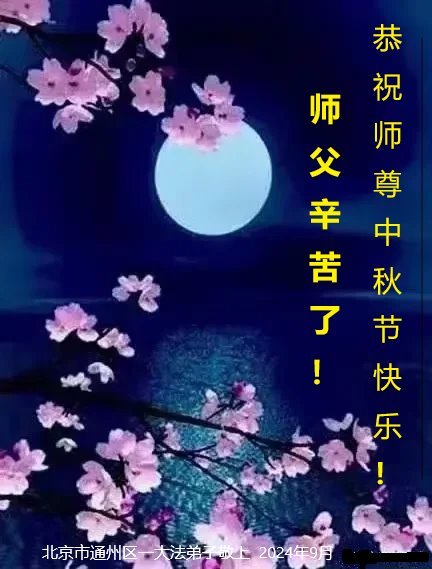 慈悲伟大的师尊好:我们在大陆都曾被邪恶残酷迫害,但我们不仅无悔,且深知能做师父的弟子是我们最大的荣耀与幸福。随师正法、救度众生是我们此生的意义与重任。弟子一定尽心、尽力去做,不负师尊的期望,不负众生的盼望。遥祝慈悲伟大的师尊中秋快乐!盼望师尊早日回大陆。