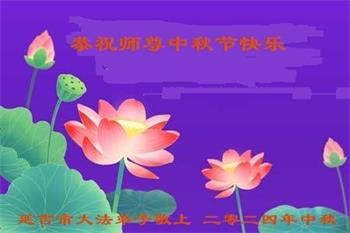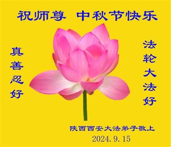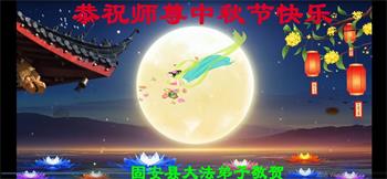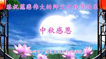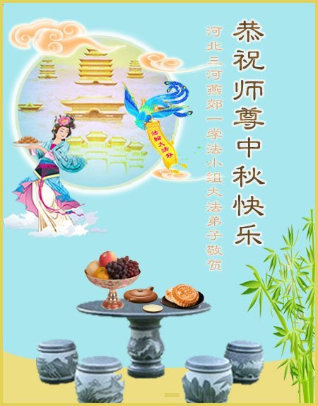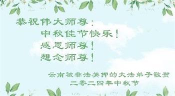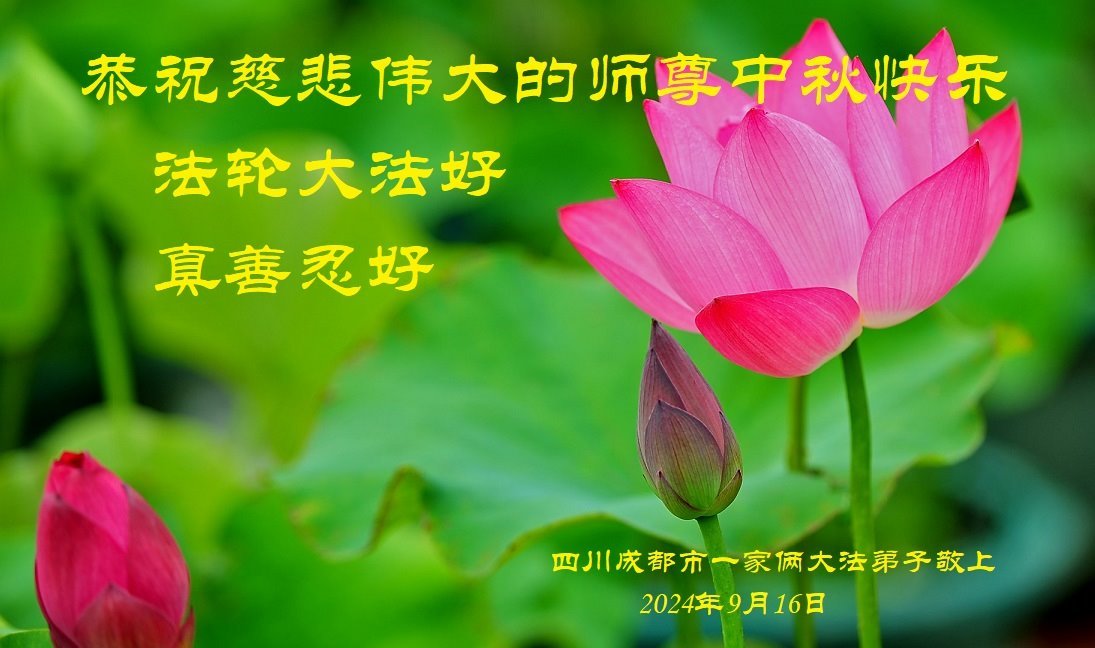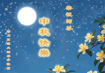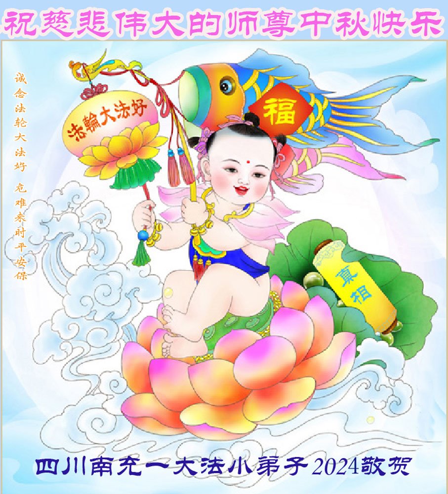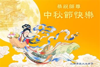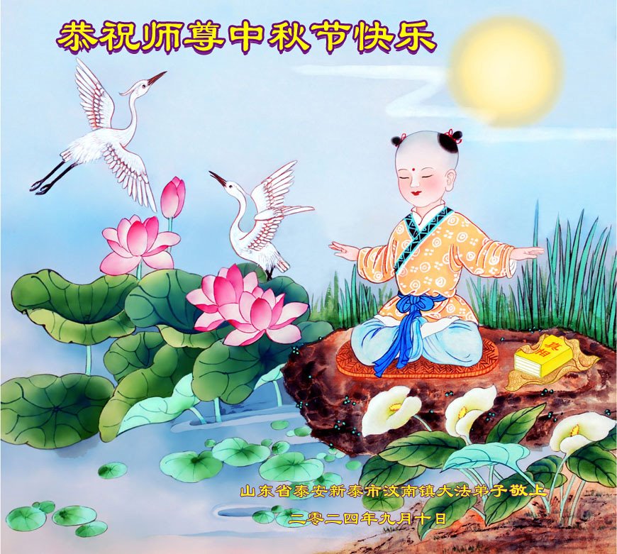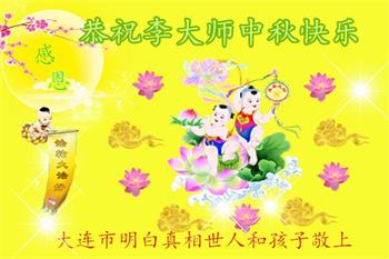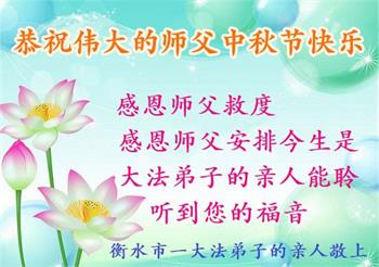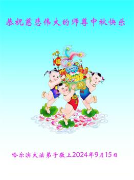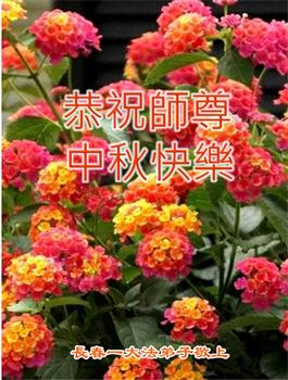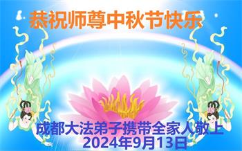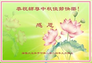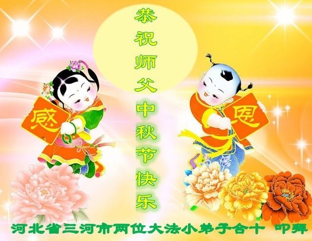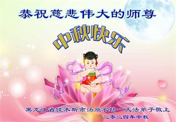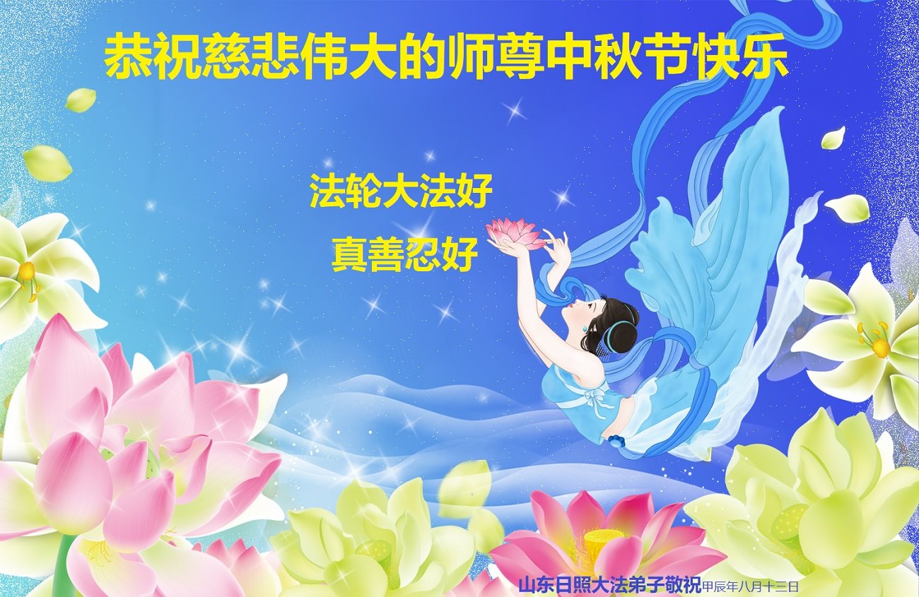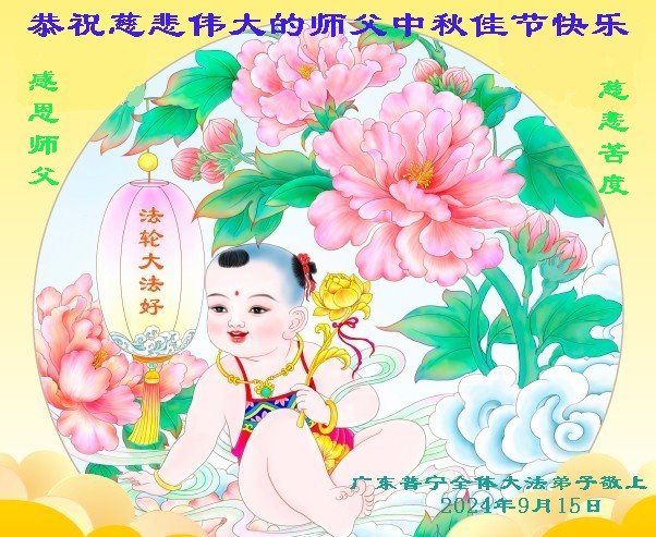 慈悲伟大的师尊好:我们在大陆都曾被邪恶残酷迫害,但我们不仅无悔,且深知能做师父的弟子是我们最大的荣耀与幸福。随师正法、救度众生是我们此生的意义与重任。弟子一定尽心、尽力去做,不负师尊的期望,不负众生的盼望。遥祝慈悲伟大的师尊中秋快乐!盼望师尊早日回大陆。