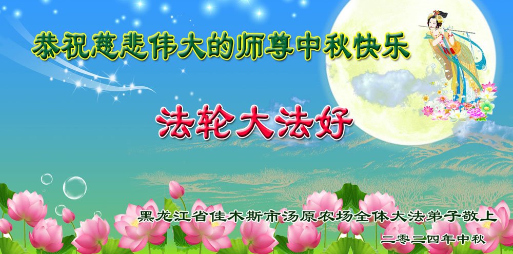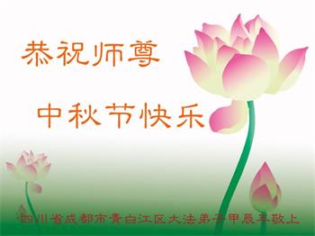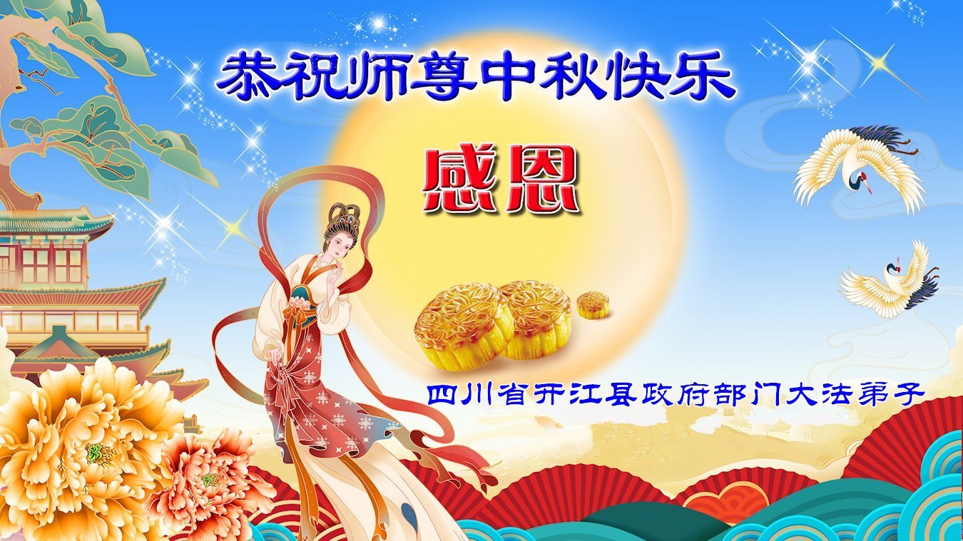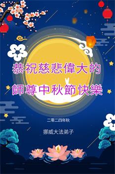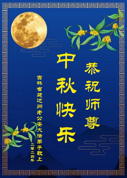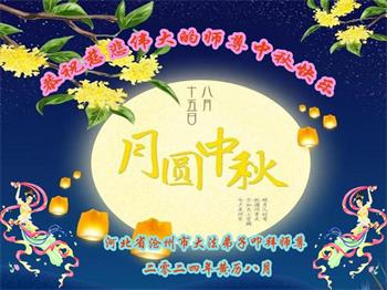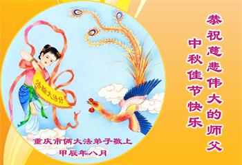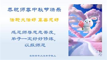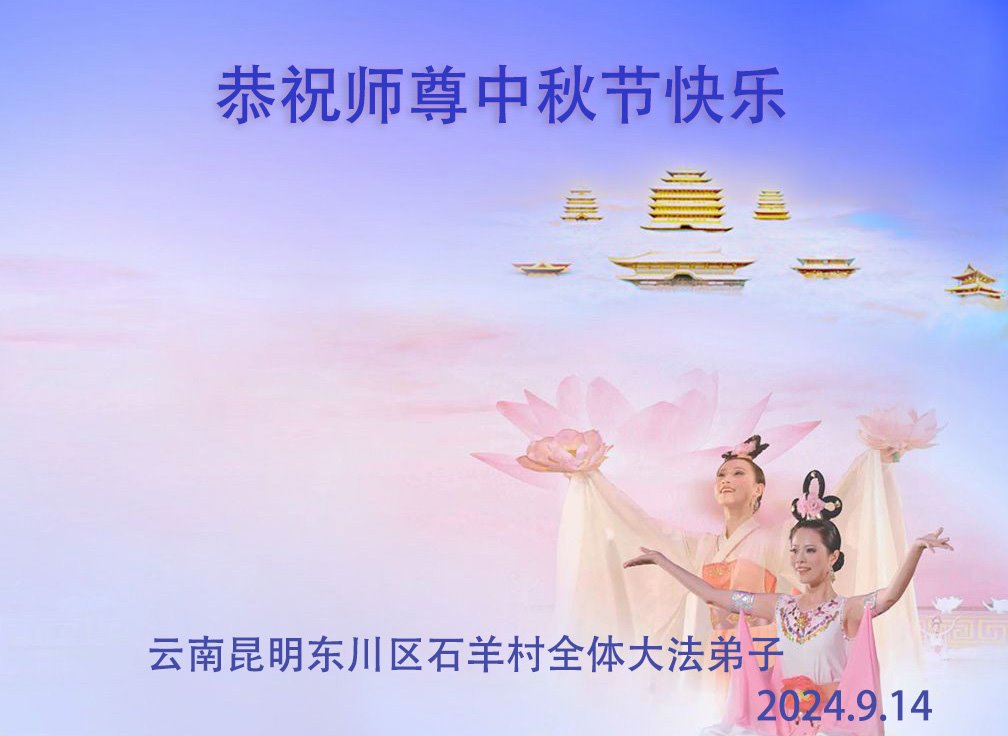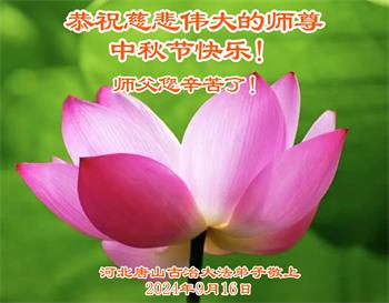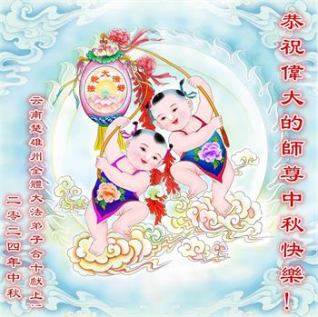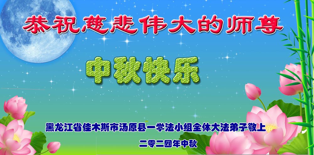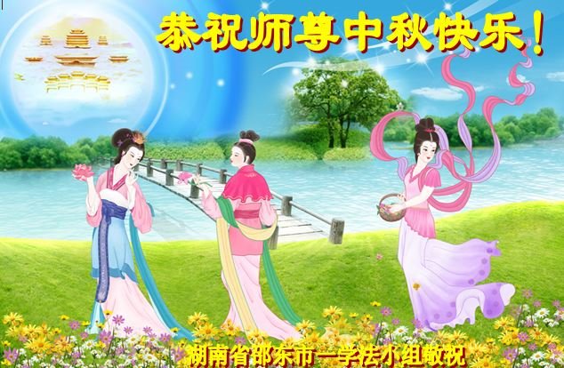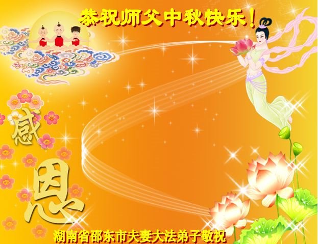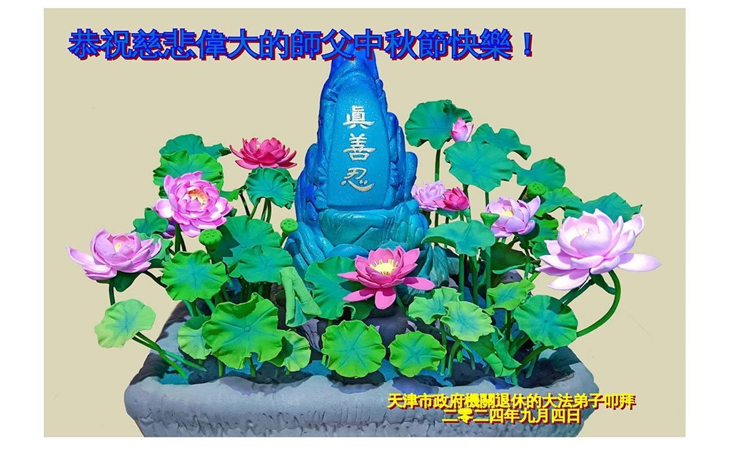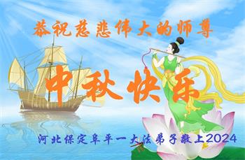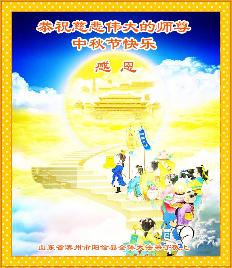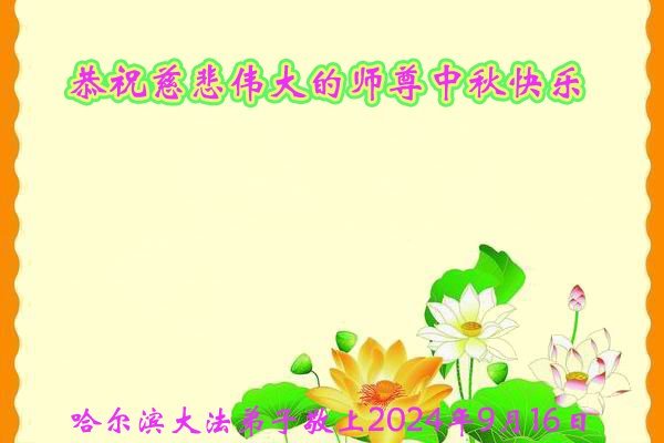 慈悲伟大的师尊好:我们在大陆都曾被邪恶残酷迫害,但我们不仅无悔,且深知能做师父的弟子是我们最大的荣耀与幸福。随师正法、救度众生是我们此生的意义与重任。弟子一定尽心、尽力去做,不负师尊的期望,不负众生的盼望。遥祝慈悲伟大的师尊中秋快乐!盼望师尊早日回大陆。