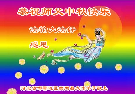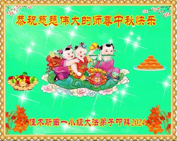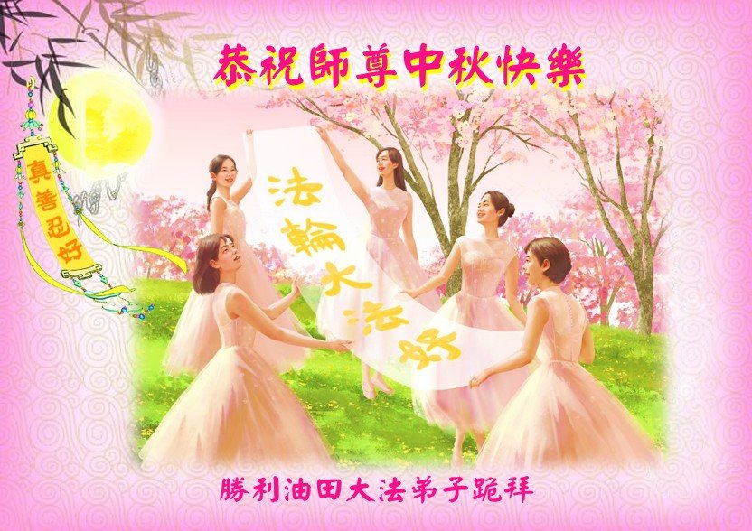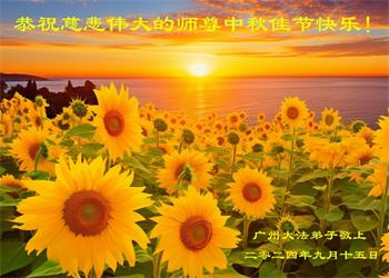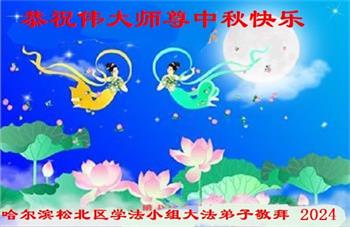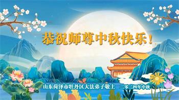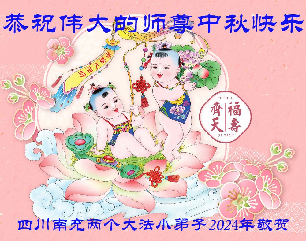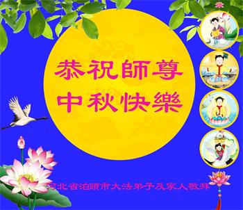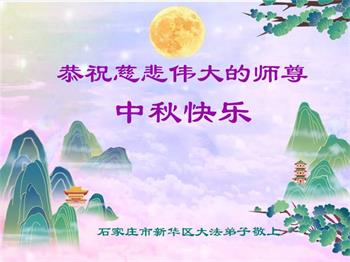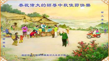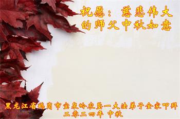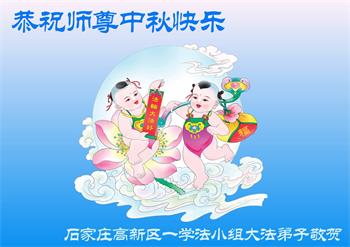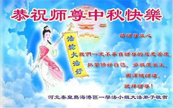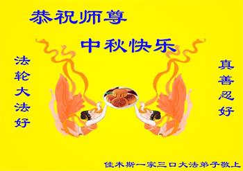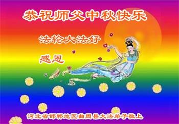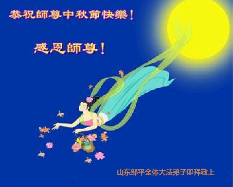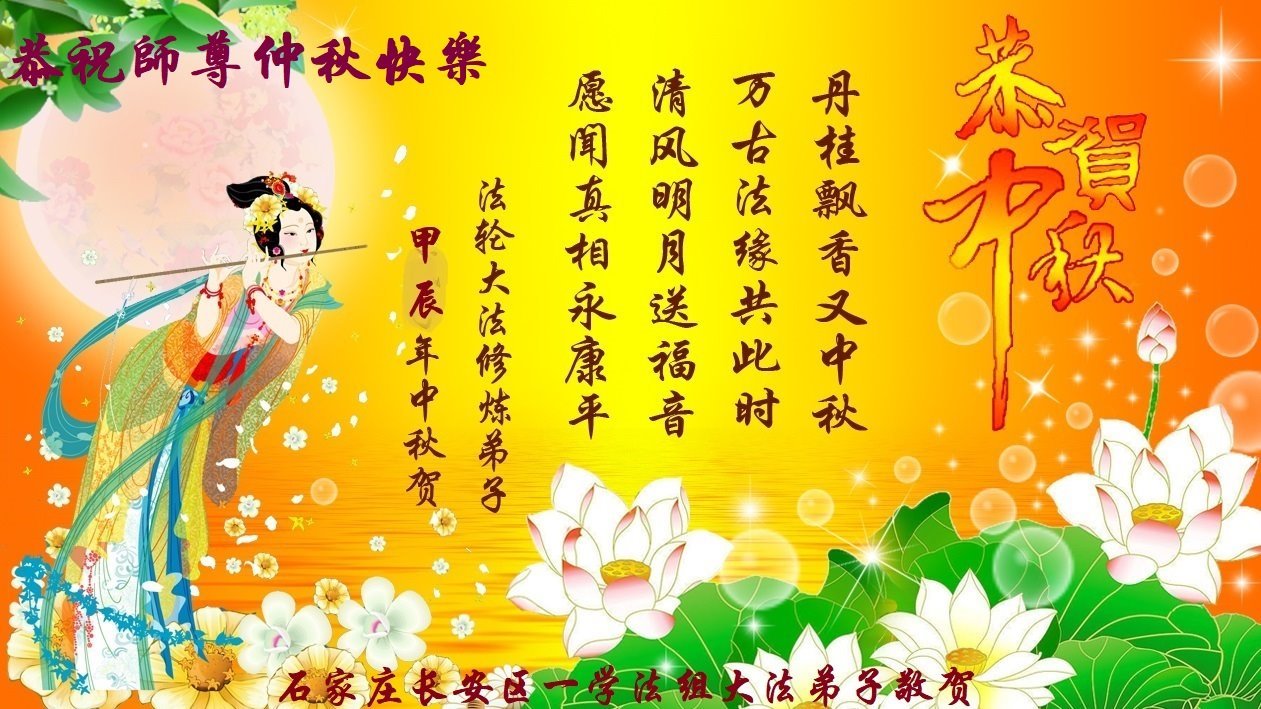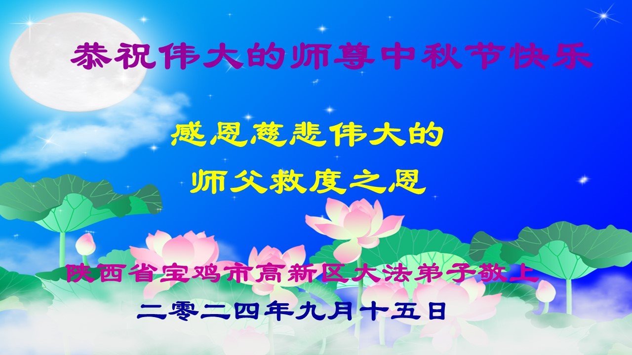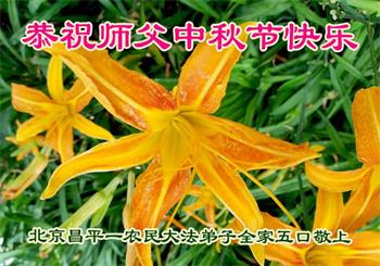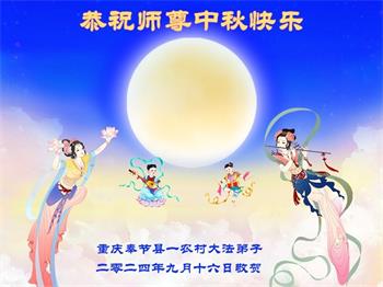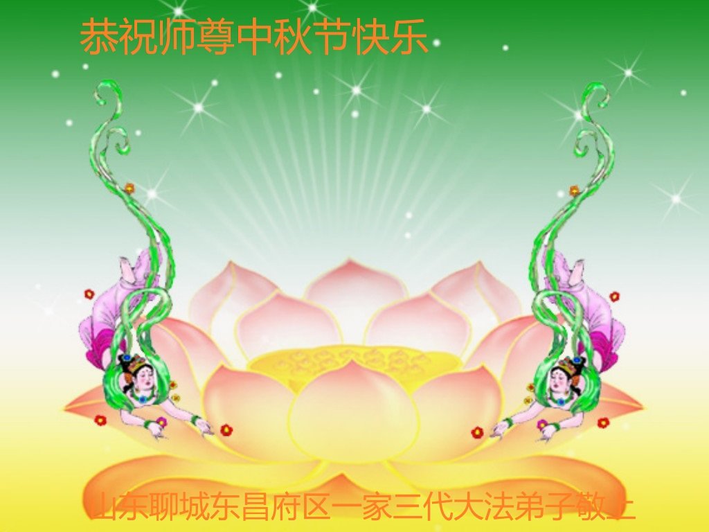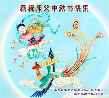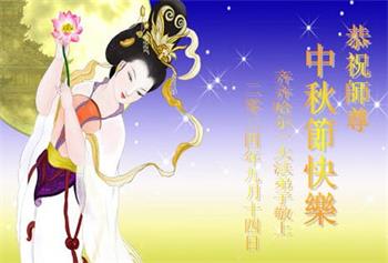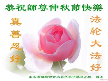 慈悲伟大的师尊好:我们在大陆都曾被邪恶残酷迫害,但我们不仅无悔,且深知能做师父的弟子是我们最大的荣耀与幸福。随师正法、救度众生是我们此生的意义与重任。弟子一定尽心、尽力去做,不负师尊的期望,不负众生的盼望。遥祝慈悲伟大的师尊中秋快乐!盼望师尊早日回大陆。