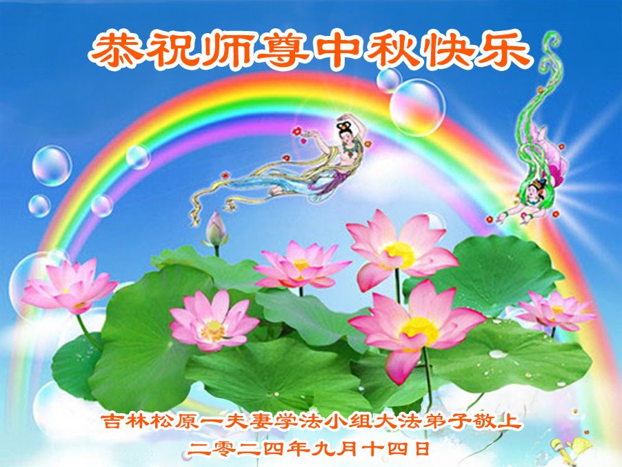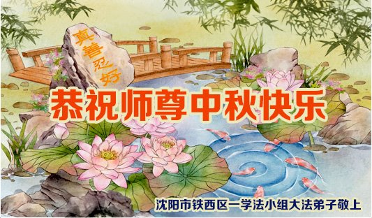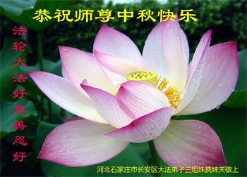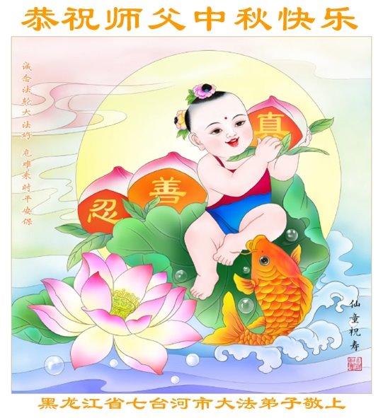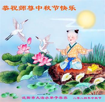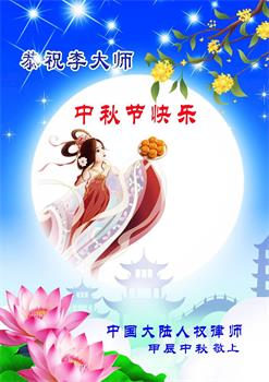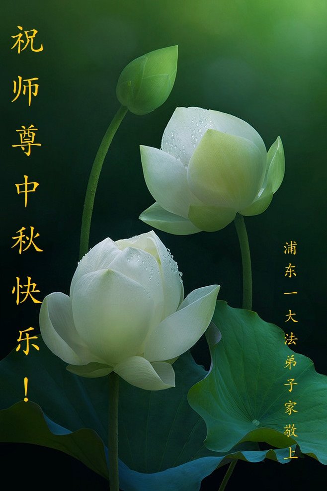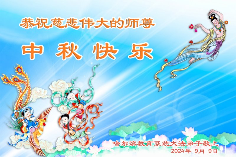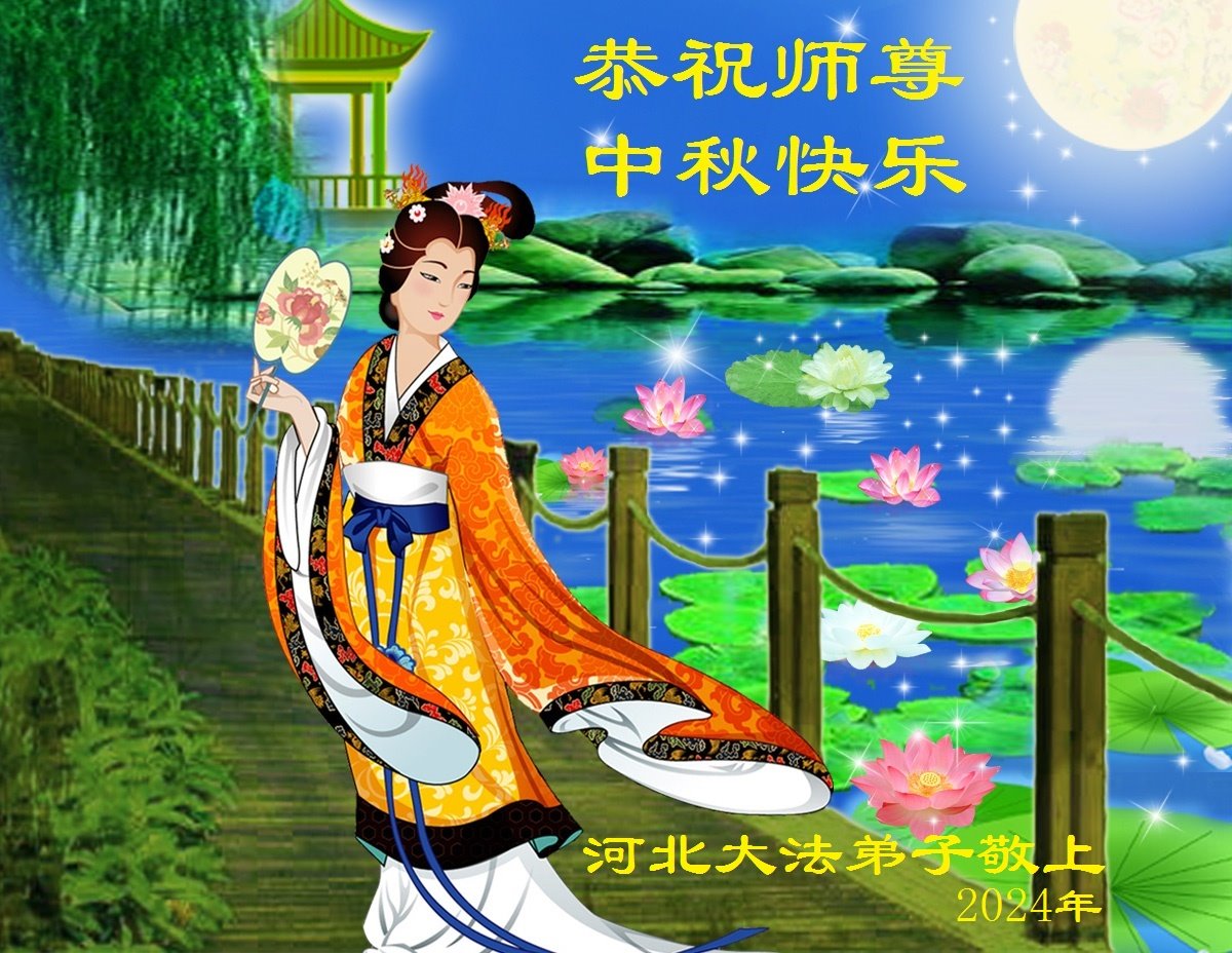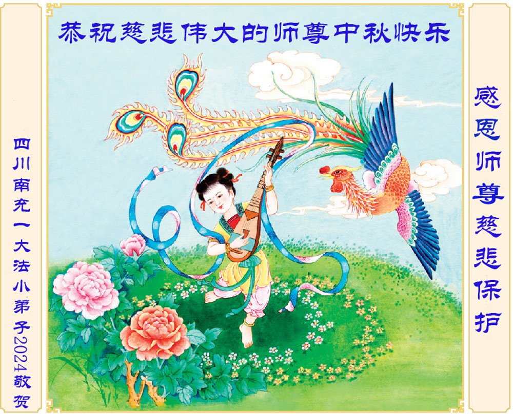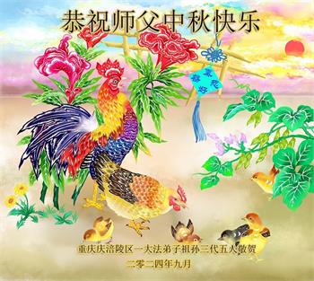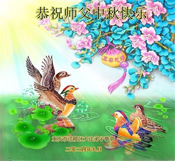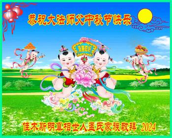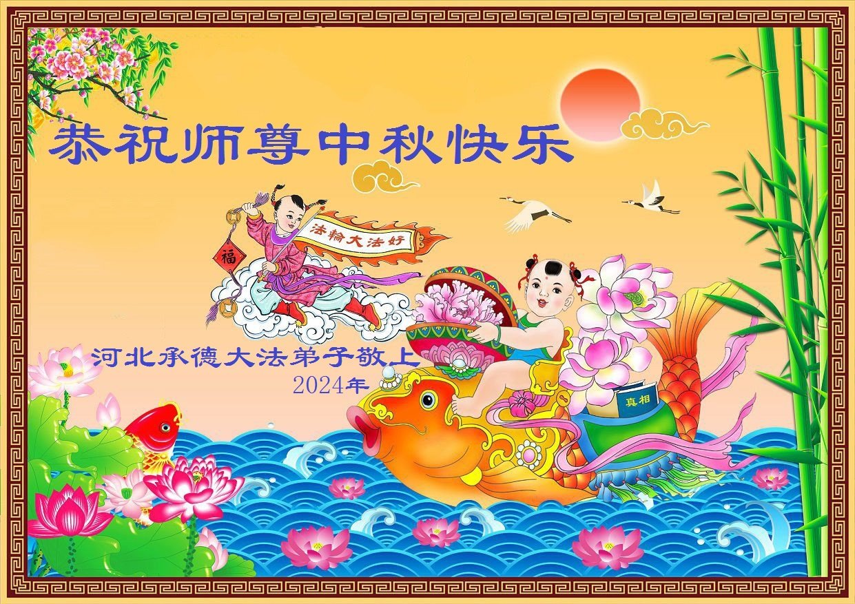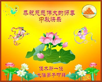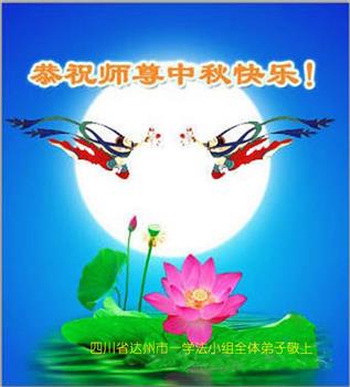 慈悲伟大的师尊好:我们在大陆都曾被邪恶残酷迫害,但我们不仅无悔,且深知能做师父的弟子是我们最大的荣耀与幸福。随师正法、救度众生是我们此生的意义与重任。弟子一定尽心、尽力去做,不负师尊的期望,不负众生的盼望。遥祝慈悲伟大的师尊中秋快乐!盼望师尊早日回大陆。