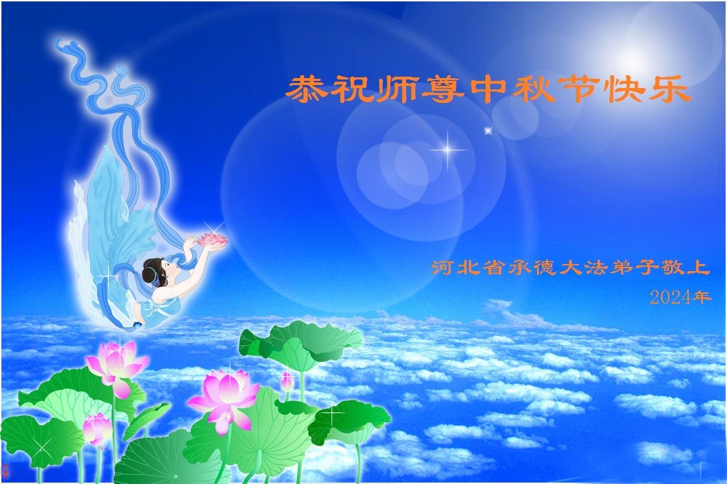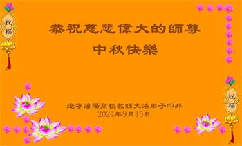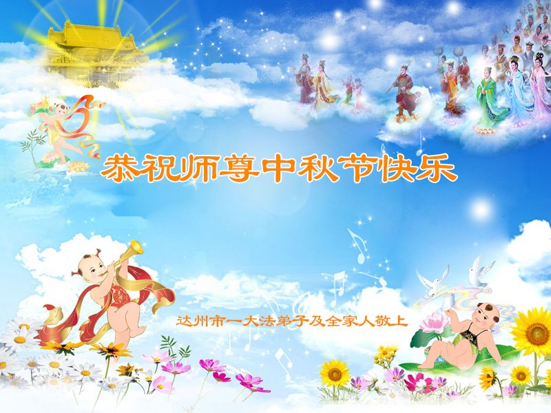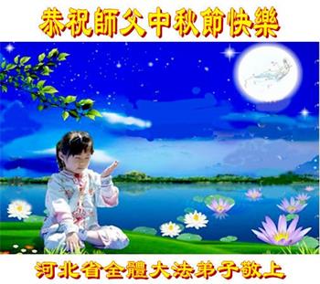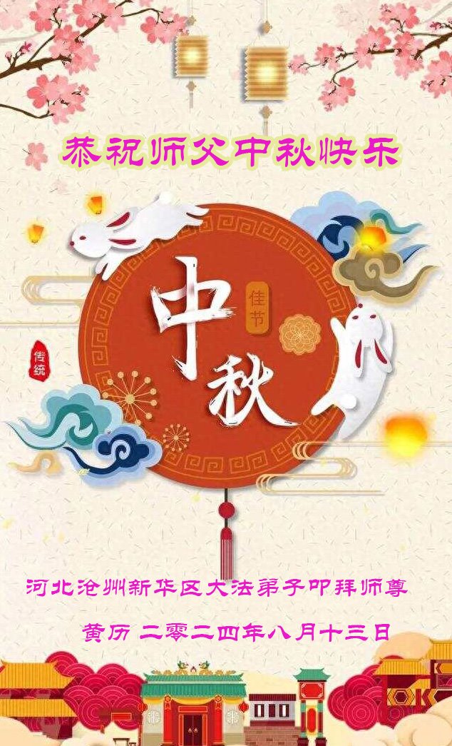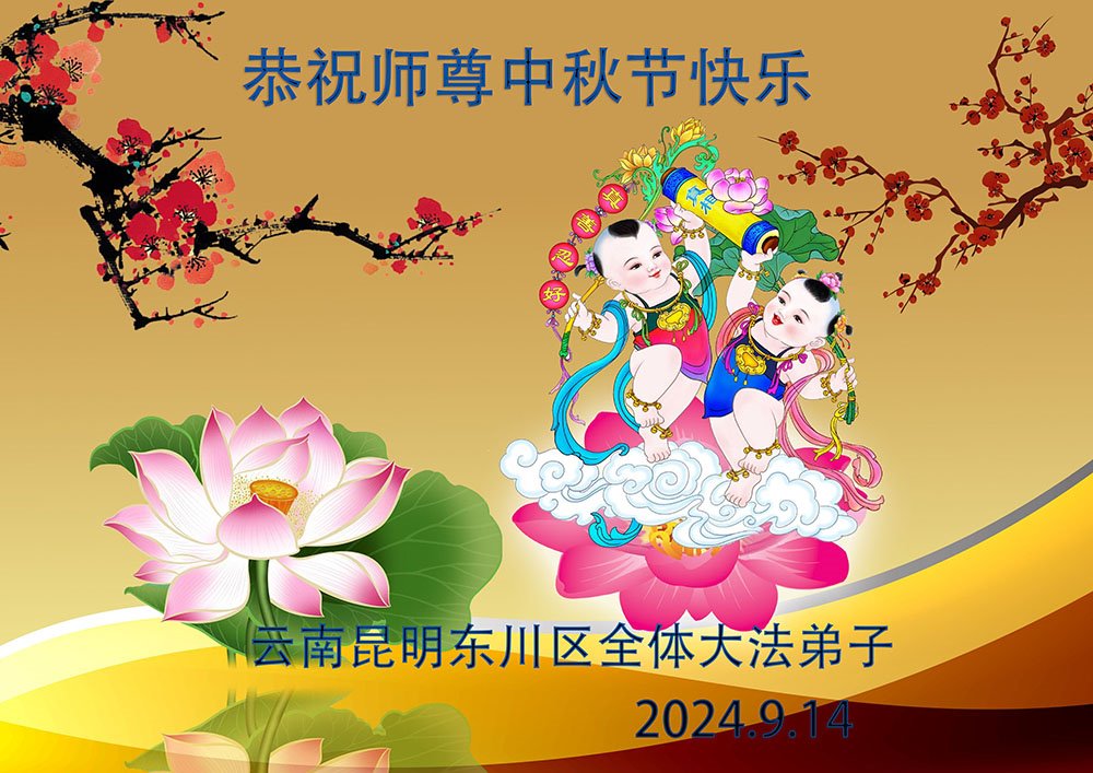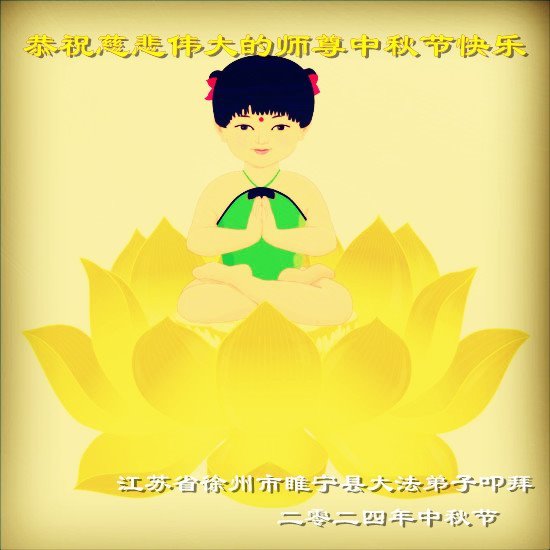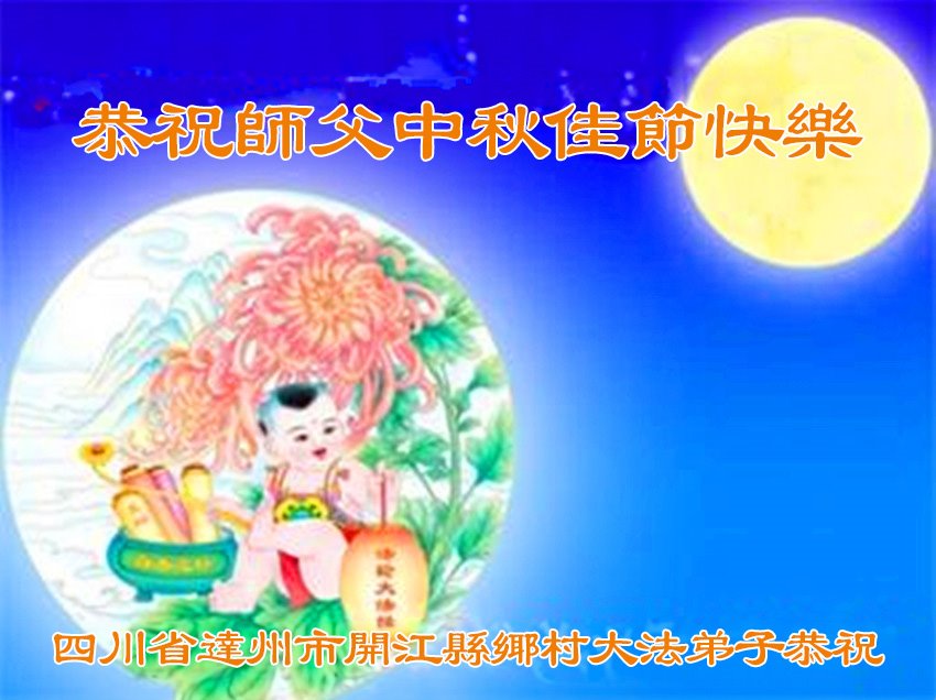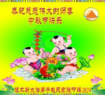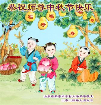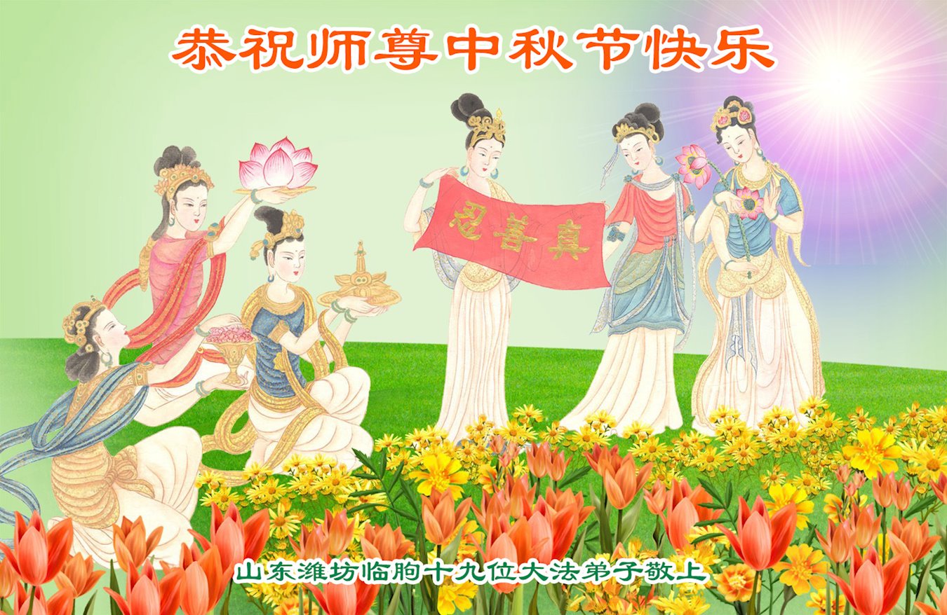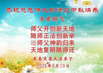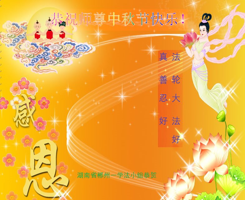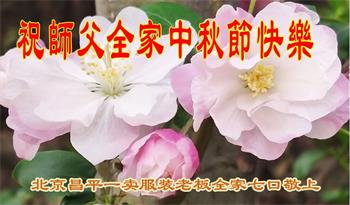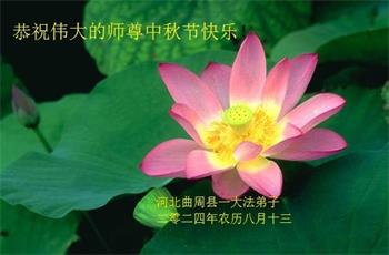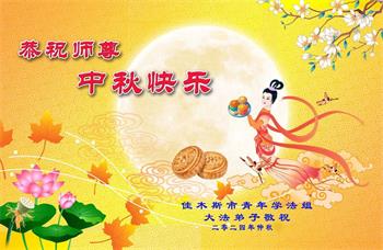 慈悲伟大的师尊好:我们在大陆都曾被邪恶残酷迫害,但我们不仅无悔,且深知能做师父的弟子是我们最大的荣耀与幸福。随师正法、救度众生是我们此生的意义与重任。弟子一定尽心、尽力去做,不负师尊的期望,不负众生的盼望。遥祝慈悲伟大的师尊中秋快乐!盼望师尊早日回大陆。