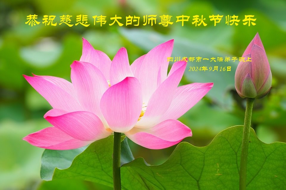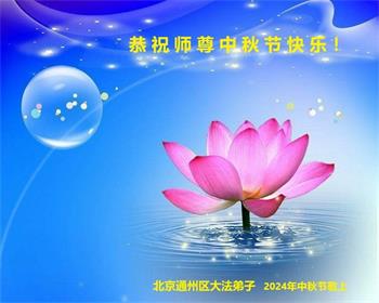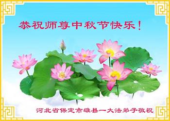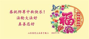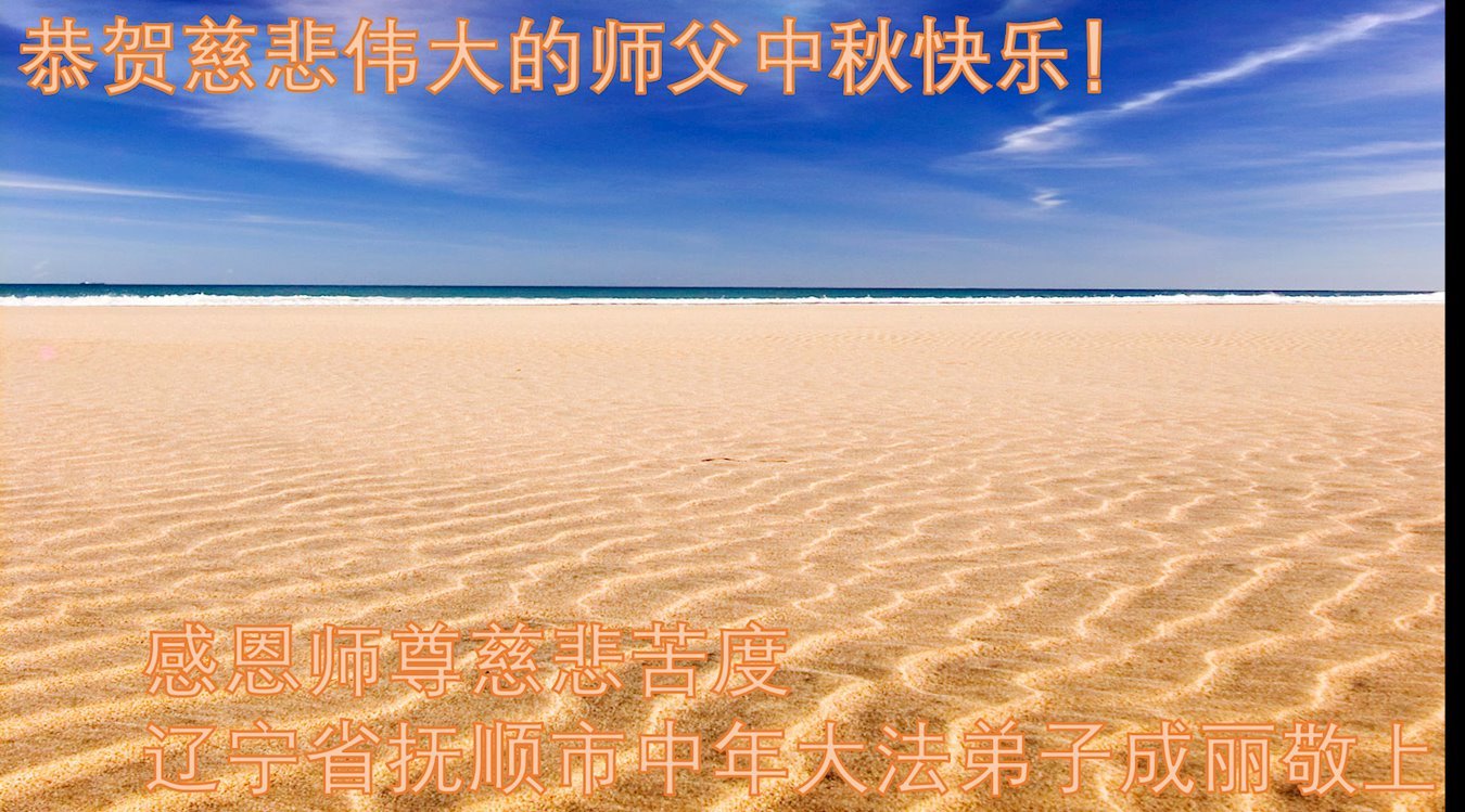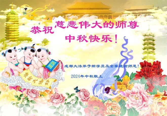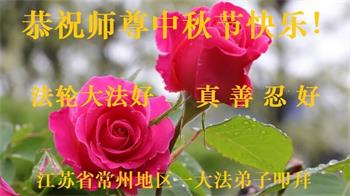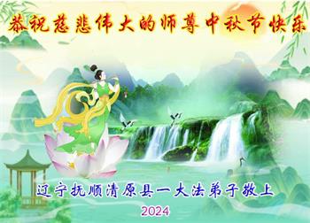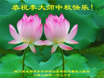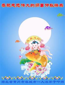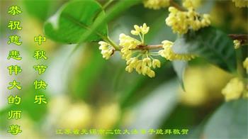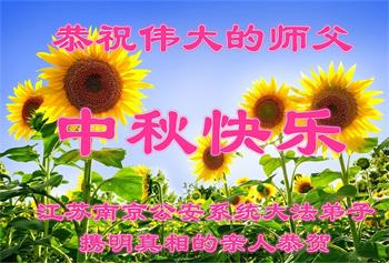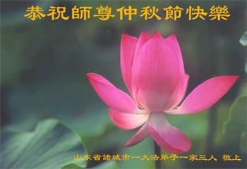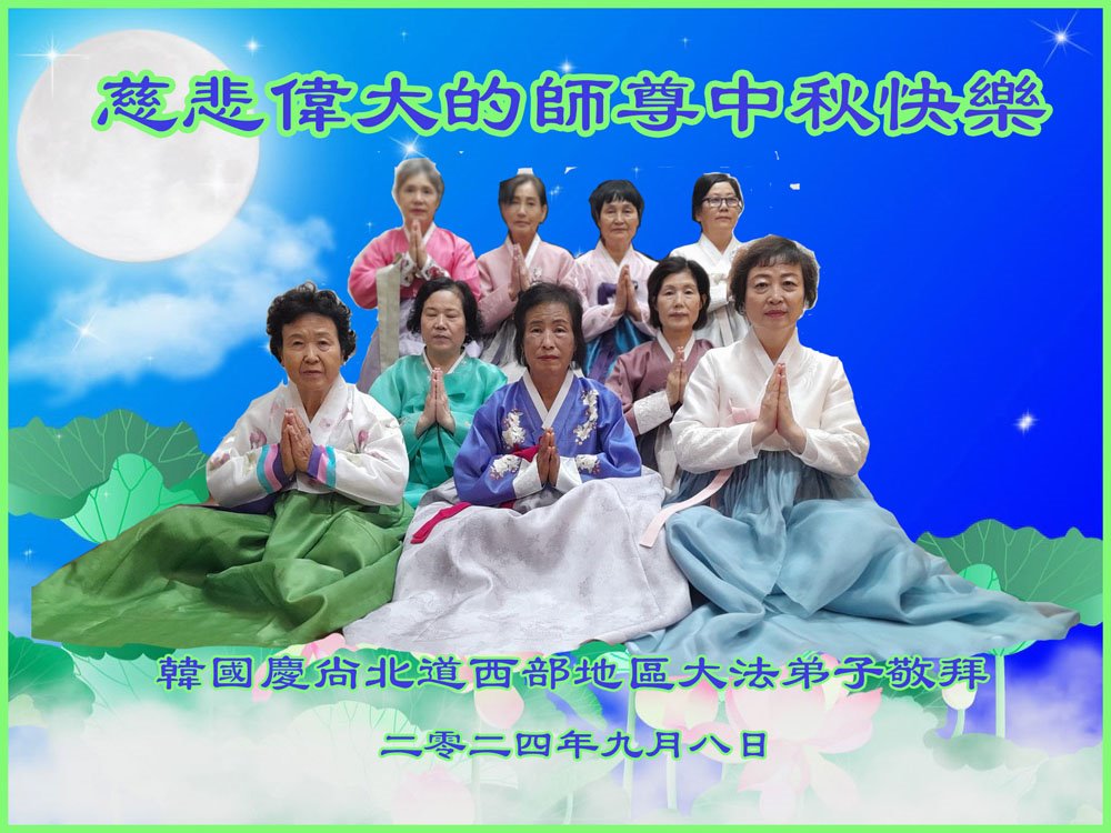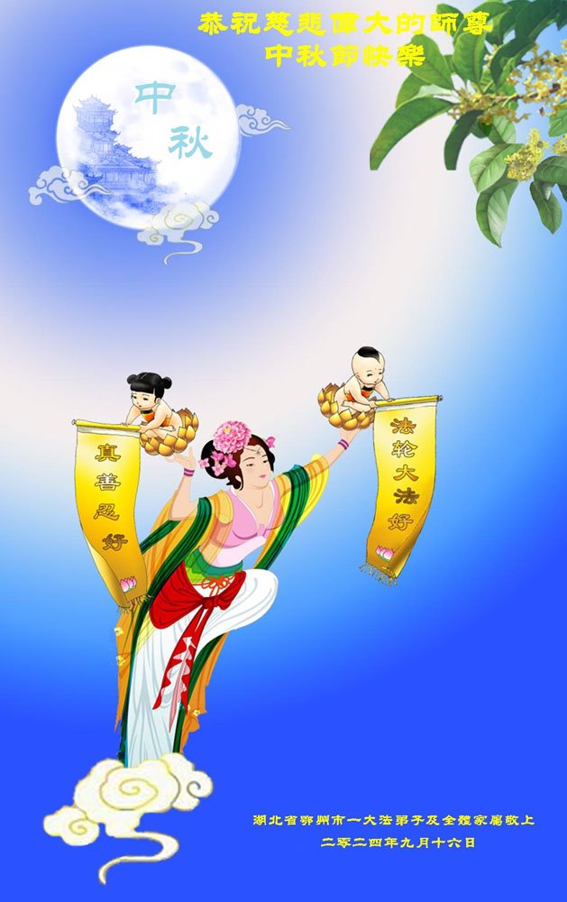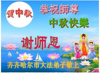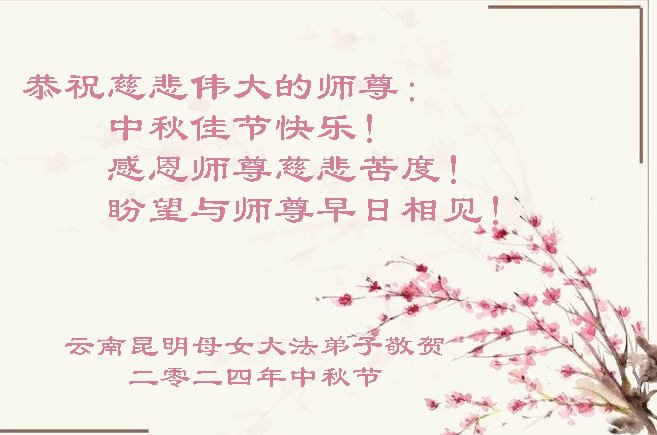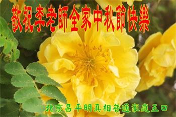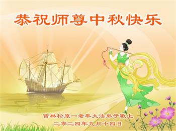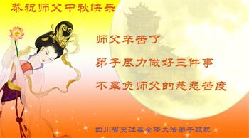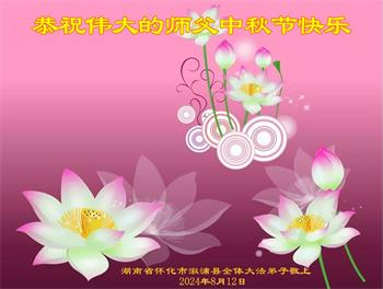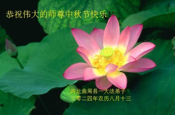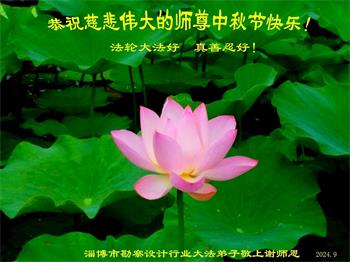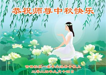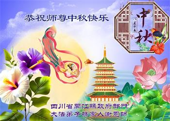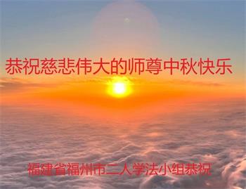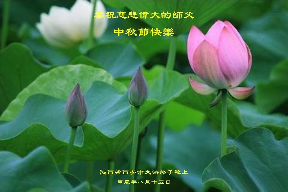 慈悲伟大的师尊好:我们在大陆都曾被邪恶残酷迫害,但我们不仅无悔,且深知能做师父的弟子是我们最大的荣耀与幸福。随师正法、救度众生是我们此生的意义与重任。弟子一定尽心、尽力去做,不负师尊的期望,不负众生的盼望。遥祝慈悲伟大的师尊中秋快乐!盼望师尊早日回大陆。